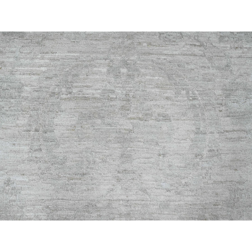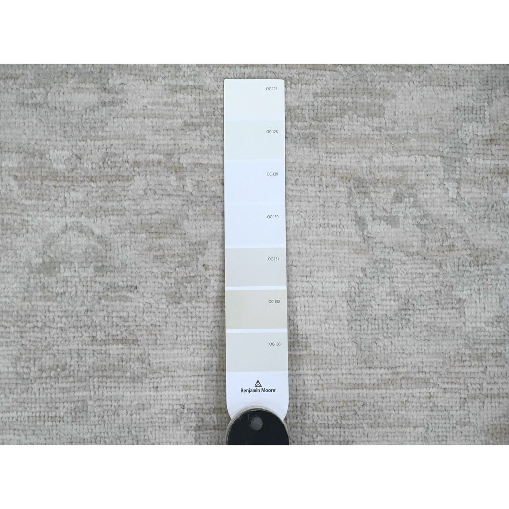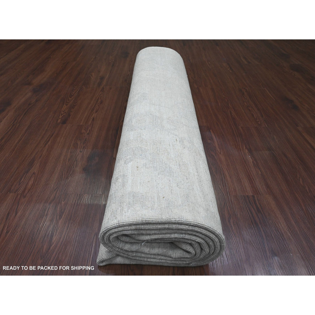 8'9"x11'5" Bone White, 100% Wool, Stone Washed Peshawar With Faded Out Leaf Design, Hand Knotted, Veggie Dyes, Oriental Rug FWR121116