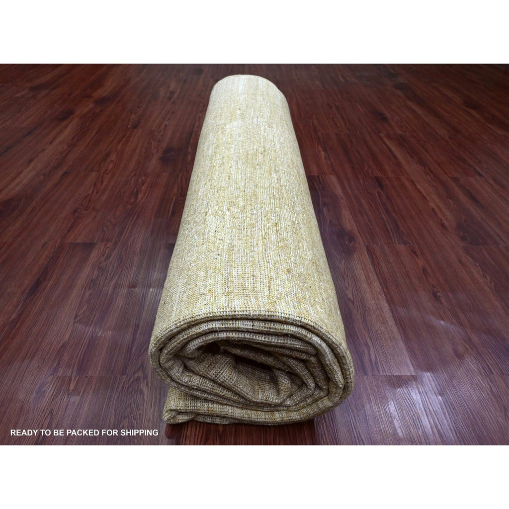 8'9"x11'7" Ecru Brown, Plain Solid Pattern, Hand Knotted, Hand Spun Ghazni Wool, Lush And Plush, Oriental Rug FWR120834