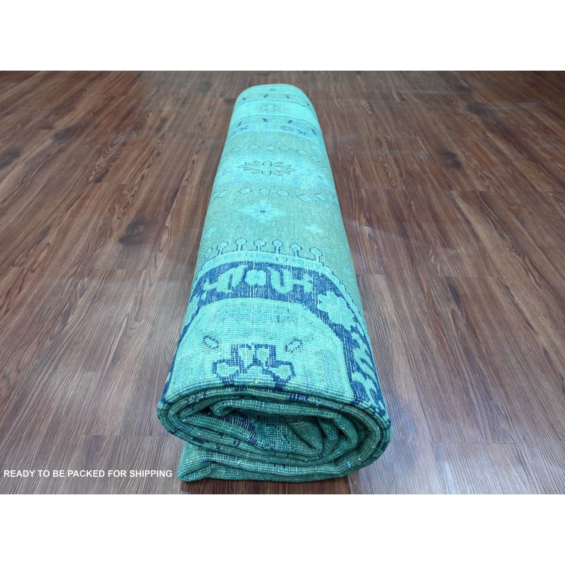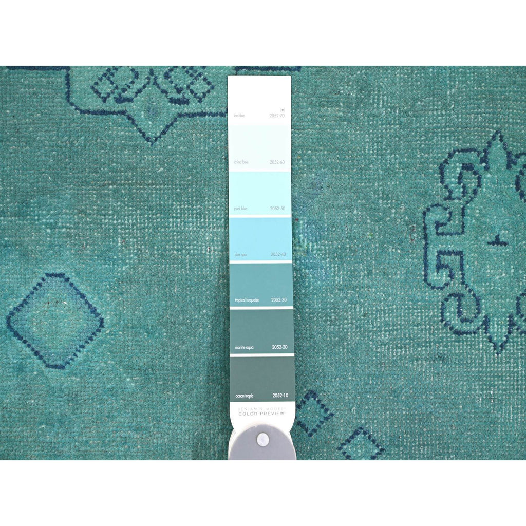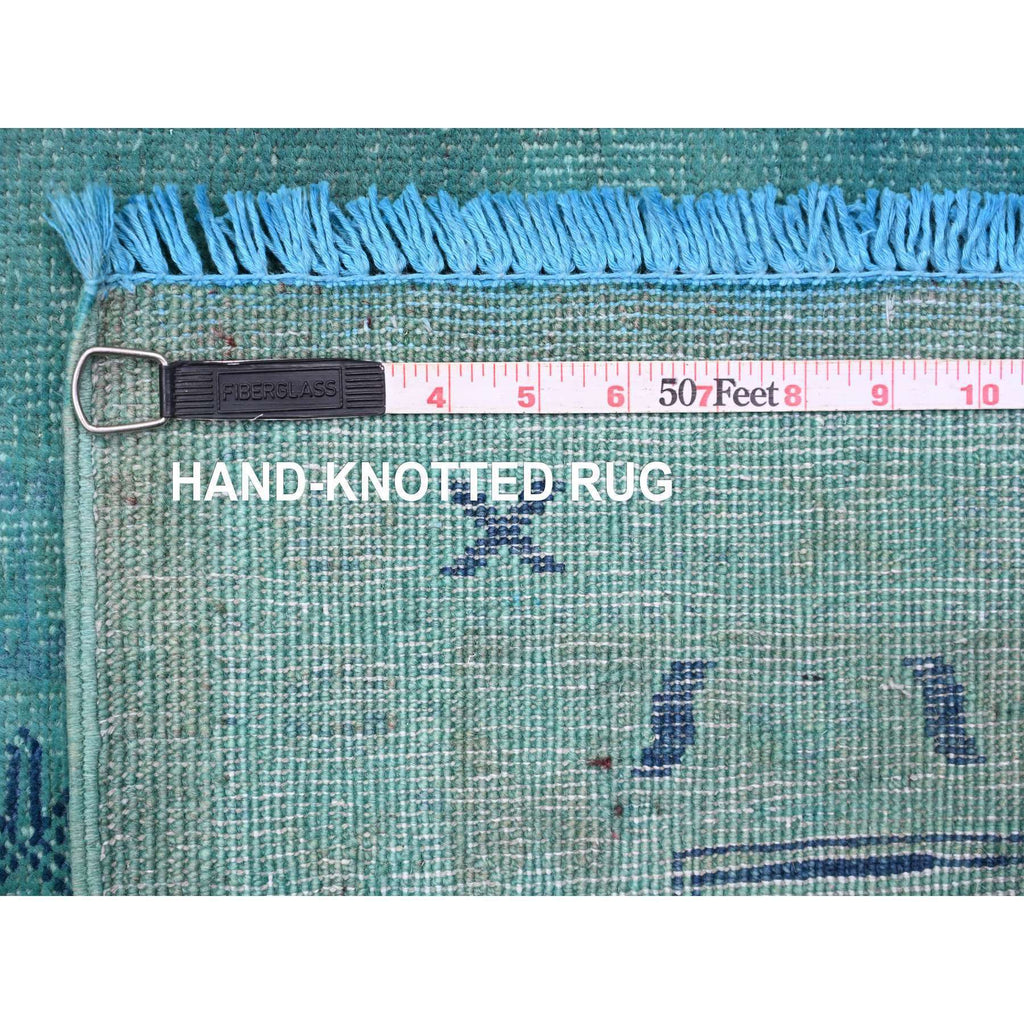 8'9"x11'7" Teal, Overdyed Kazak With All Over Design, Hand Knotted, 100% Wool, Oriental Rug FWR120096