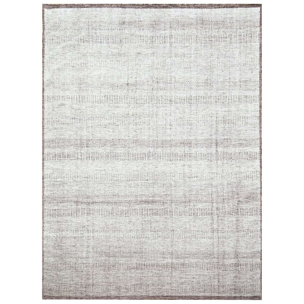 8'9"x12'1" Sangria Red With Vista White, Oxidized And Distressed Grass Design With Exposed Warps, Hand Knotted, 100% Wool, Oriental Rug FWR457776