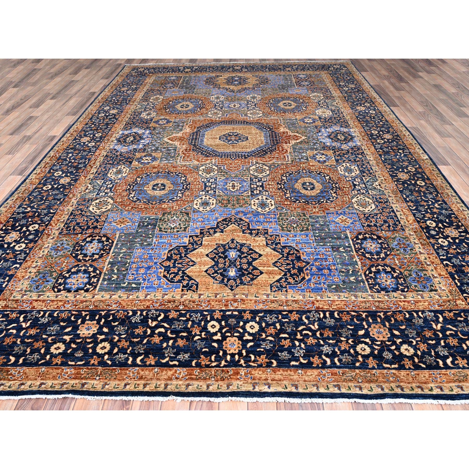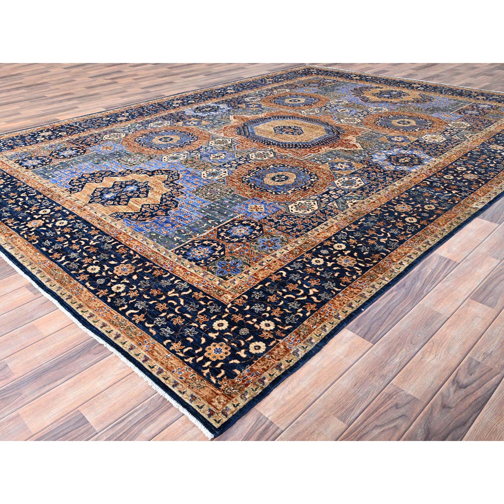 8'9"x12'10" Lapis Blue, 14th Century Mamluk Dynasty Pattern, Vegetable Dyes, Extra Soft Wool, 200 Kpsi, Hand Knotted, Oriental Rug FWR515214