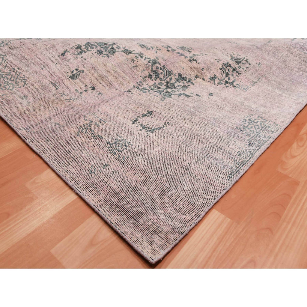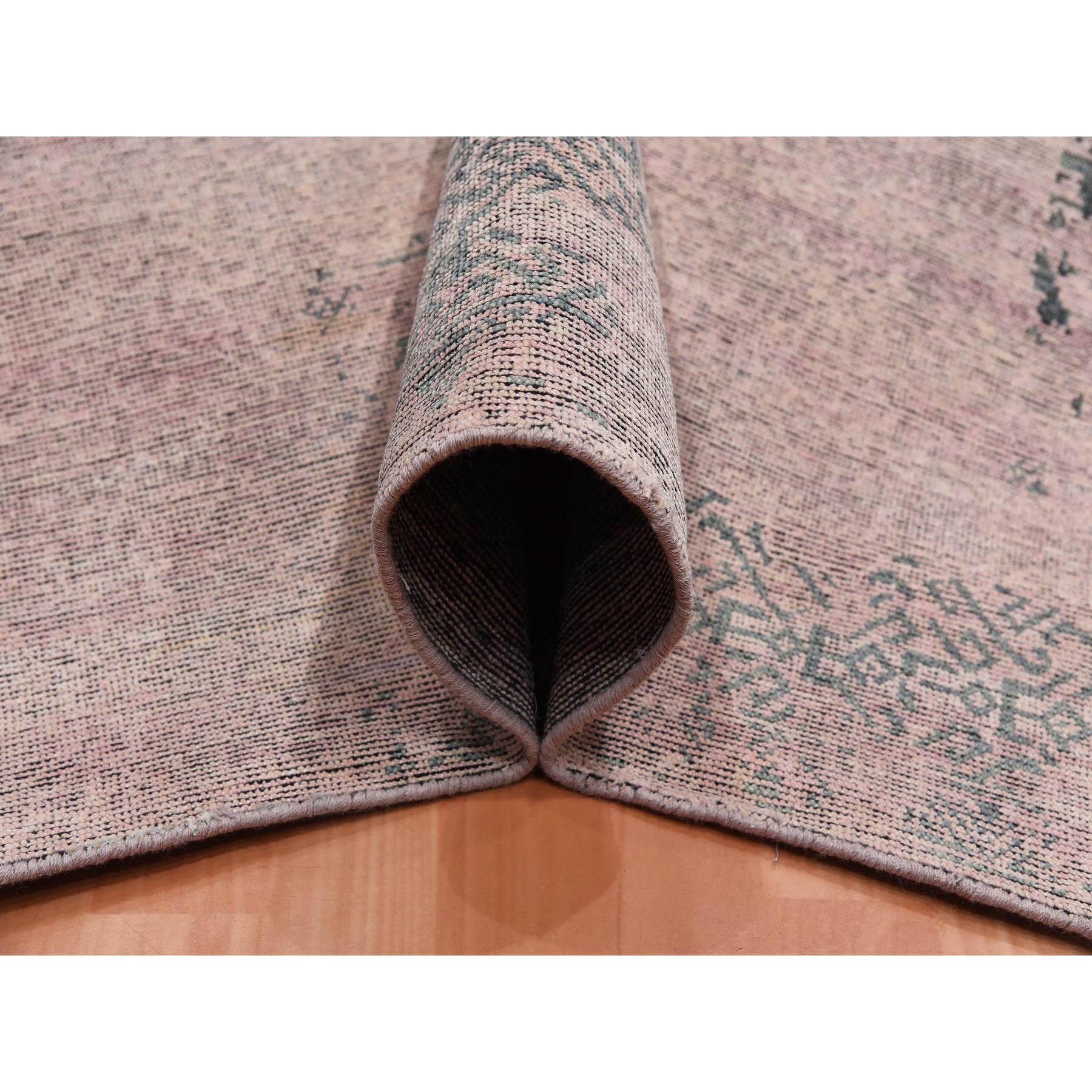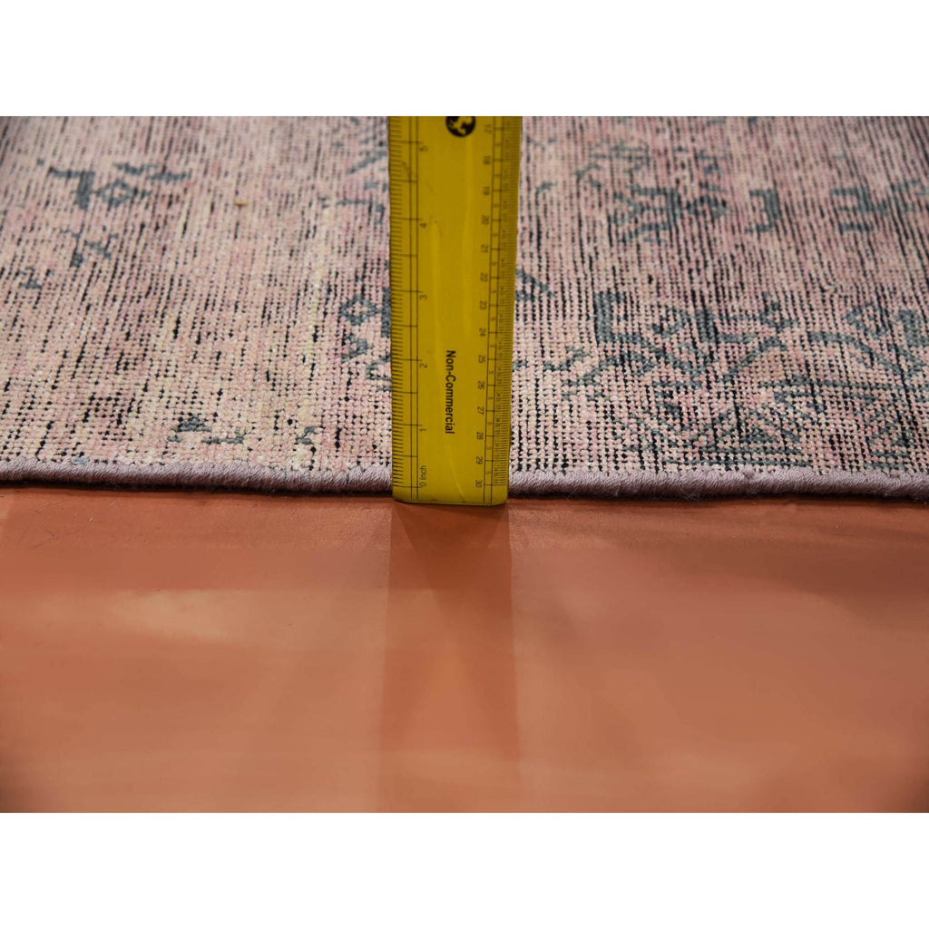 8'9"x12'2" Pink And Gray, Hand Knotted Erased Persian Design, Zero Pile Pure Silk, Oriental Rug FWR451080