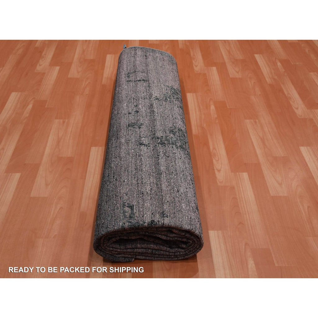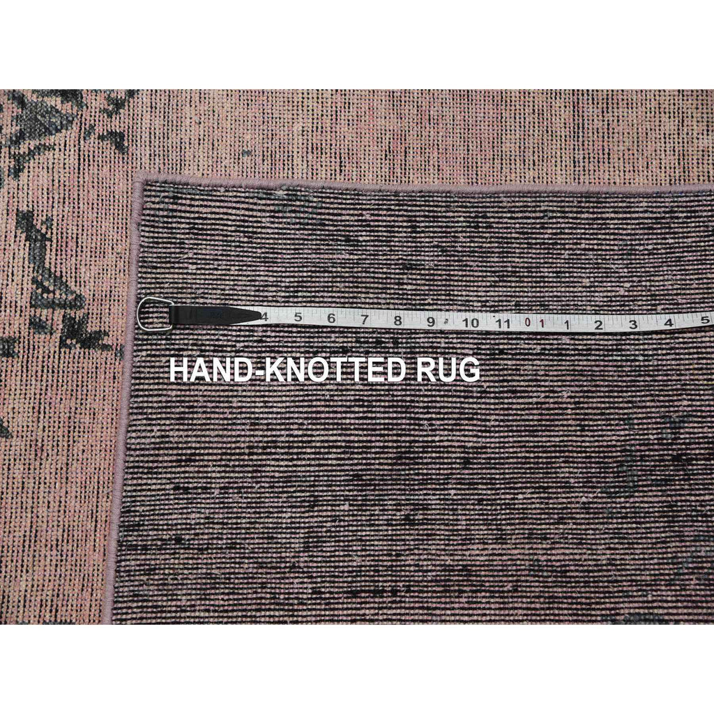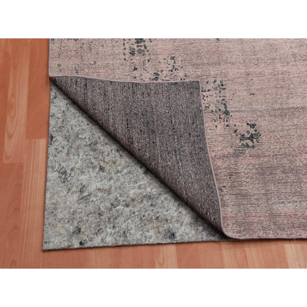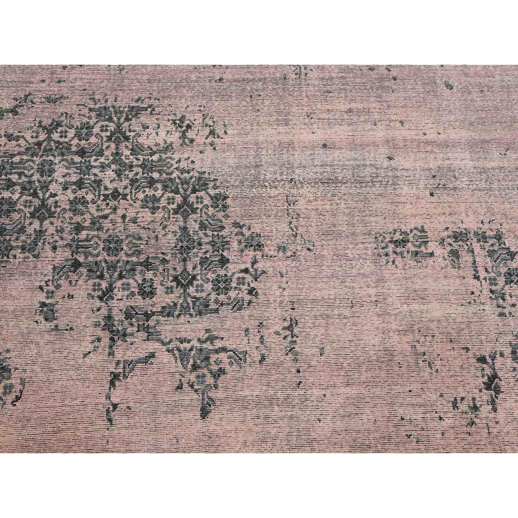 8'9"x12'2" Pink And Gray, Hand Knotted Erased Persian Design, Zero Pile Pure Silk, Oriental Rug FWR451080