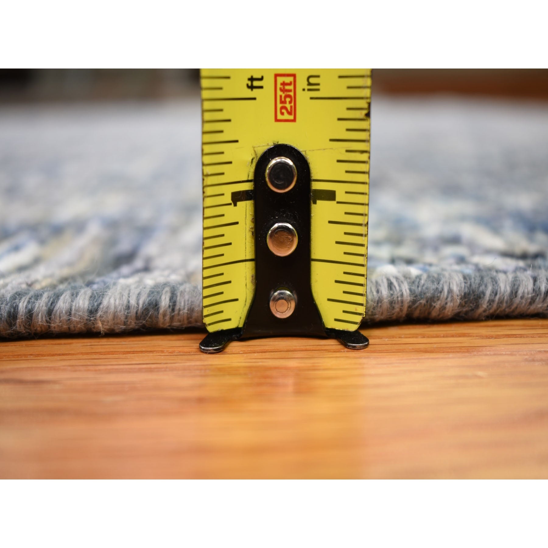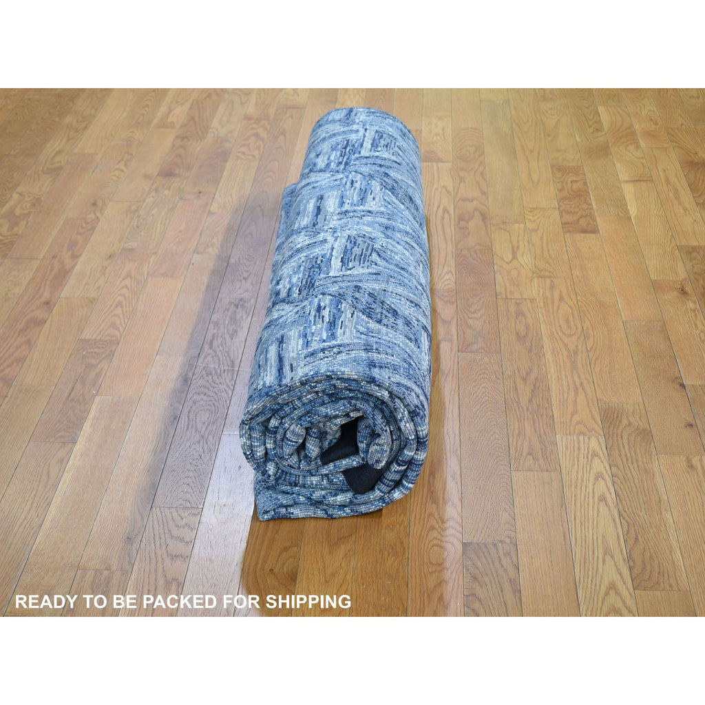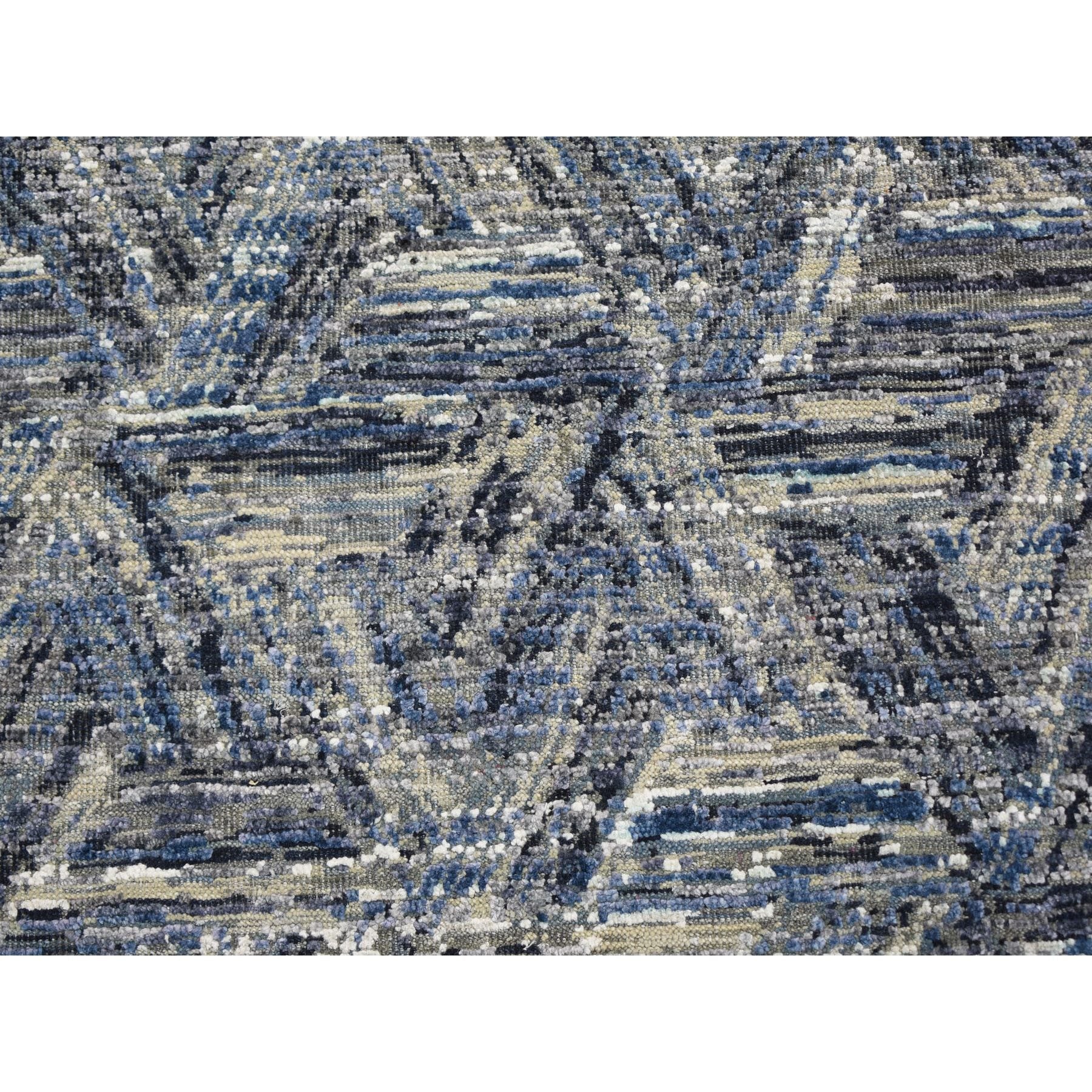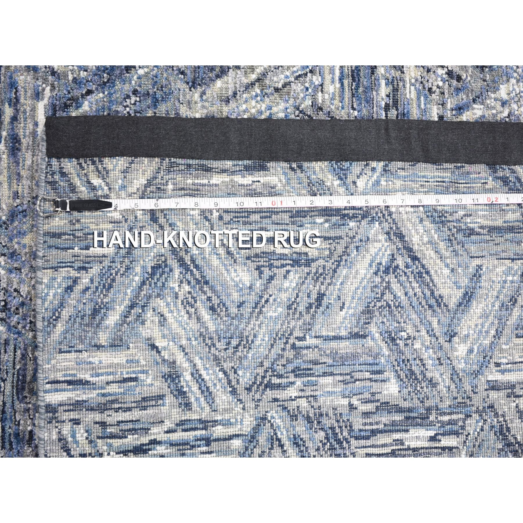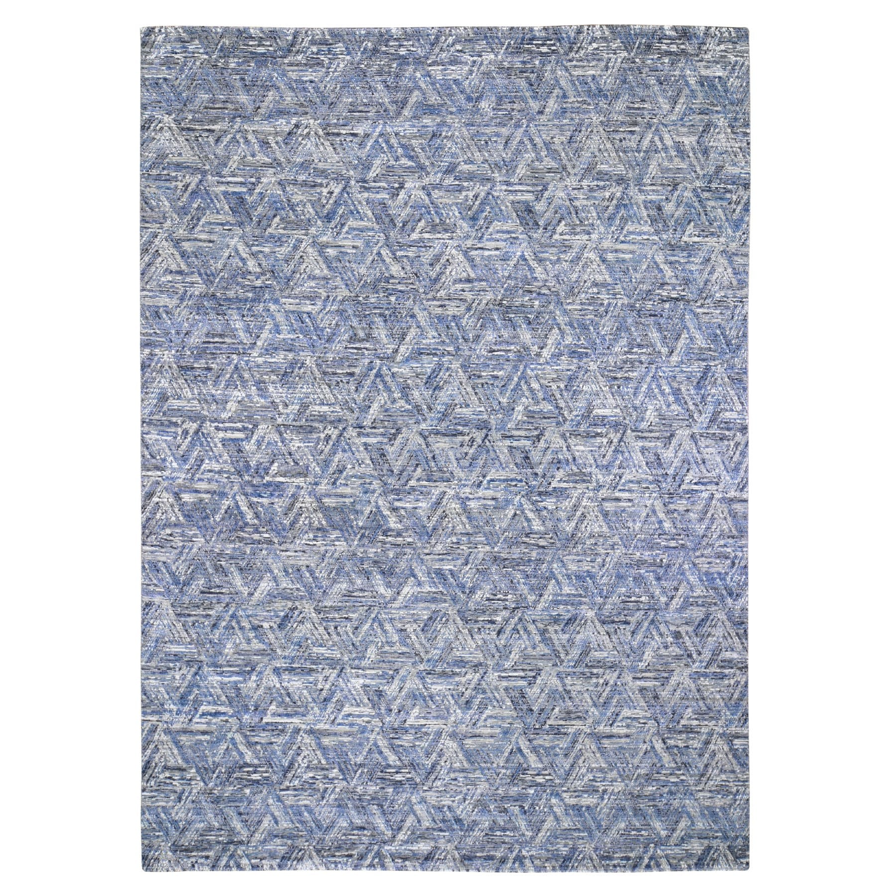 8'9"x12'3" The Interwined Triangles, Blue Silk With Textured Wool Hand Knotted Oriental Rug FWR354840