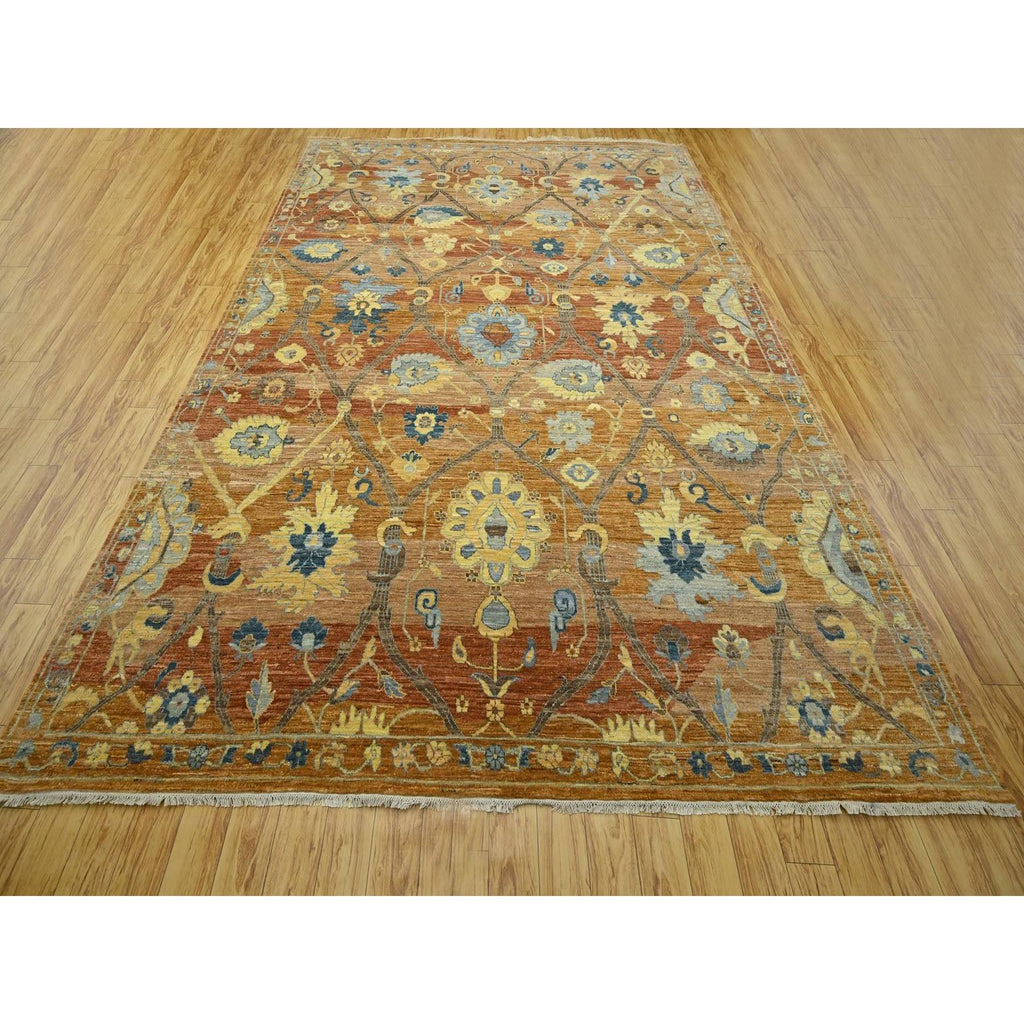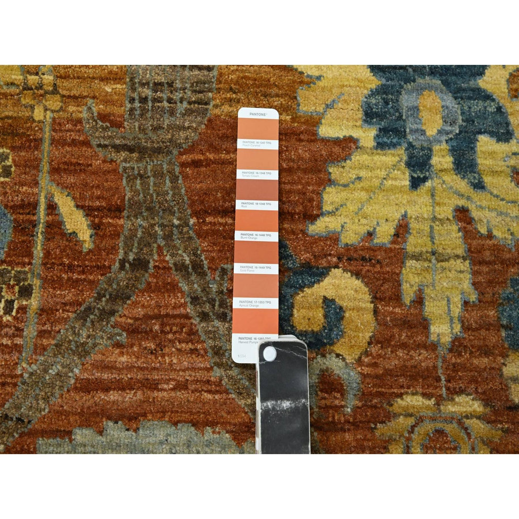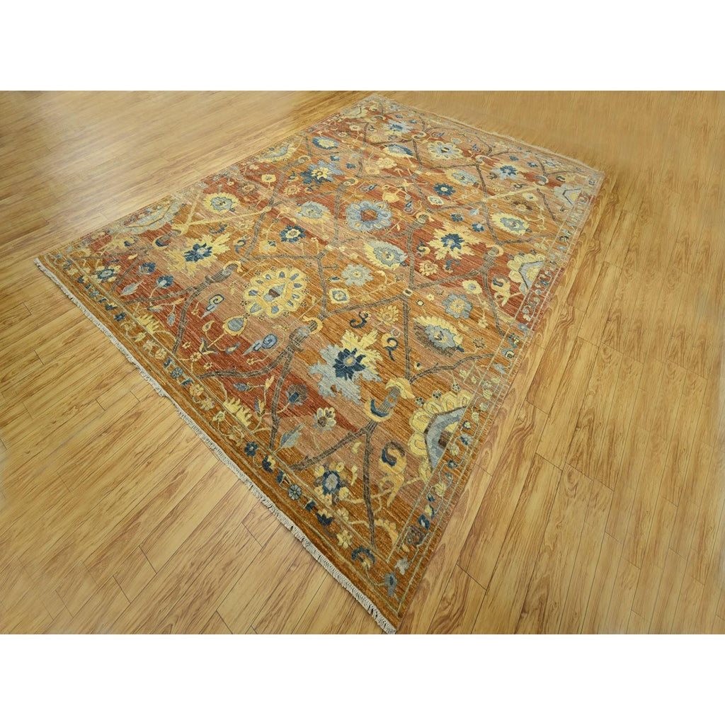 8'9"x12' Rust Red, Persian Inspired Design With Distinct Abrash, 100% Wool, Vegetable Dyes, Hand Knotted, Oriental Rug FWR460110