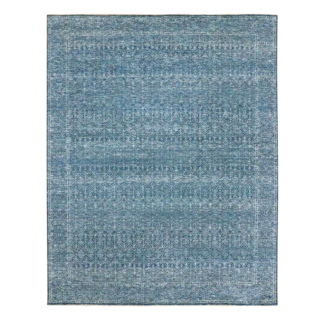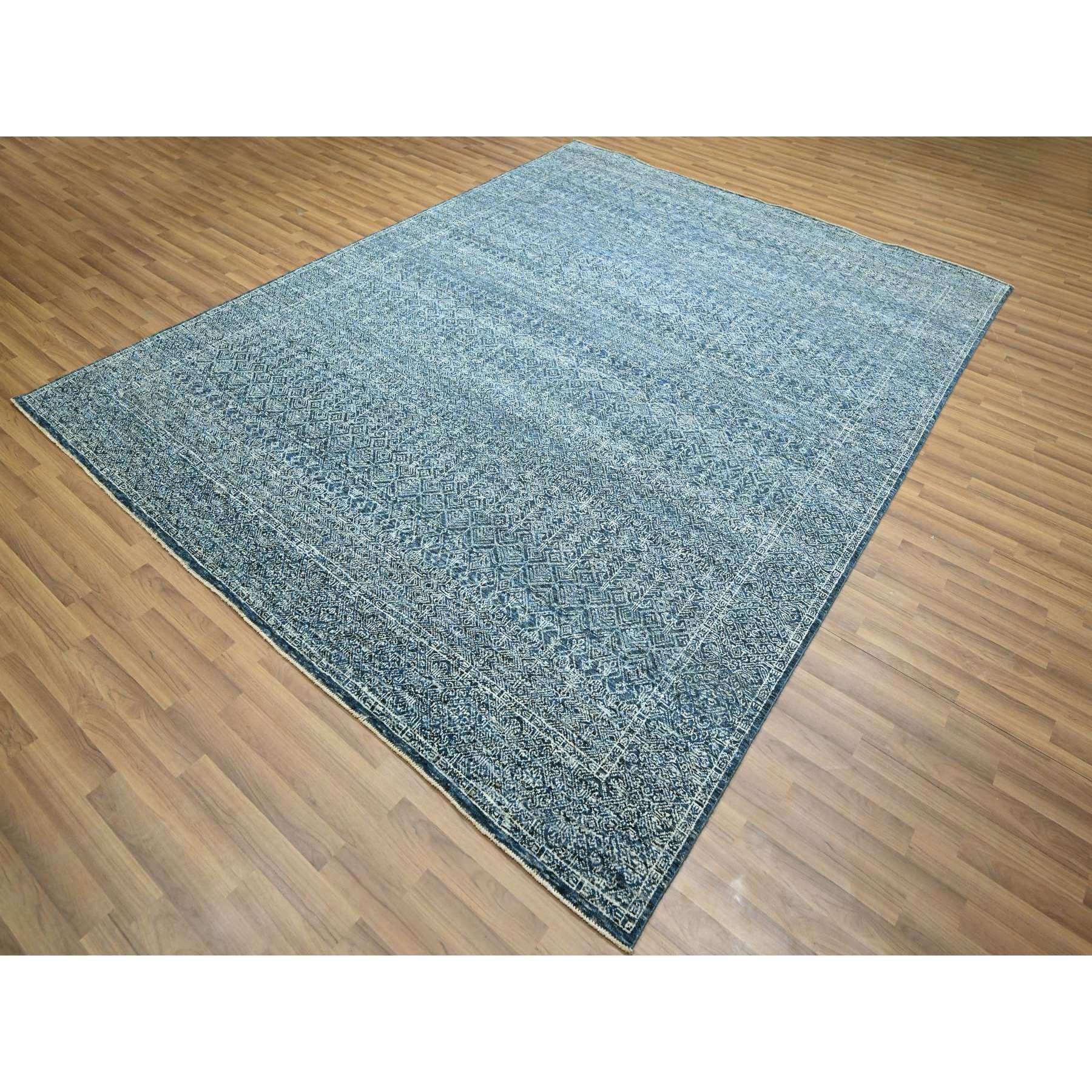 8'x10'1" Imperial Blue, Intricate Garden Pattern, Agra, Tone On Tone, Dense Weave, Hand Knotted, Pure Wool, Oriental Rug FWR458550