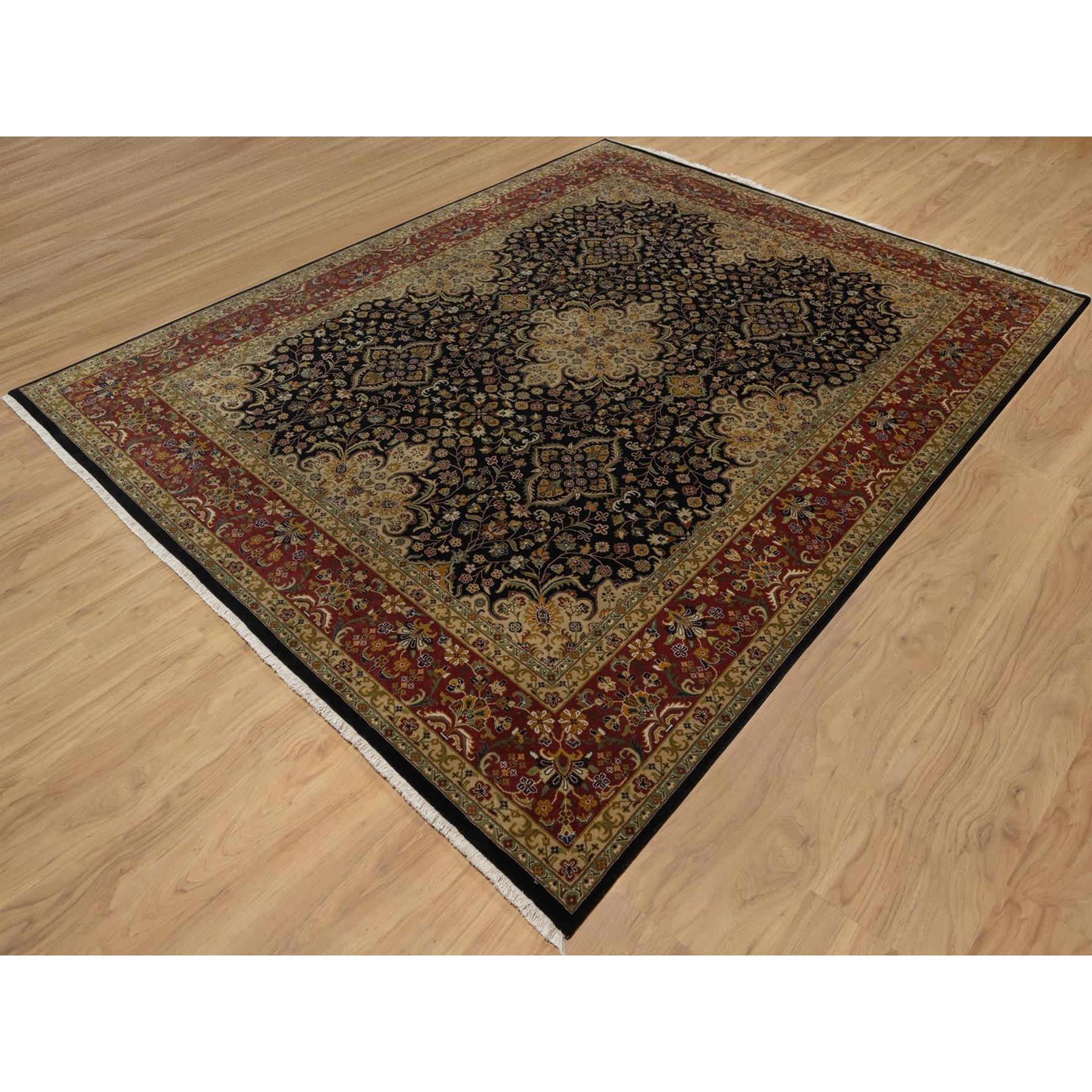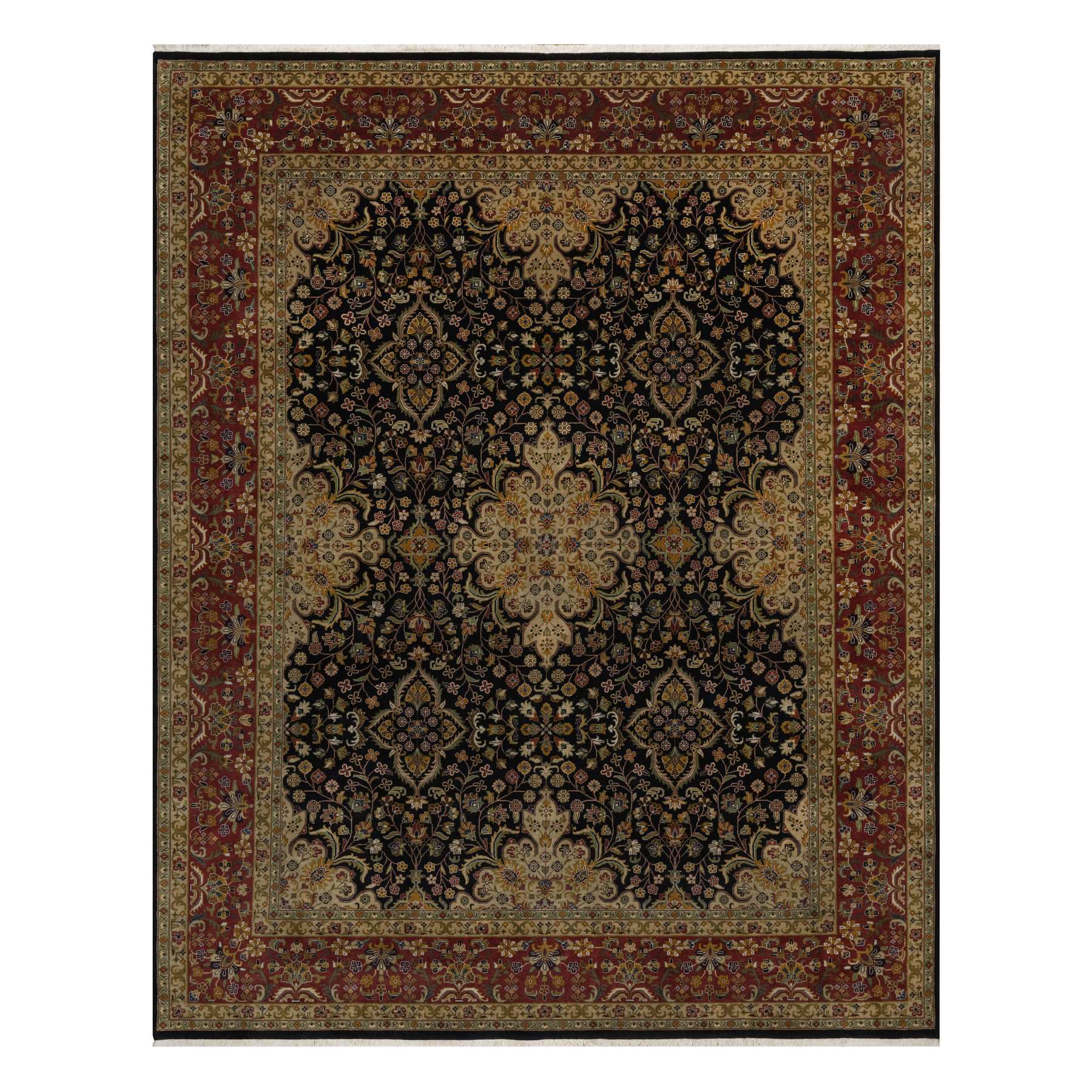 8'x10'1" Phantom Black, Intricate Kashan Revival, Hand Knotted, Hand Spun New Zealand Wool, 300 Kpsi, Oriental Rug FWR551004