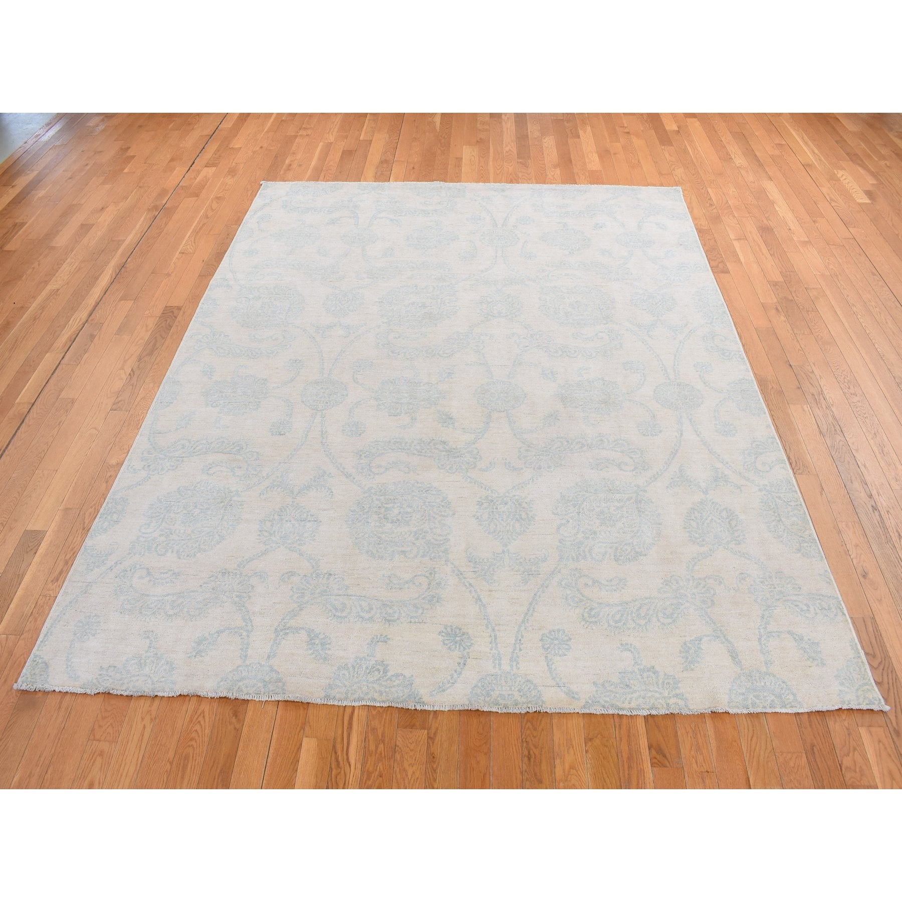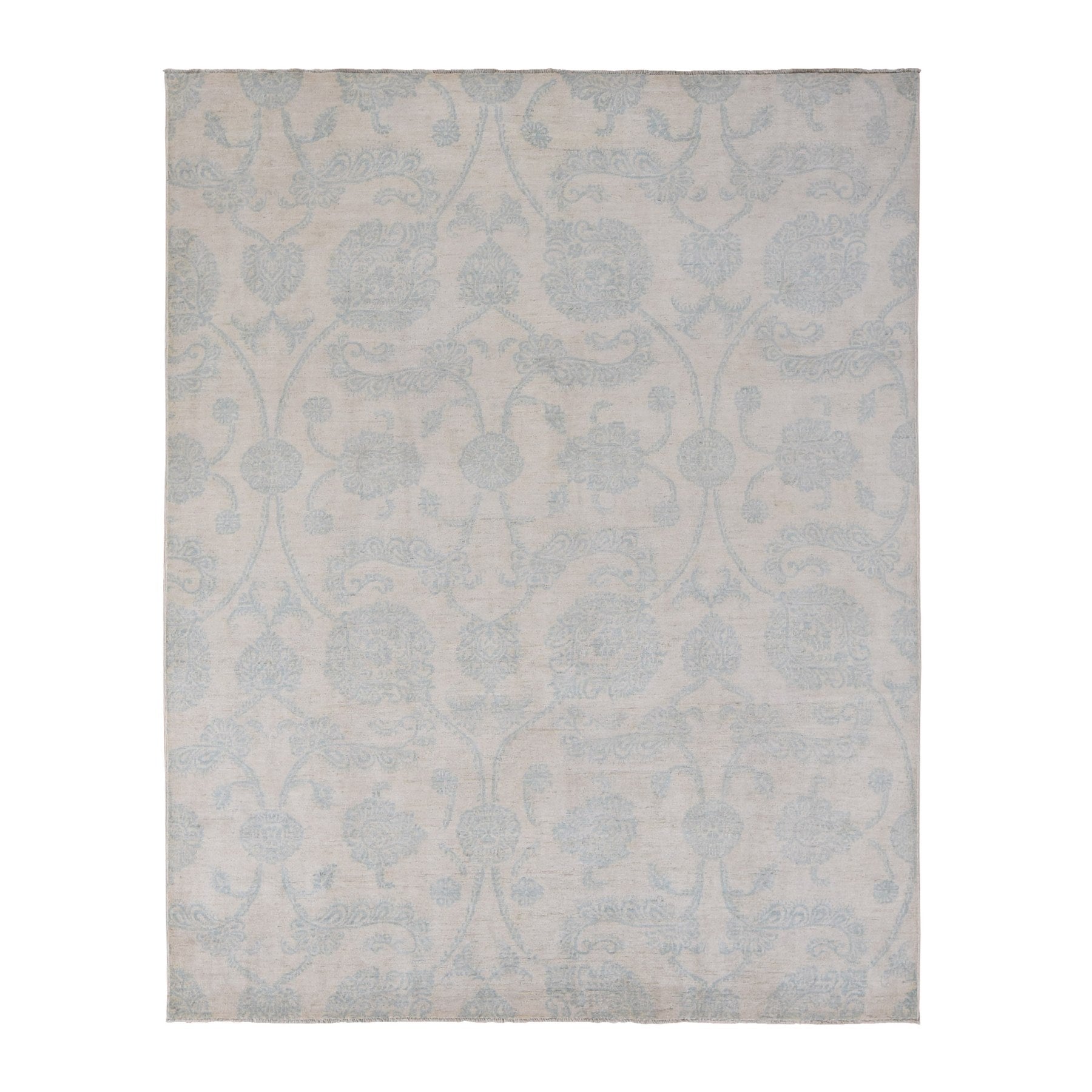8'x10'1" Rose White, Tone On Tone, Soft Colors, Peshawar With Oushak Damask Borderless Scroll Design, Pure Wool, Hand Knotted, Oriental Rug FWR522054