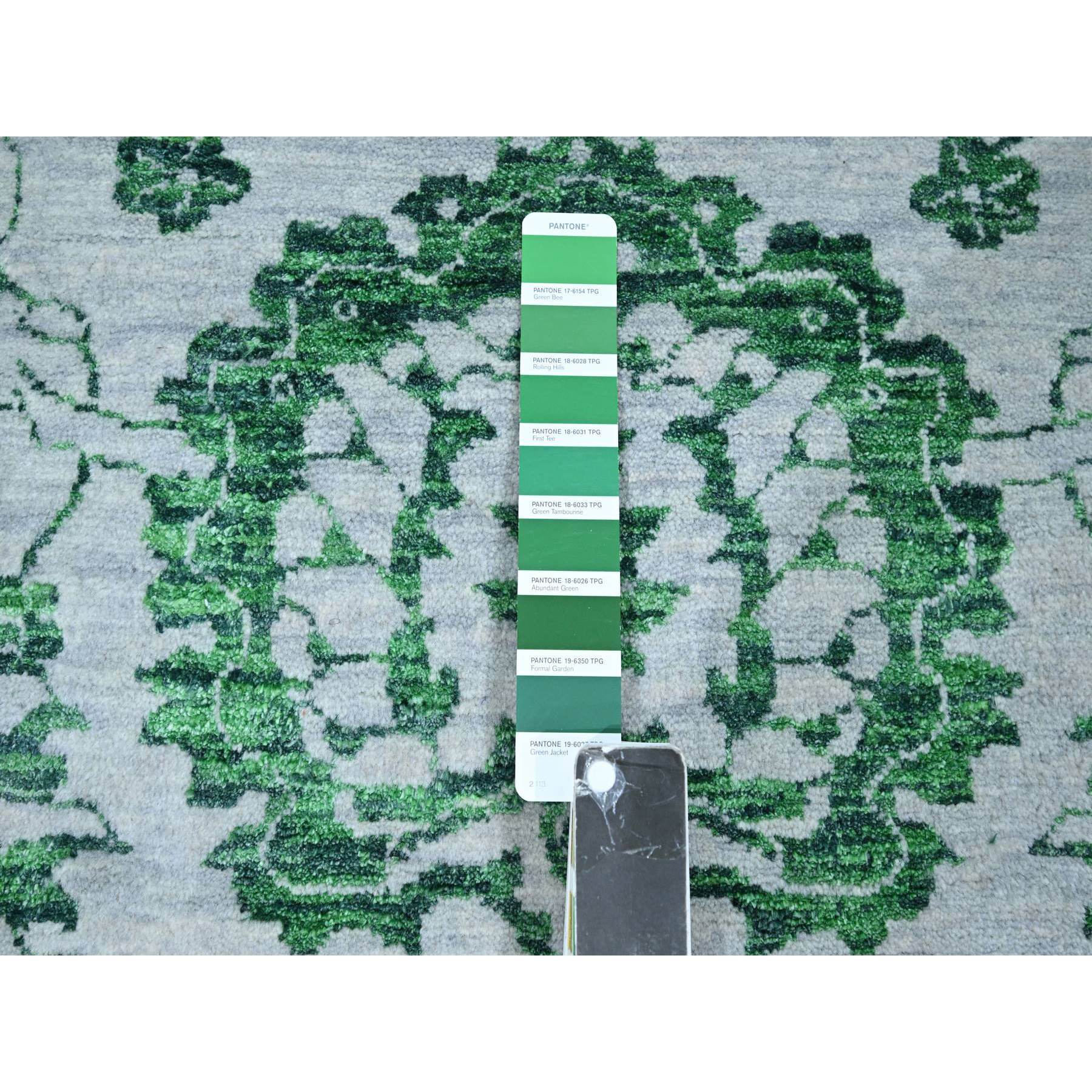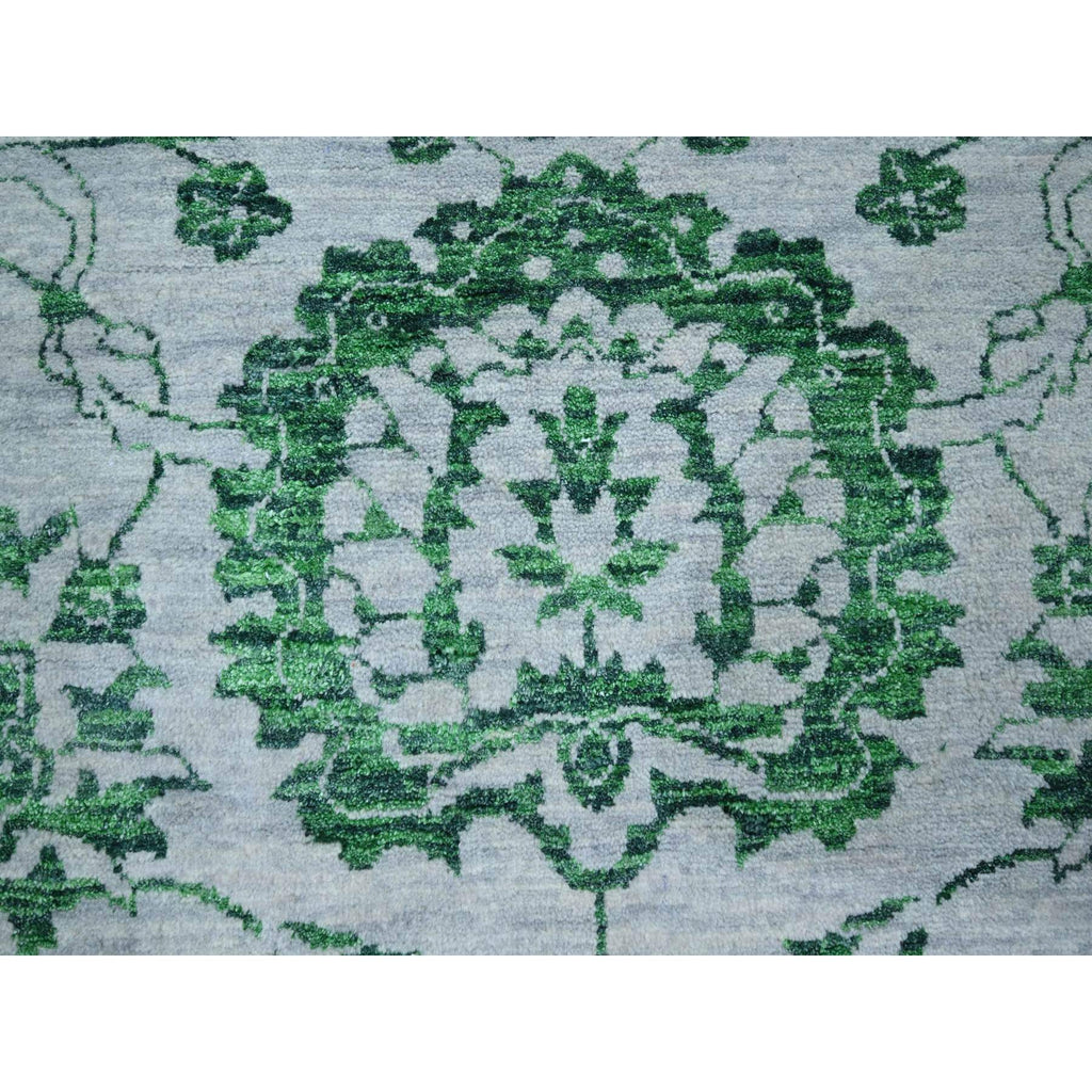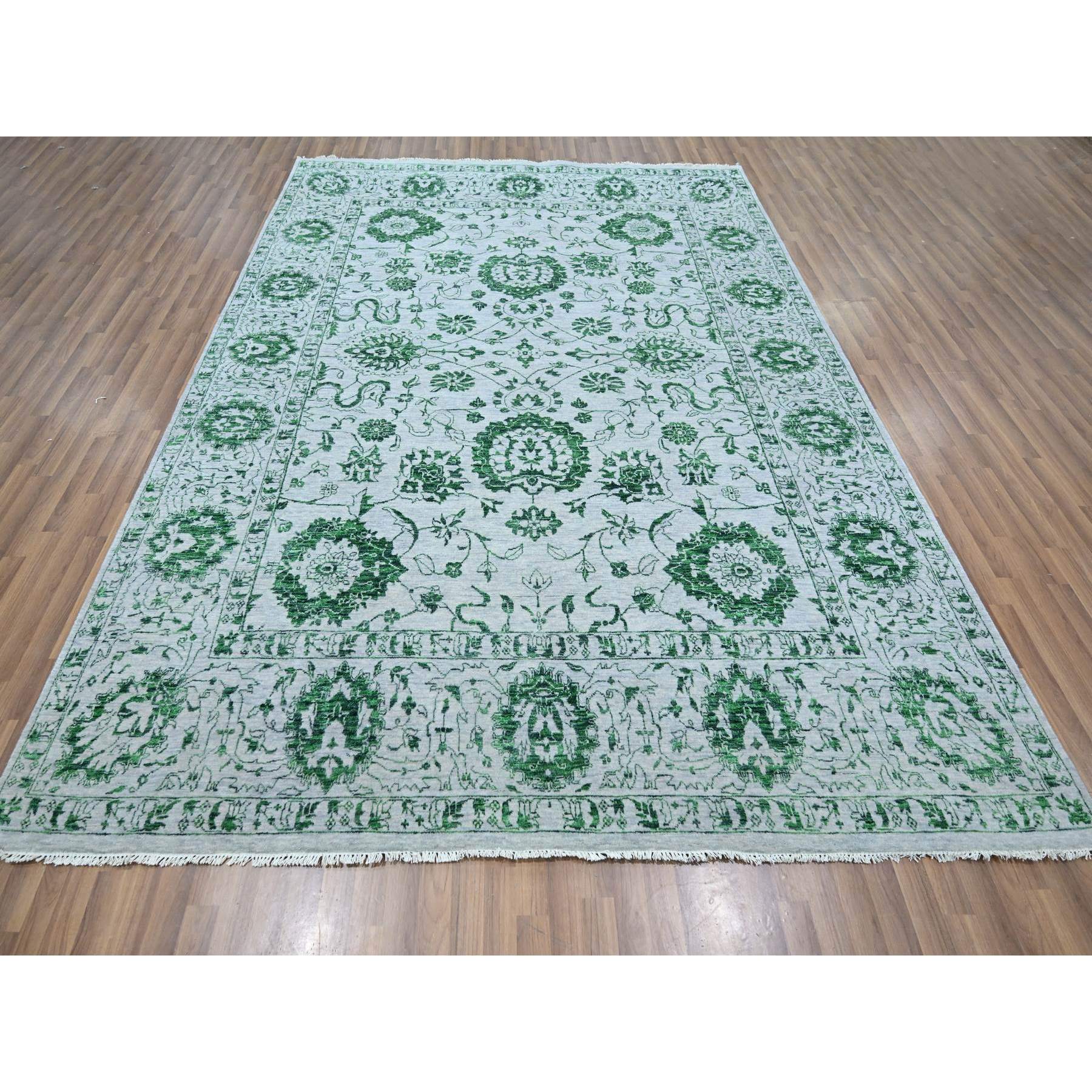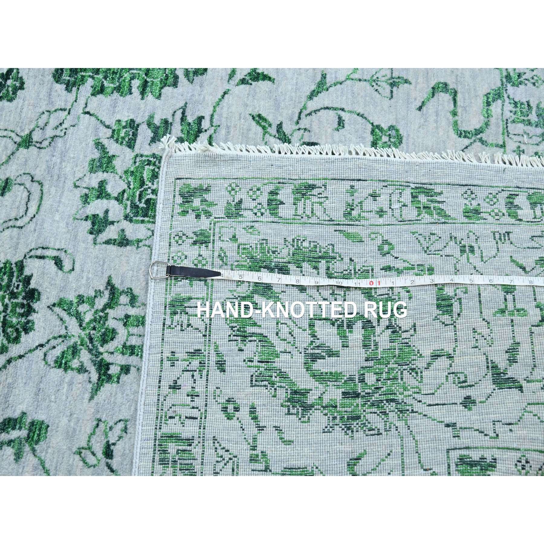 8'x10'1" Snow White With Forest Green, Persian Tabriz Influence Design, 100% Wool, Tone On Tone, Hand Knotted, Oriental Rug FWR457860