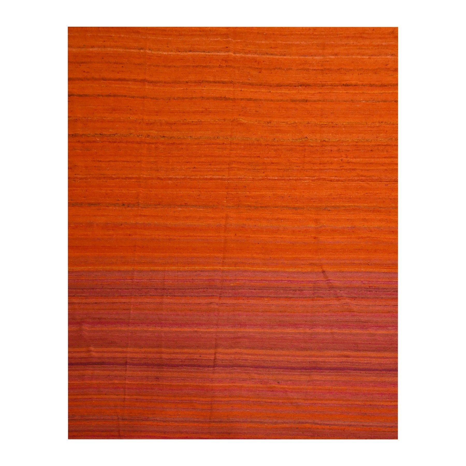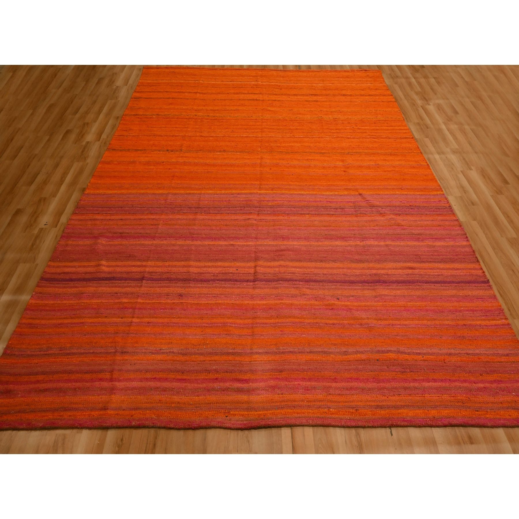 8'x10'1" Sunset Colors, Plain Solid Design, Kilim, Wool And Sari Silk, Hand Knotted, Oriental Rug FWR457260