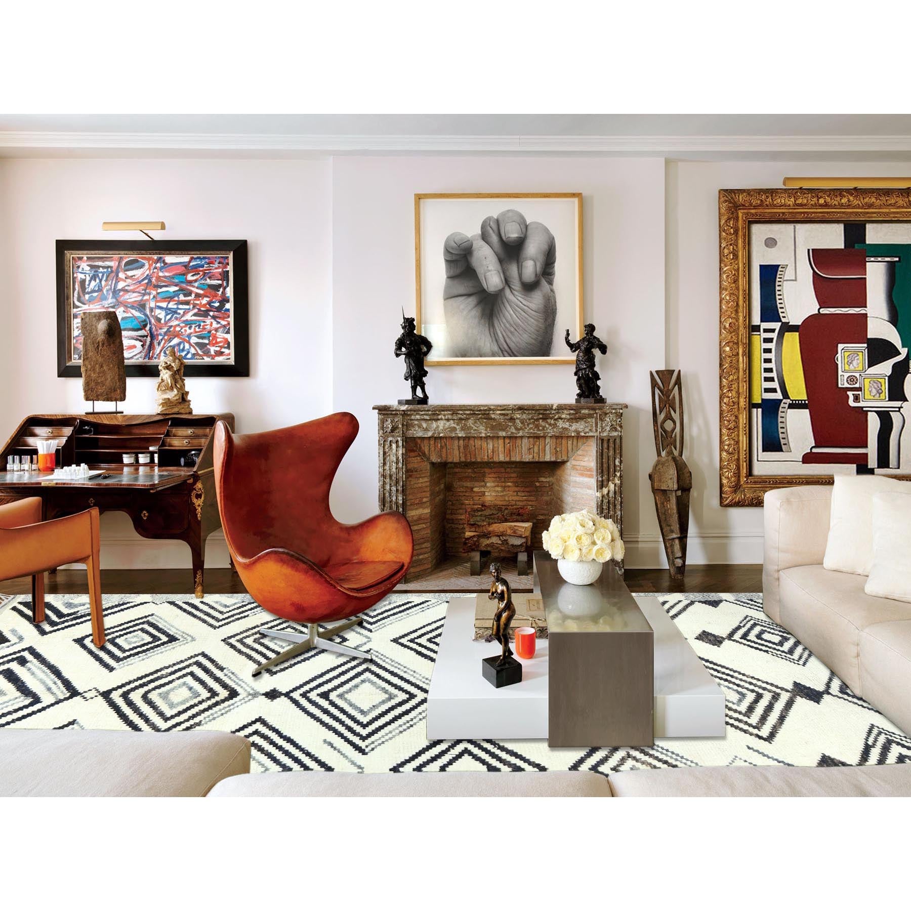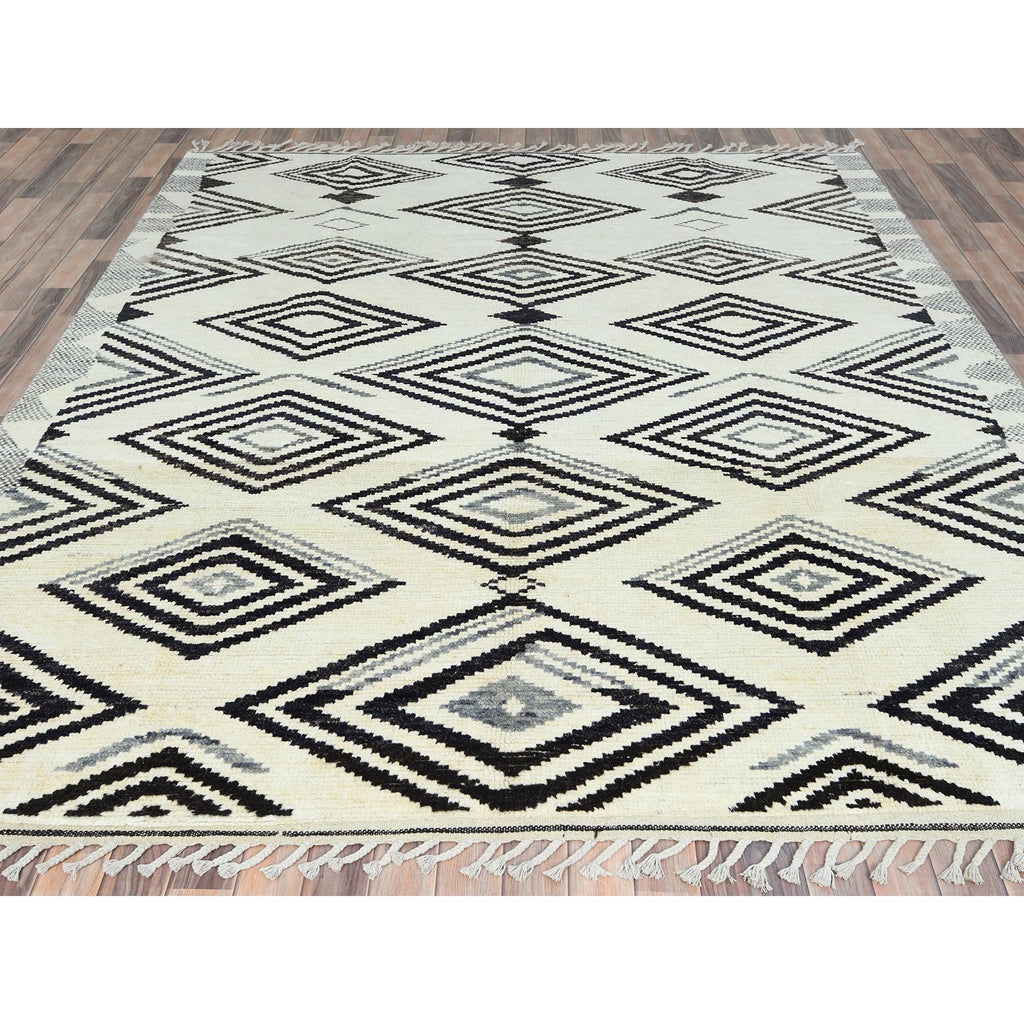 8'x10'10" Pearl Ivory, Ben Ourain Moroccan Berber Influence Design, Natural Dyes, Soft Wool, Hand Knotted Oriental Rug FWR497820