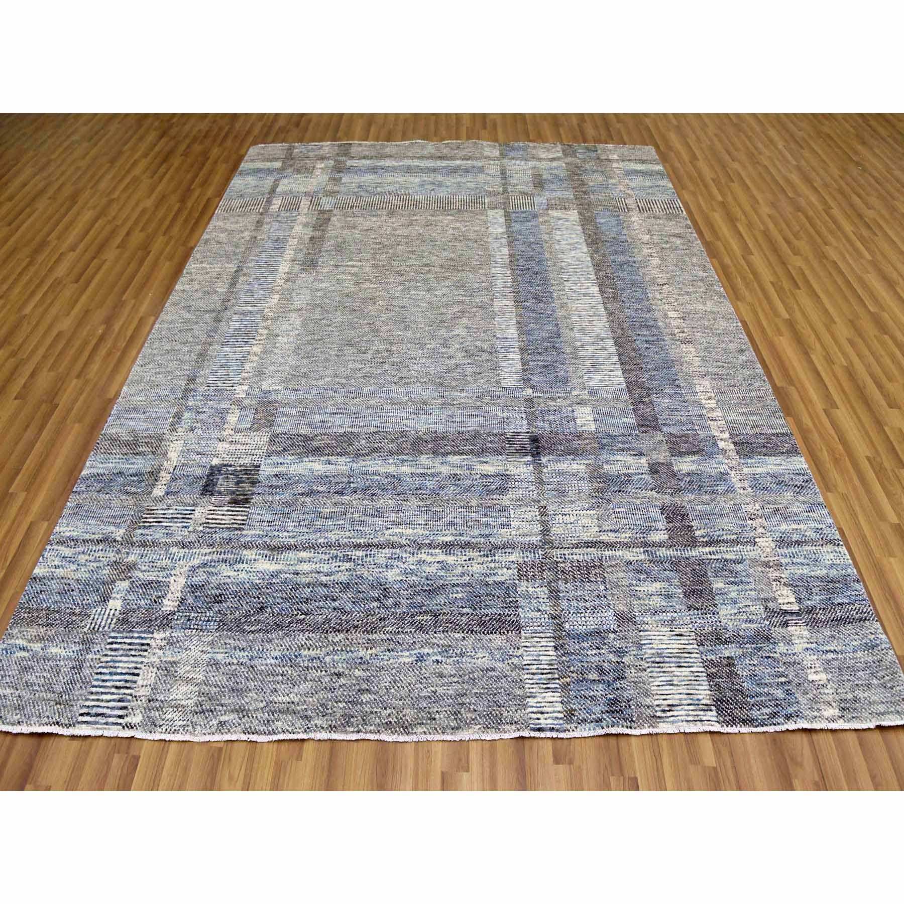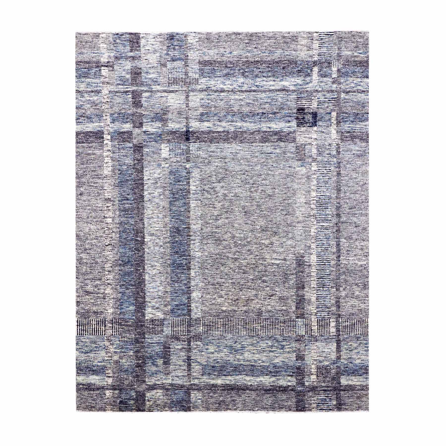 8'x10'2" Beige, Hand Knotted Geometric Opened Up Plaid Design, 100% Wool, Oriental Rug FWR476274