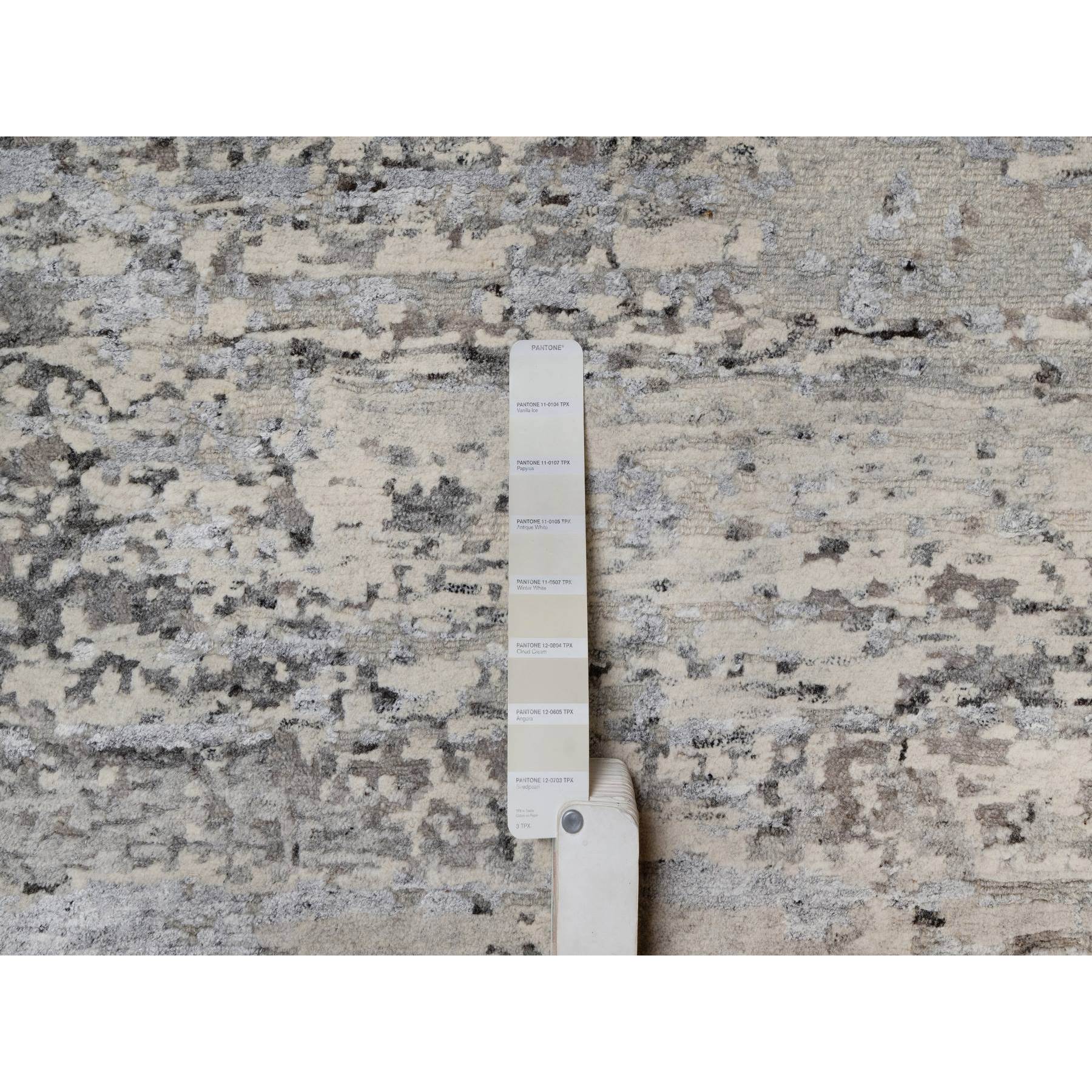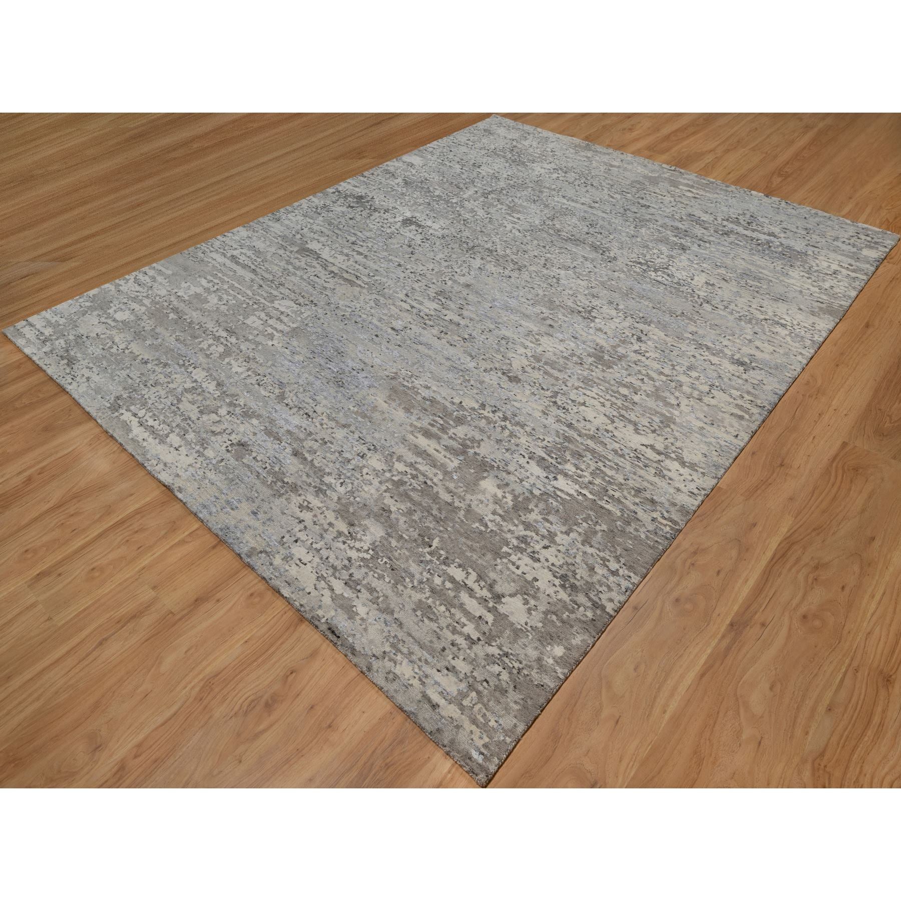 8'x10'2" Papyrus White, Contemporary Pattern, Hand Knotted, 100% Natural Undyed Wool, Oriental Rug FWR551106