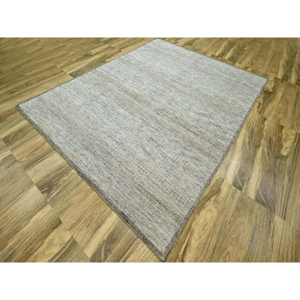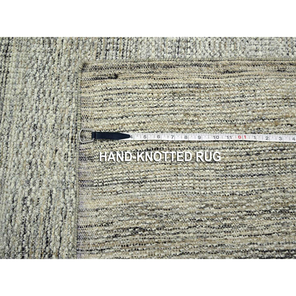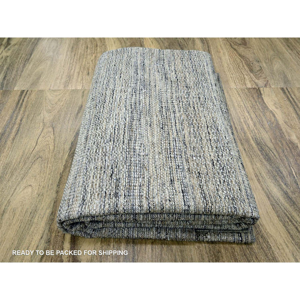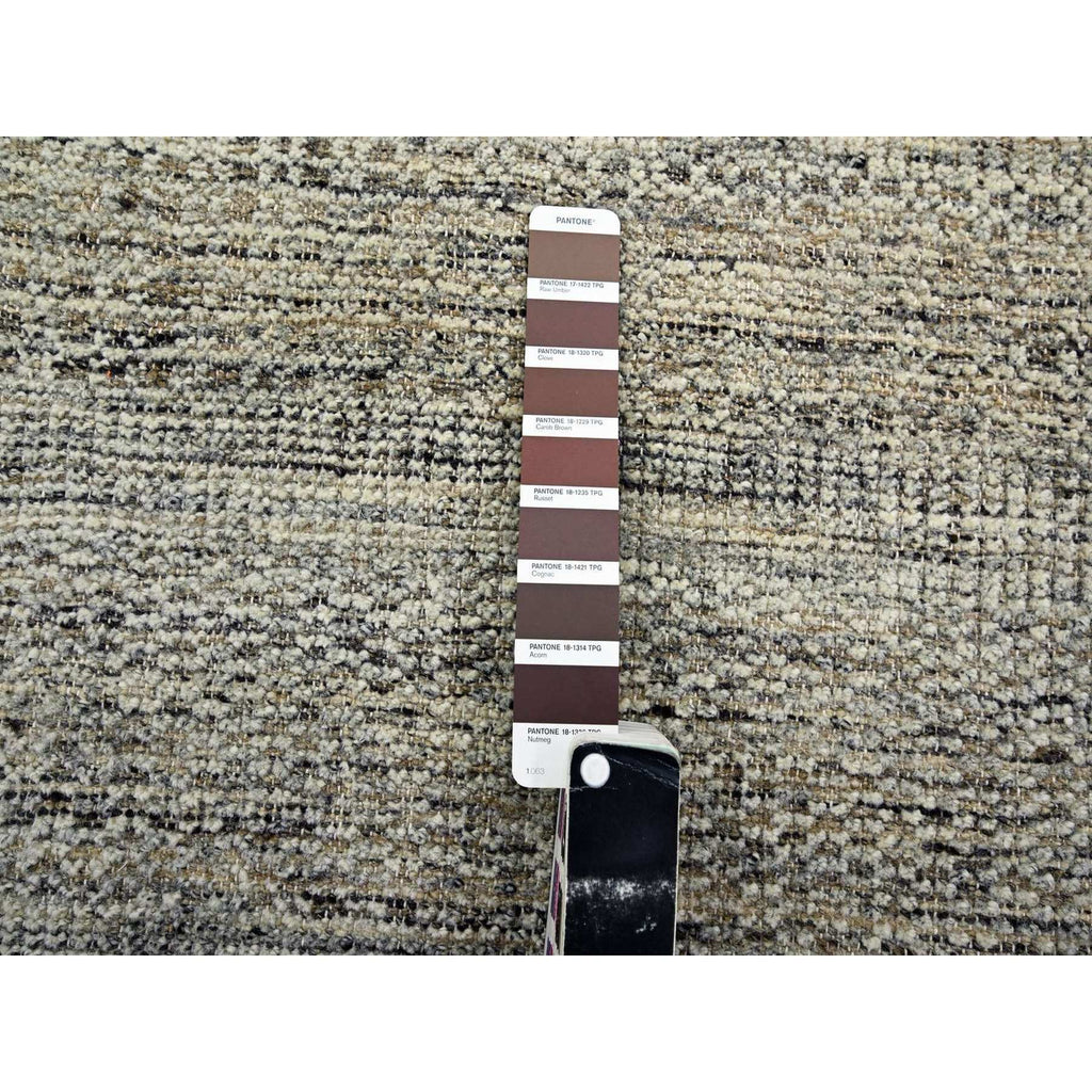 8'x10'3" Coffee Brown, Organic Wool, Hand Knotted, Oxidized & Distressed Grass Design With Exposed Warps, Oriental Rug FWR460308