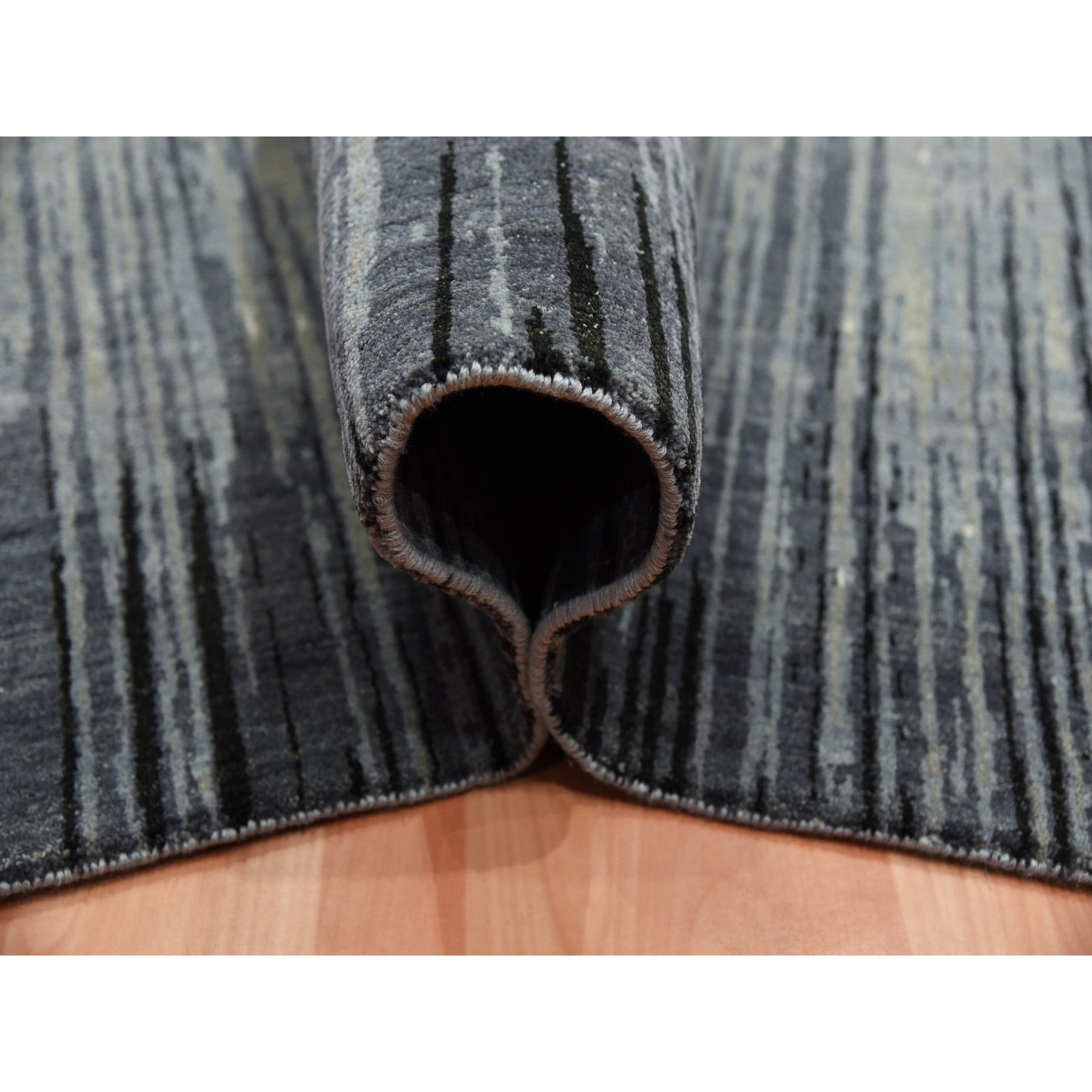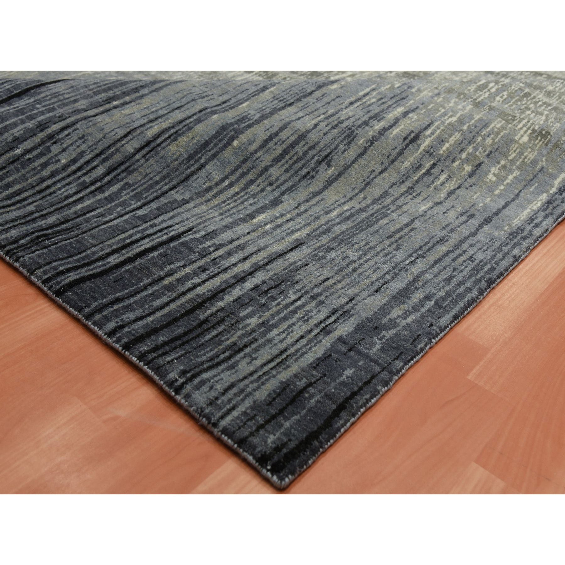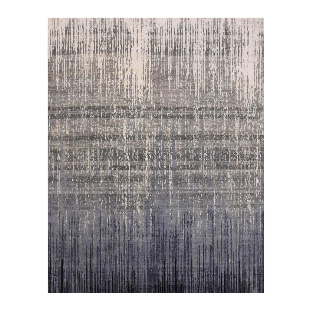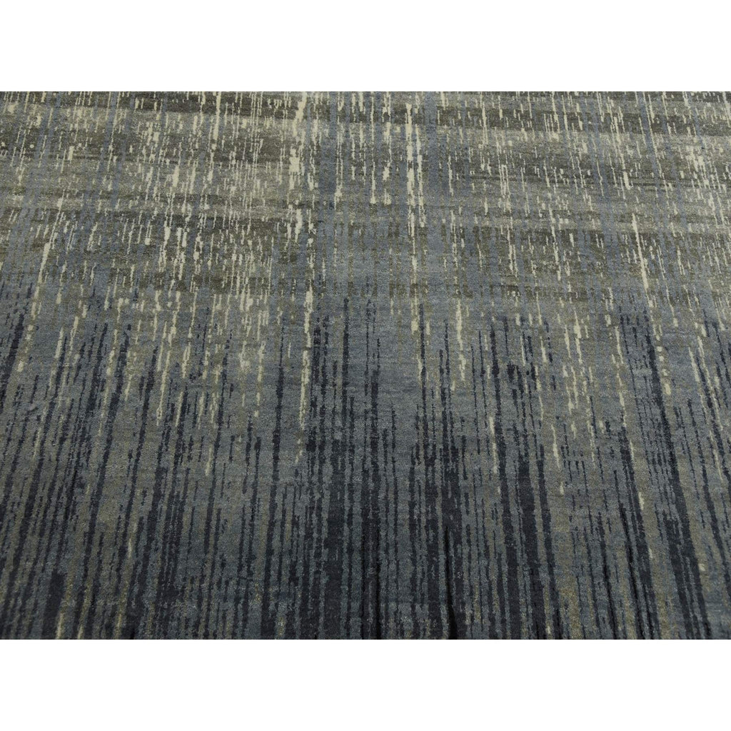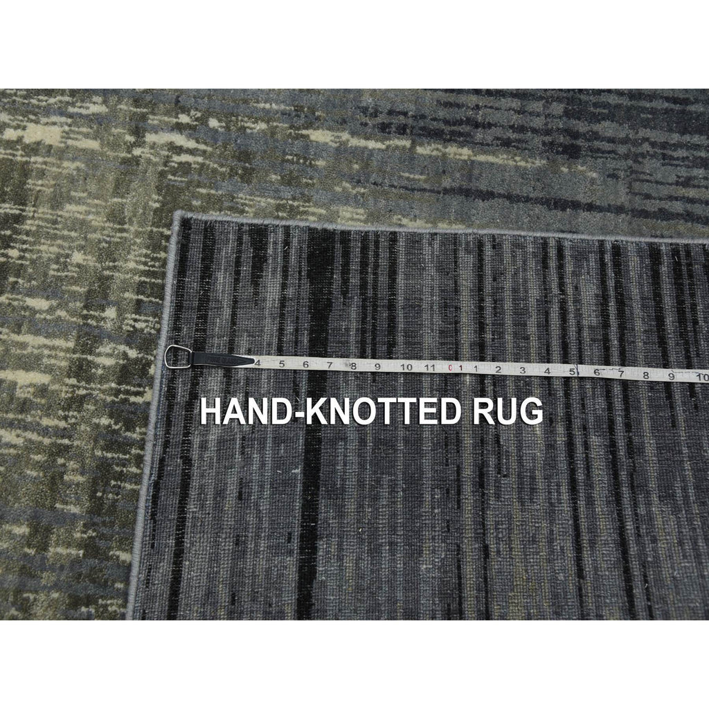 8'x10'3" Gray And Black Modern Ombre Design Densely Woven Hand Knotted Pure Wool Oriental Rug FWR450864