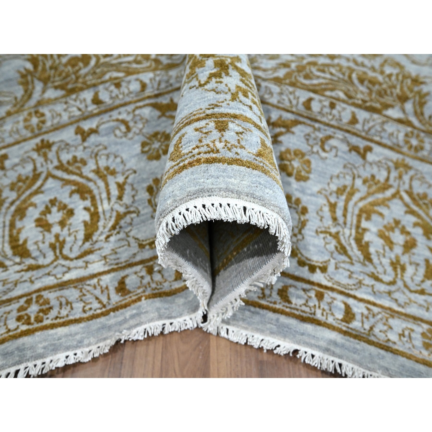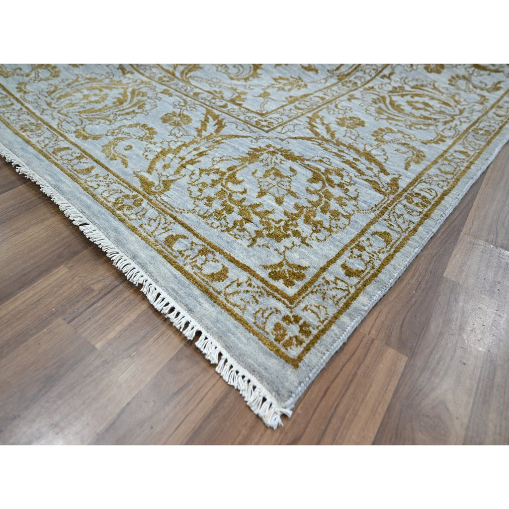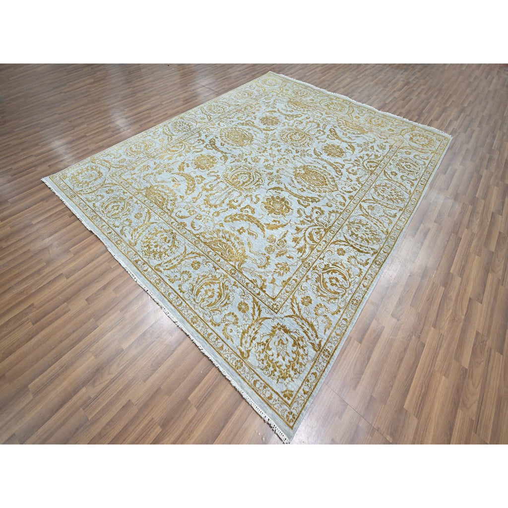 8'x10' Beau Blue With Golden Brown, Persian Influence Design, Tone On Tone, Wool & Silk, Hand Knotted, Oriental Rug FWR457848