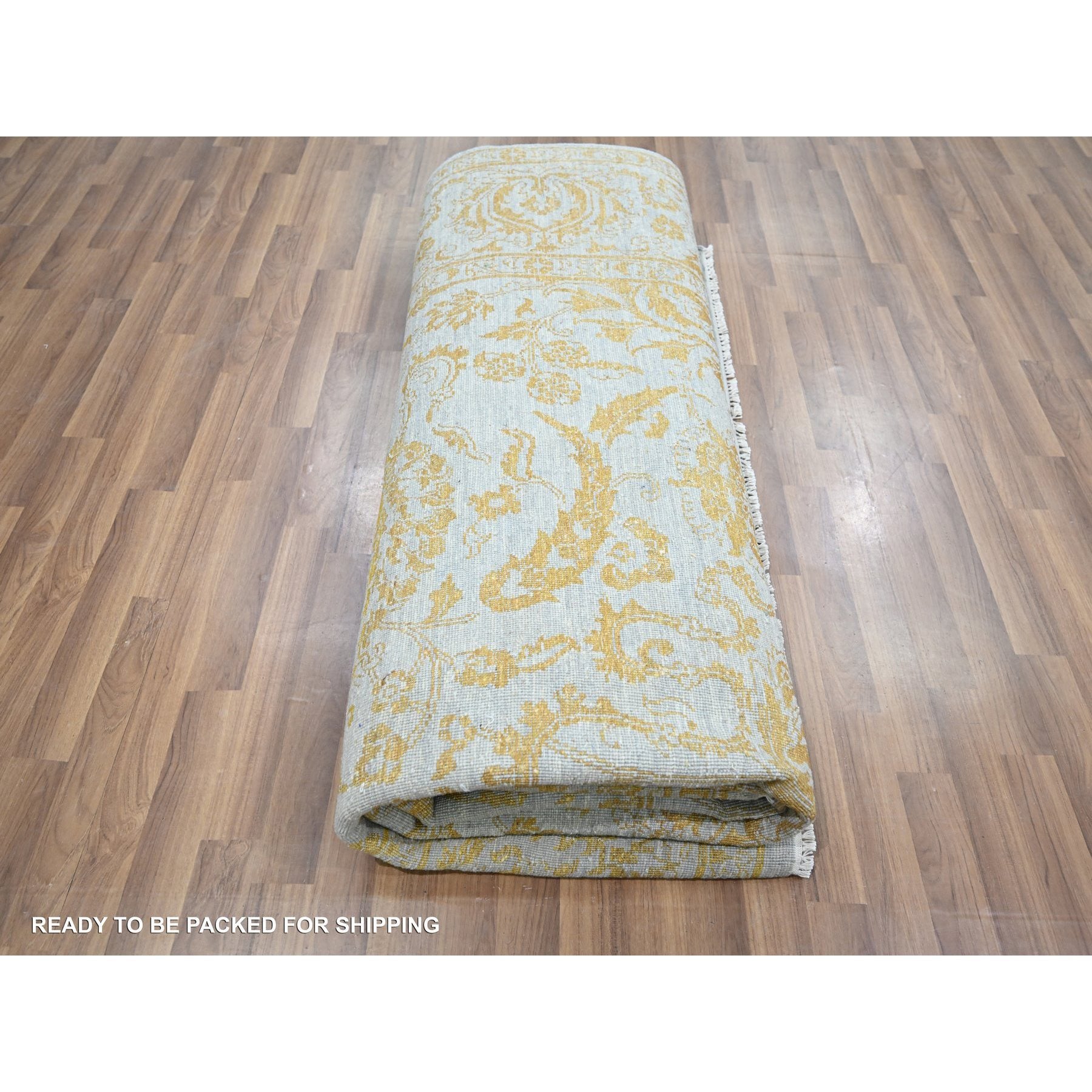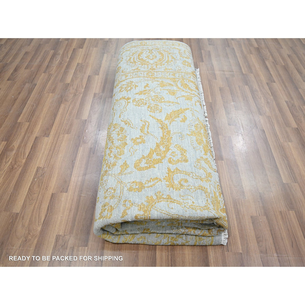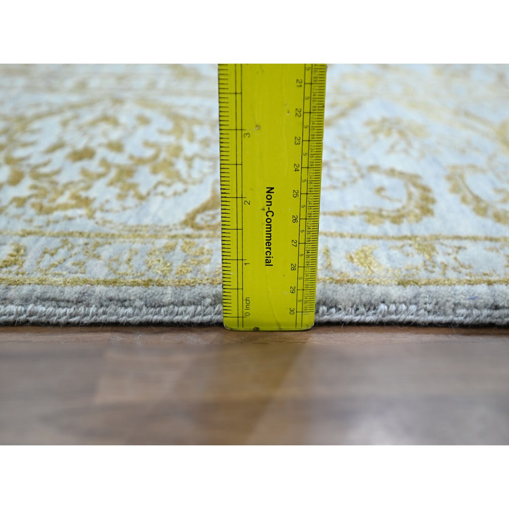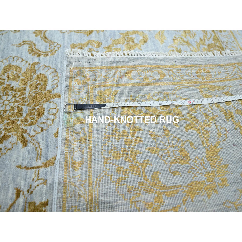 8'x10' Beau Blue With Golden Brown, Persian Influence Design, Tone On Tone, Wool & Silk, Hand Knotted, Oriental Rug FWR457848