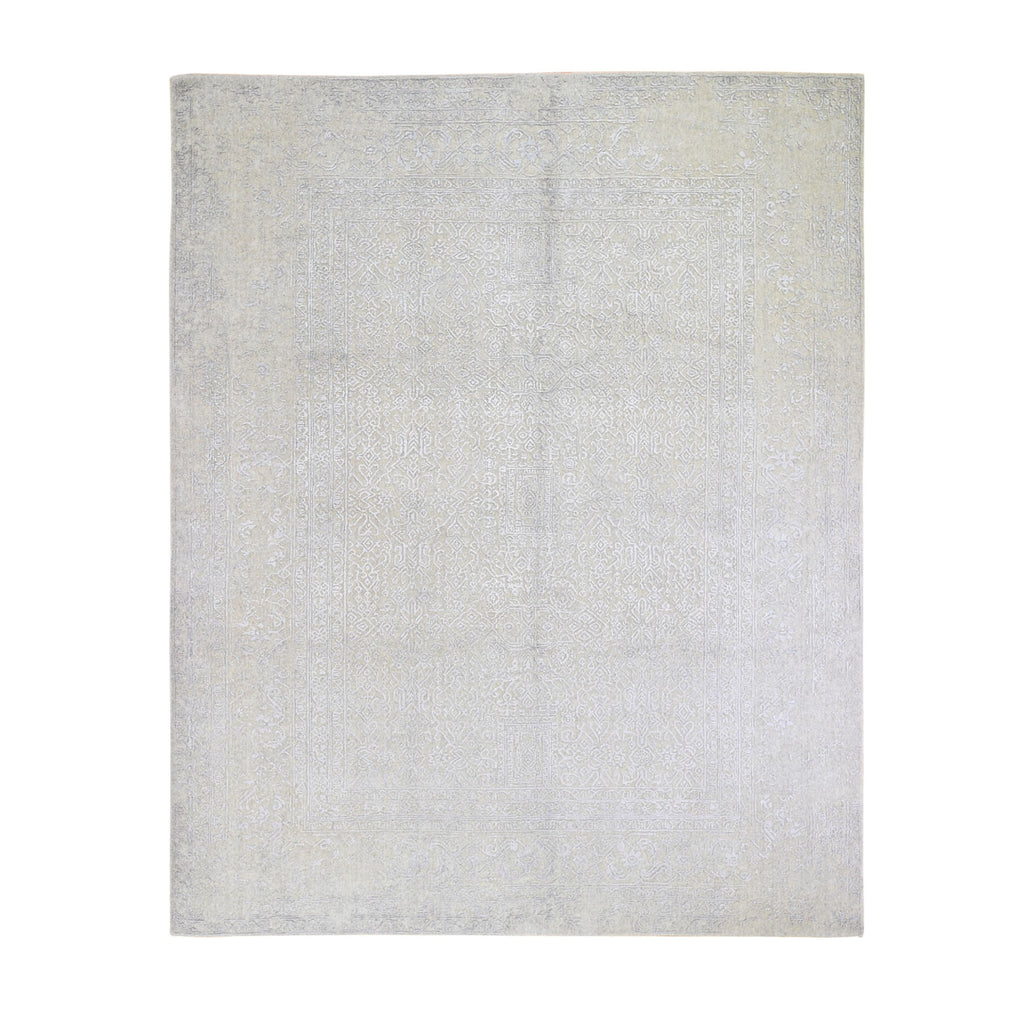 8'x10' Beige Wool And Plant Based Silk Hand Loomed Fine Jacquard With Erased Design Oriental Rug FWR357396
