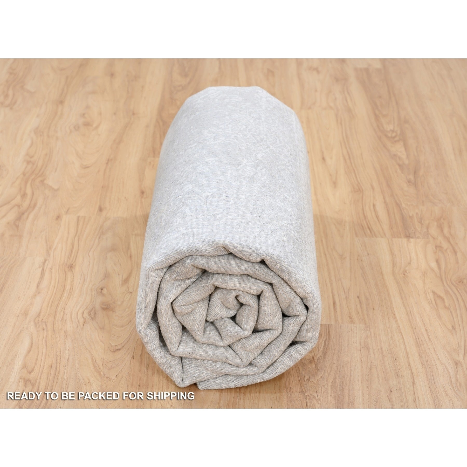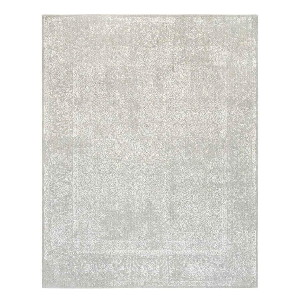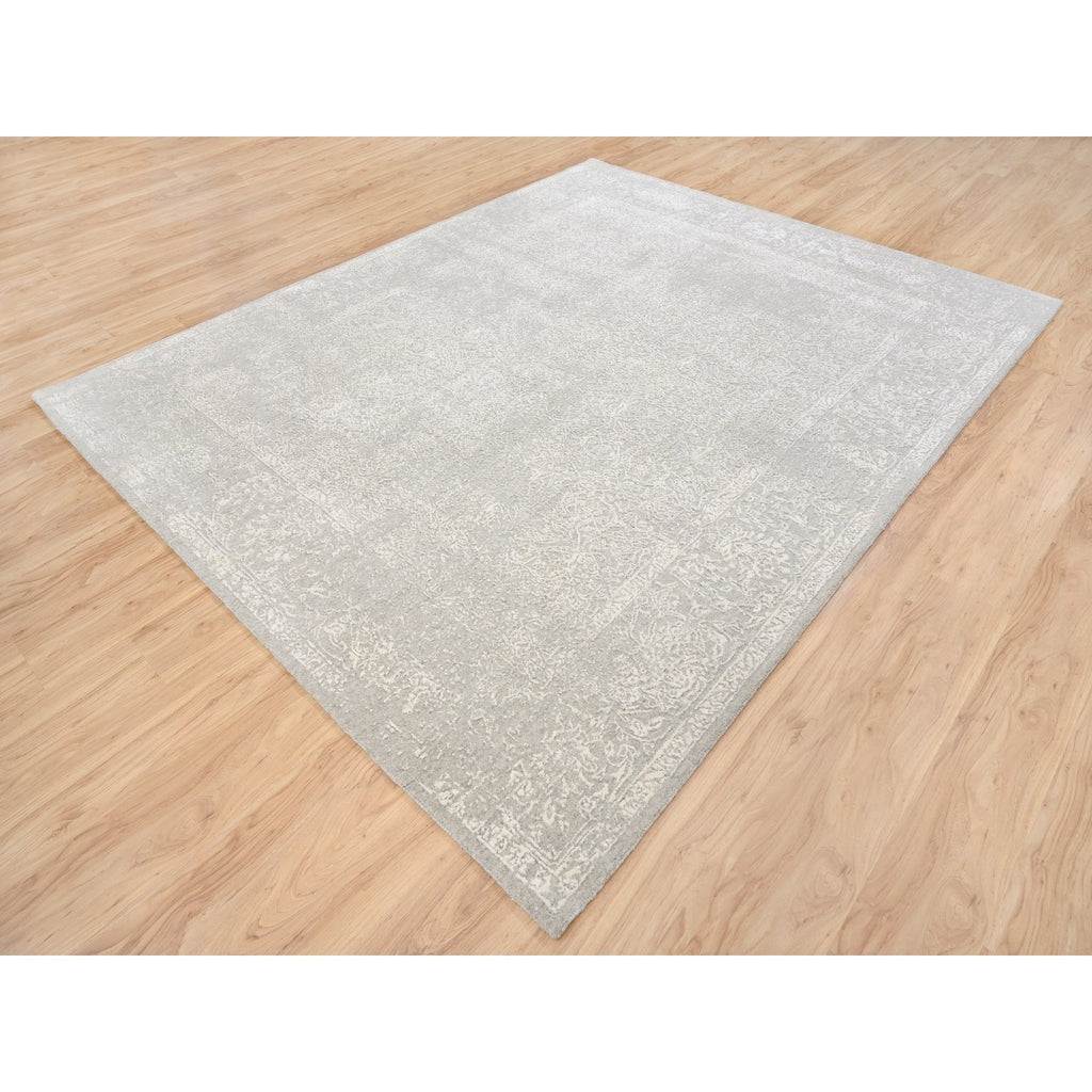8'x10' Beige Wool And Plant Based Silk Hand Loomed Fine Jacquard With Erased Design Oriental Rug FWR379602