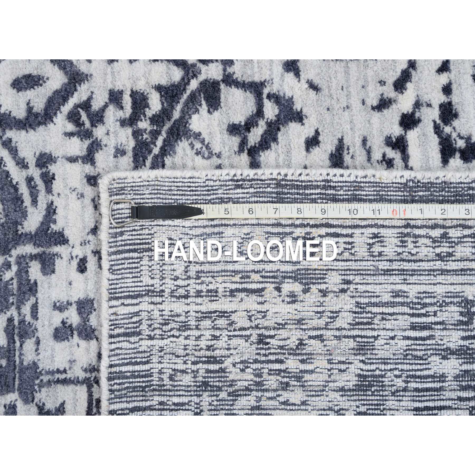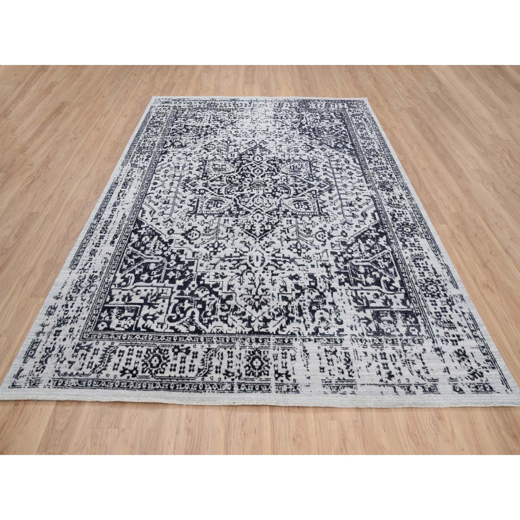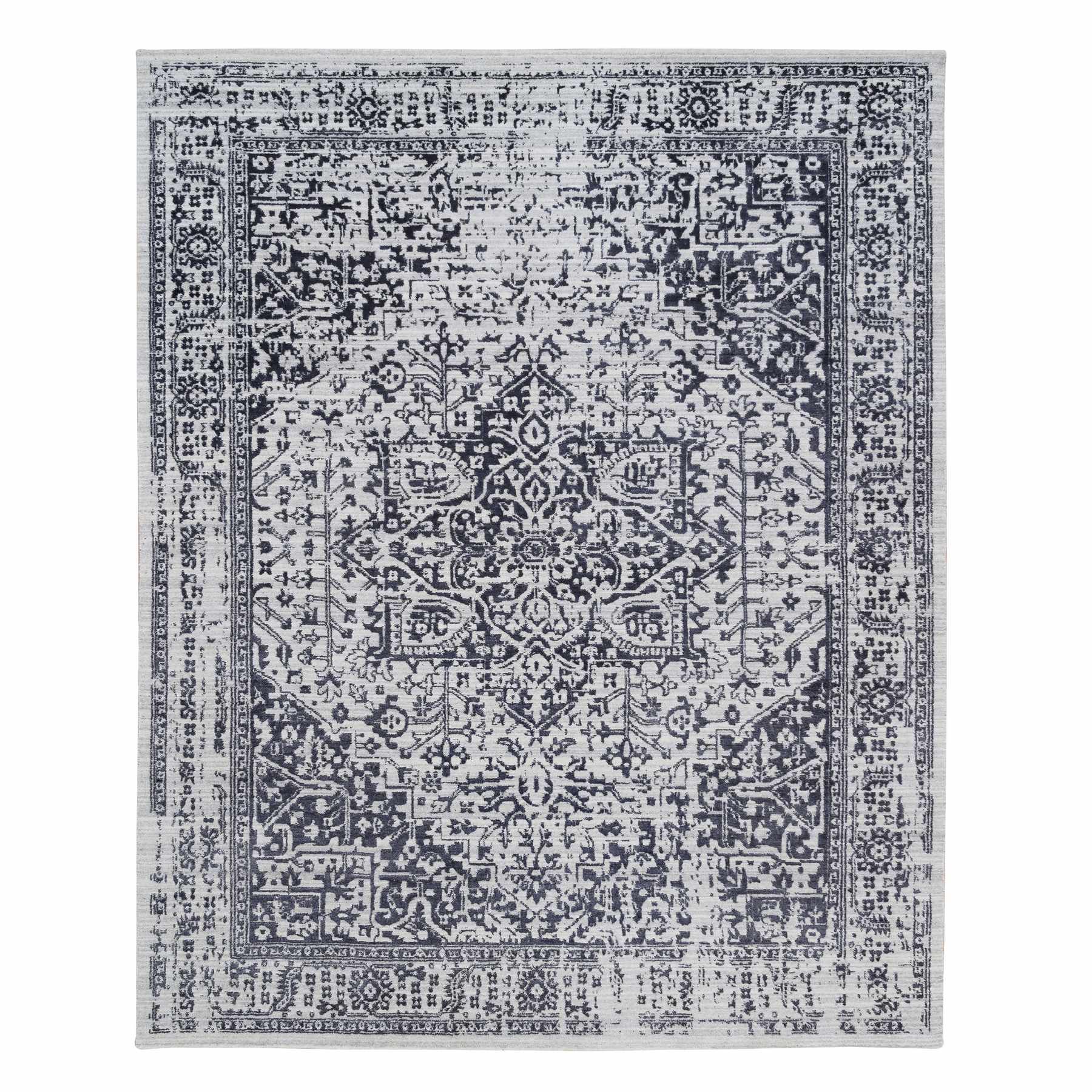 8'x10' Charcoal Black, Erased Serapi Heriz Design, Jacquard Hand Loomed, Wool And Plant Based Silk, Oriental Rug FWR382722