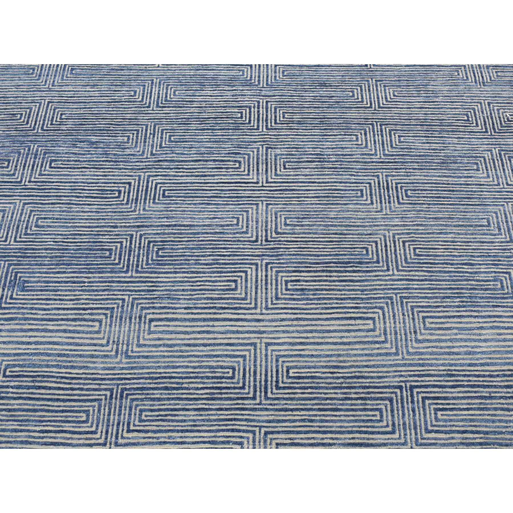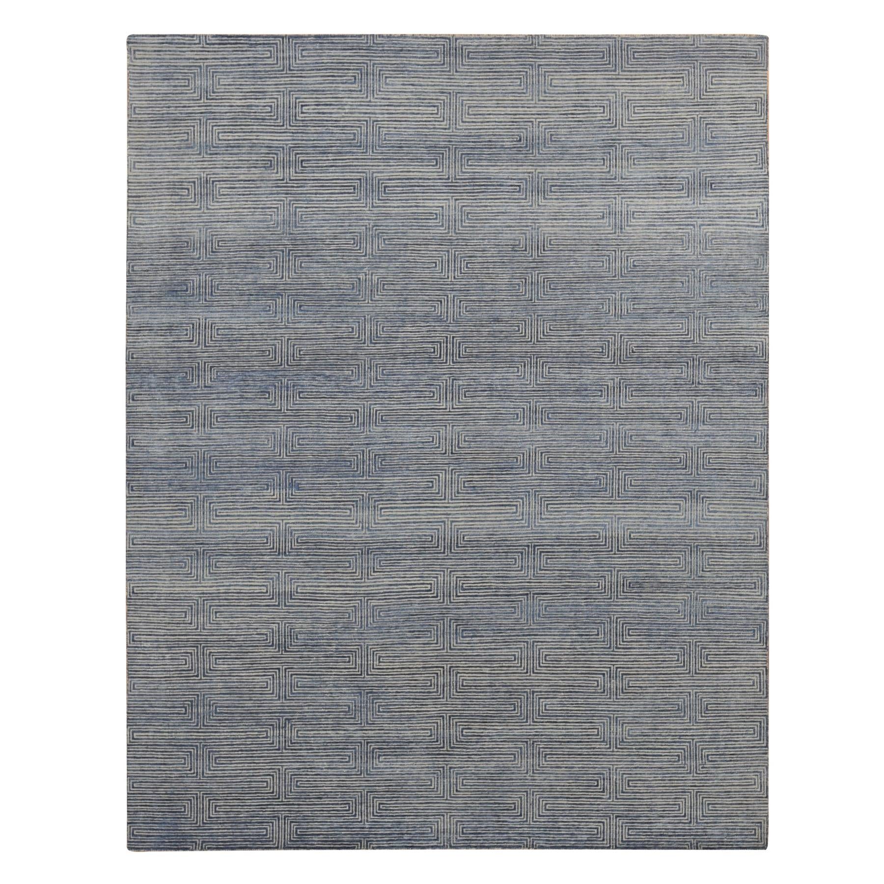 8'x10' Independence Blue, Silk With Wool, Maze Design, Hand Knotted, Oriental Rug FWR484962