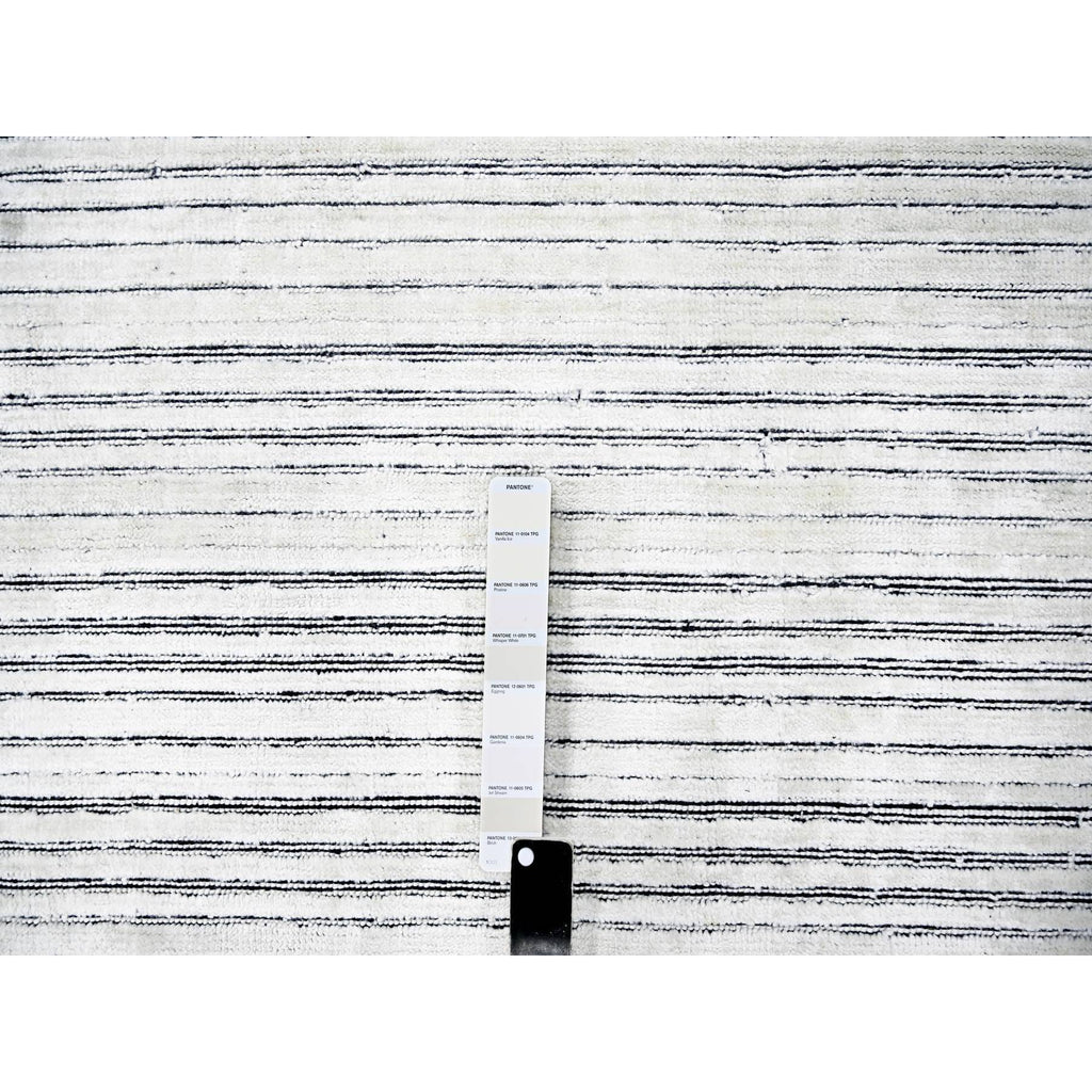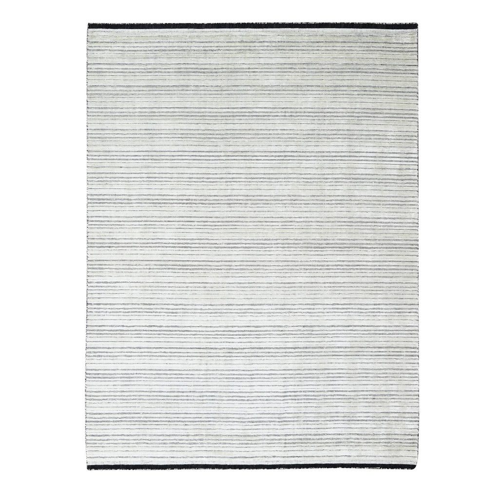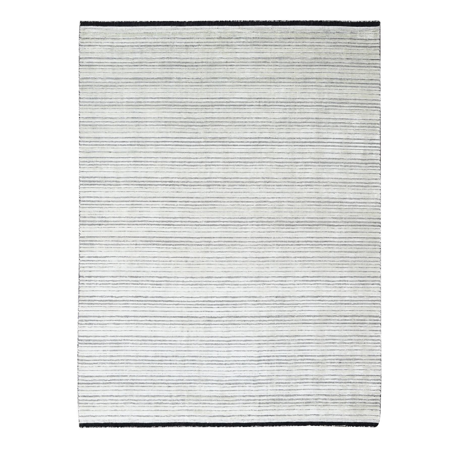 8'x10' Ivory, Wool And Plant Based Silk, Modern Textured And Variegated Line Design, Hand Loomed, Oriental Rug FWR506094