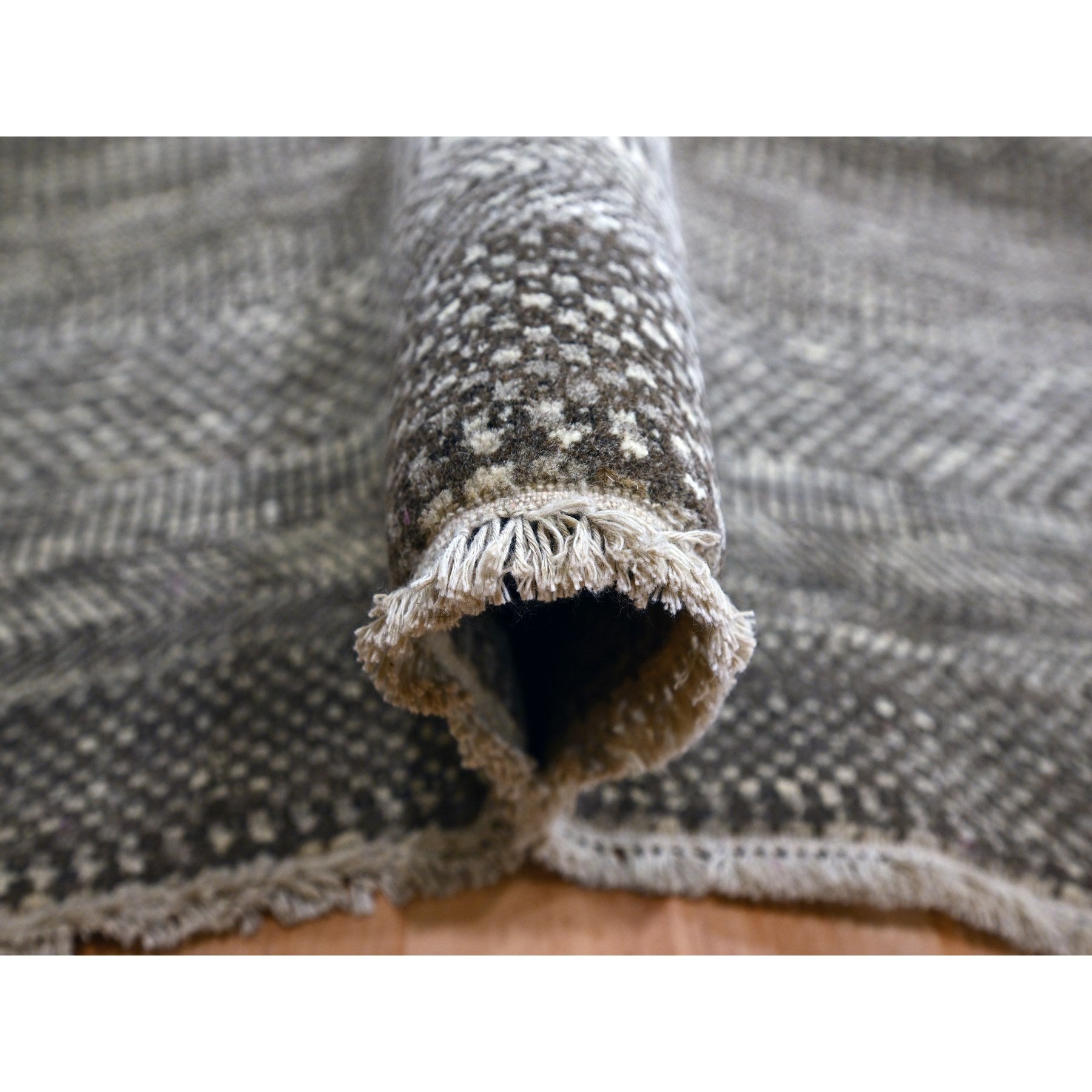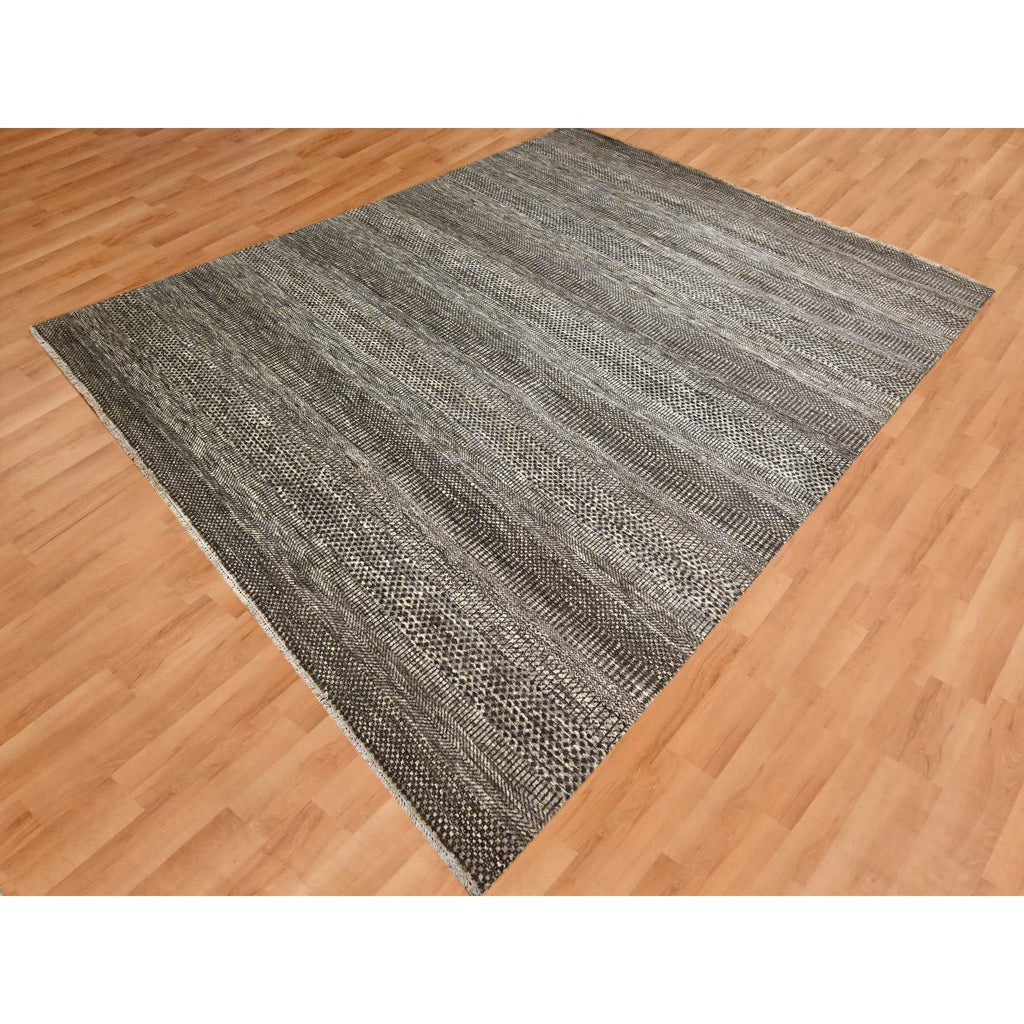 8'x10' Mocha Brown, Modern Grass Design, Hand Knotted, Borderless, Undyed Natural Wool, Lush And Plush, Tone On Tone, Oriental Rug FWR456504