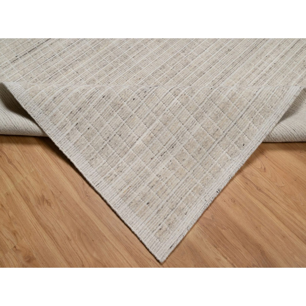 8'x10' Papyrus White, Loomed Knotted, Modern Plain Decor Box Design, Soft To Touch, Pure Wool, Oriental Rug FWR550518