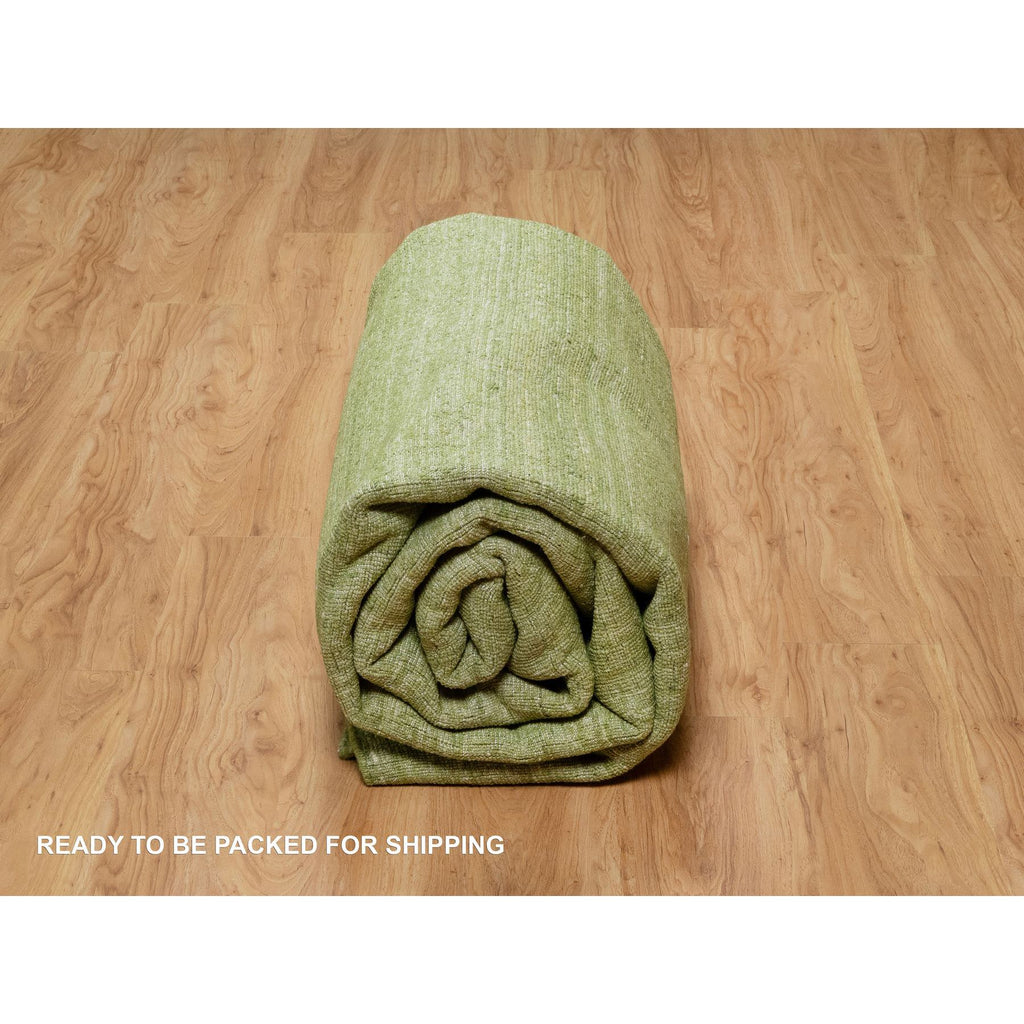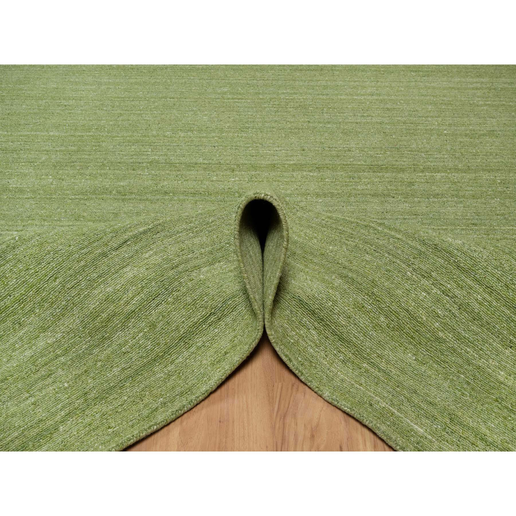 8'x10' Pickle Green, Tone On Tone, Plain Modern Striae Design, Soft Pile, Pure Wool, Hand Loomed, Oriental Rug FWR547140