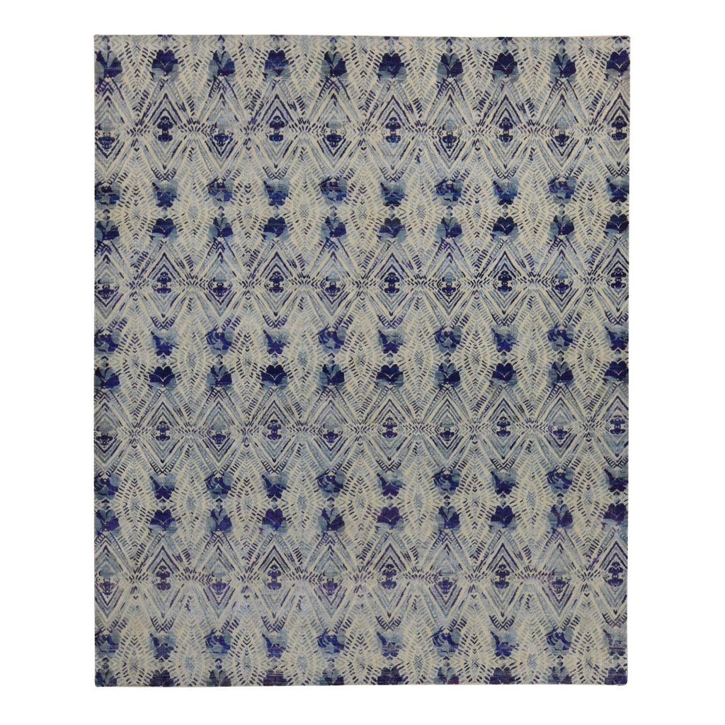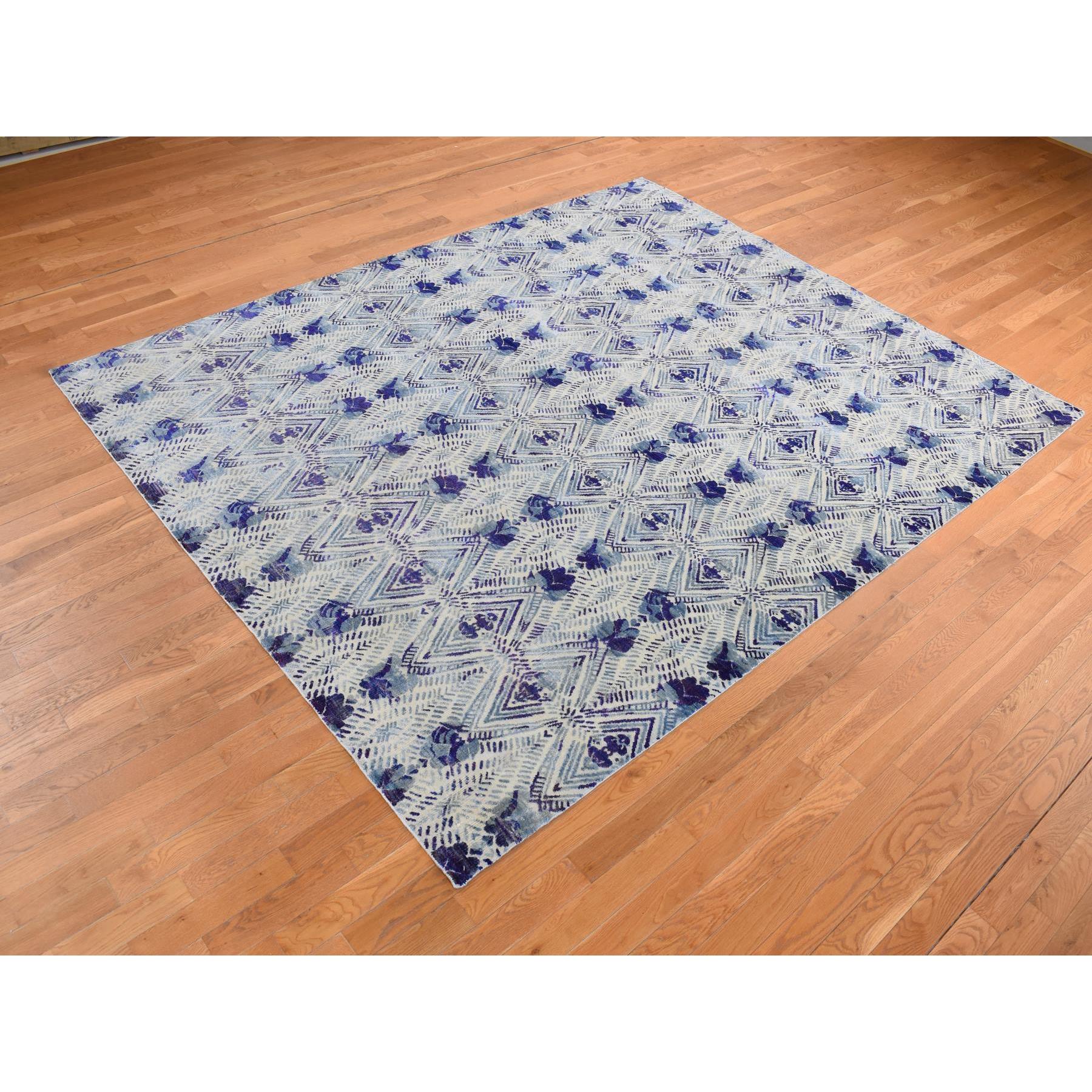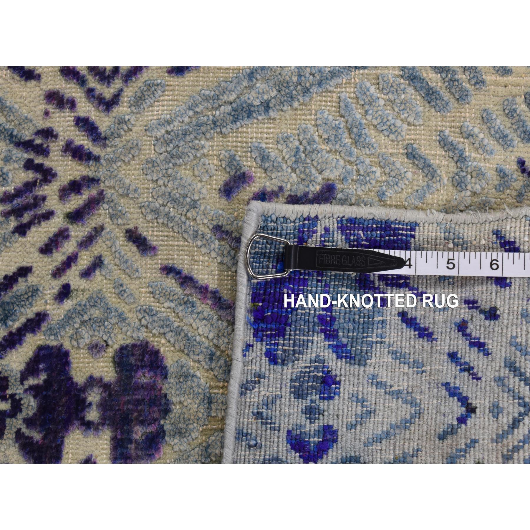 8'x10' Purple, Repetitive Geometric Flower Design, Sari Silk With Textured Wool, Hand Knotted, Oriental Rug FWR485046