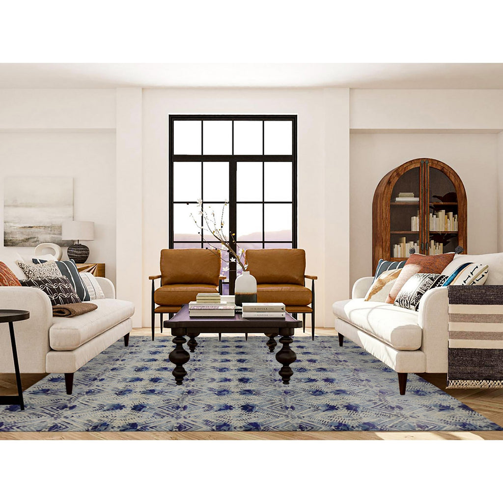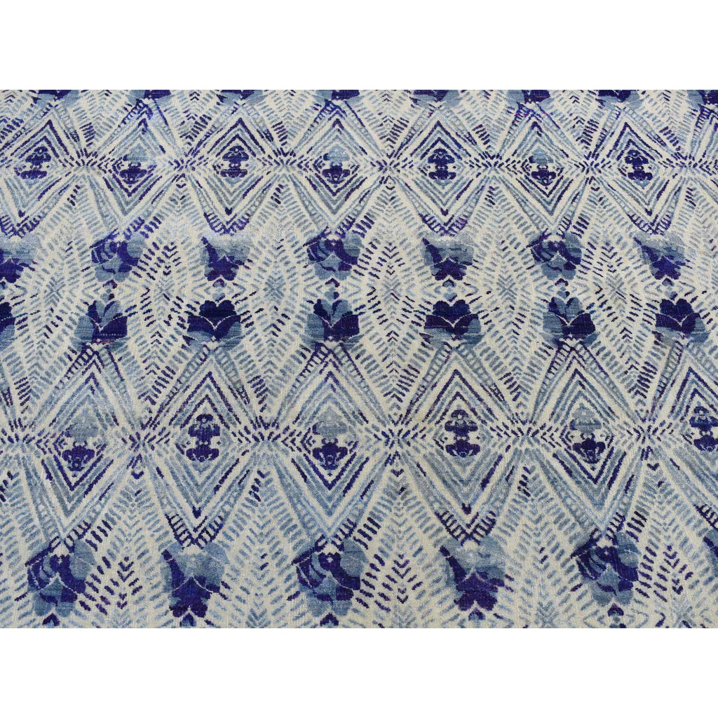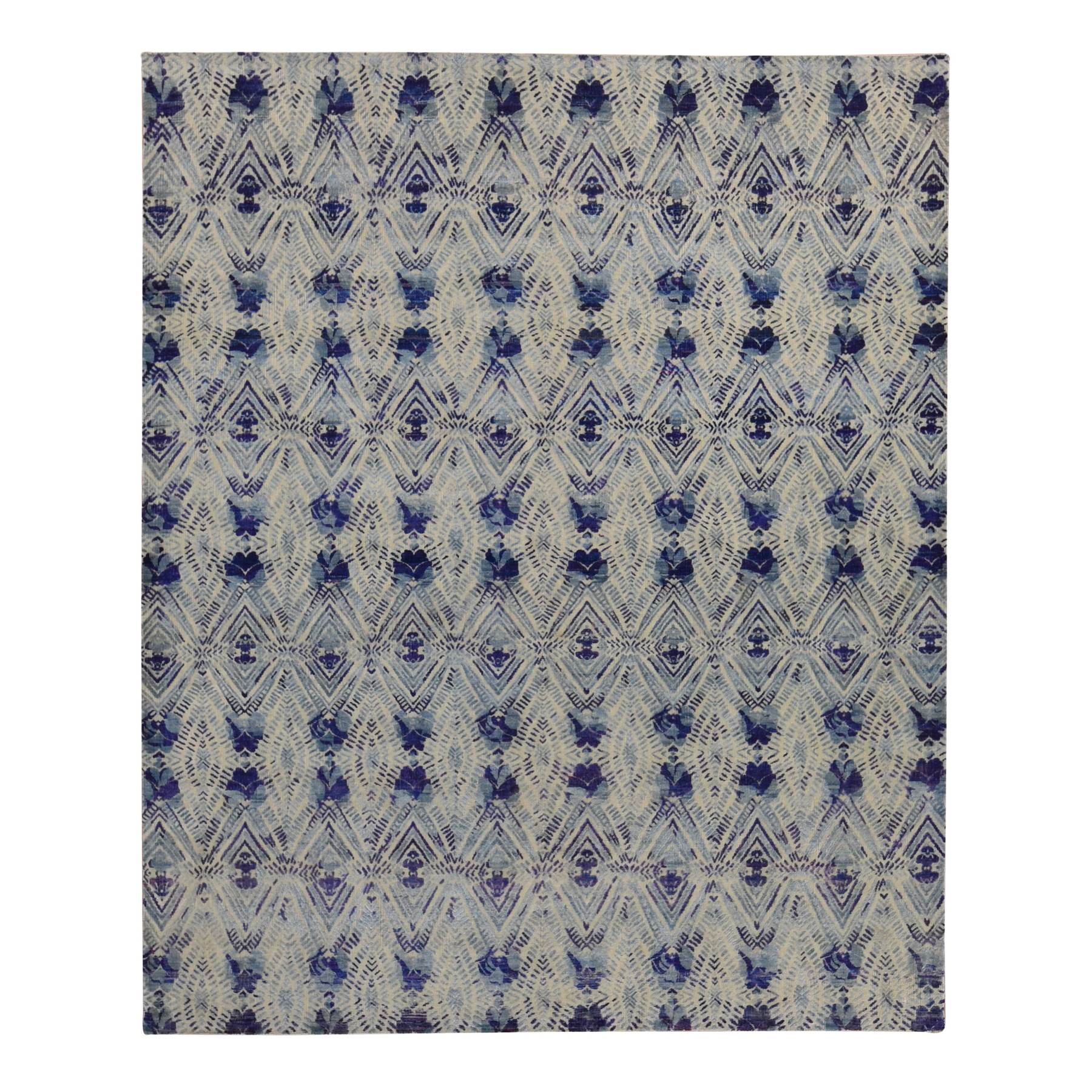8'x10' Purple, Repetitive Geometric Flower Design, Sari Silk With Textured Wool, Hand Knotted, Oriental Rug FWR485046