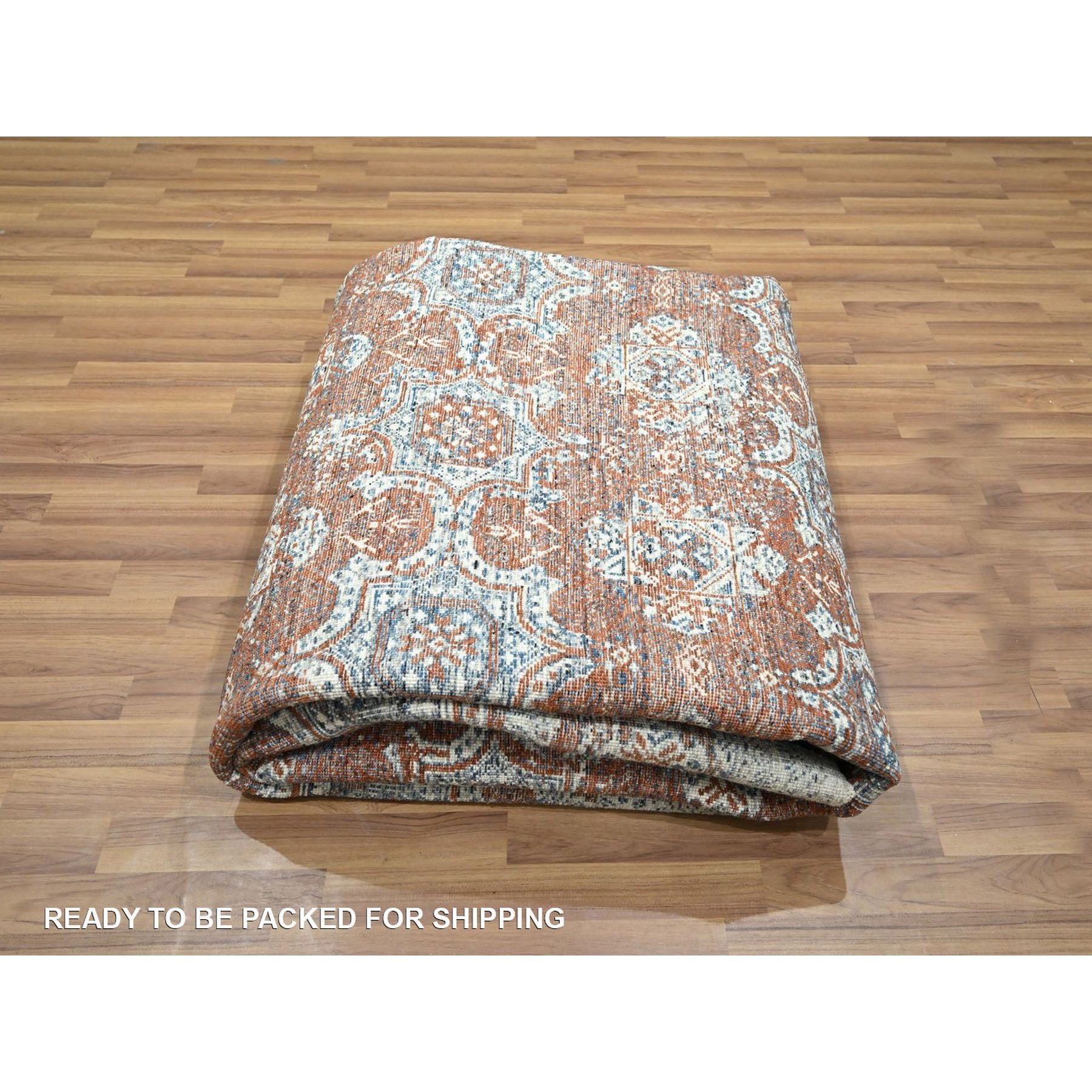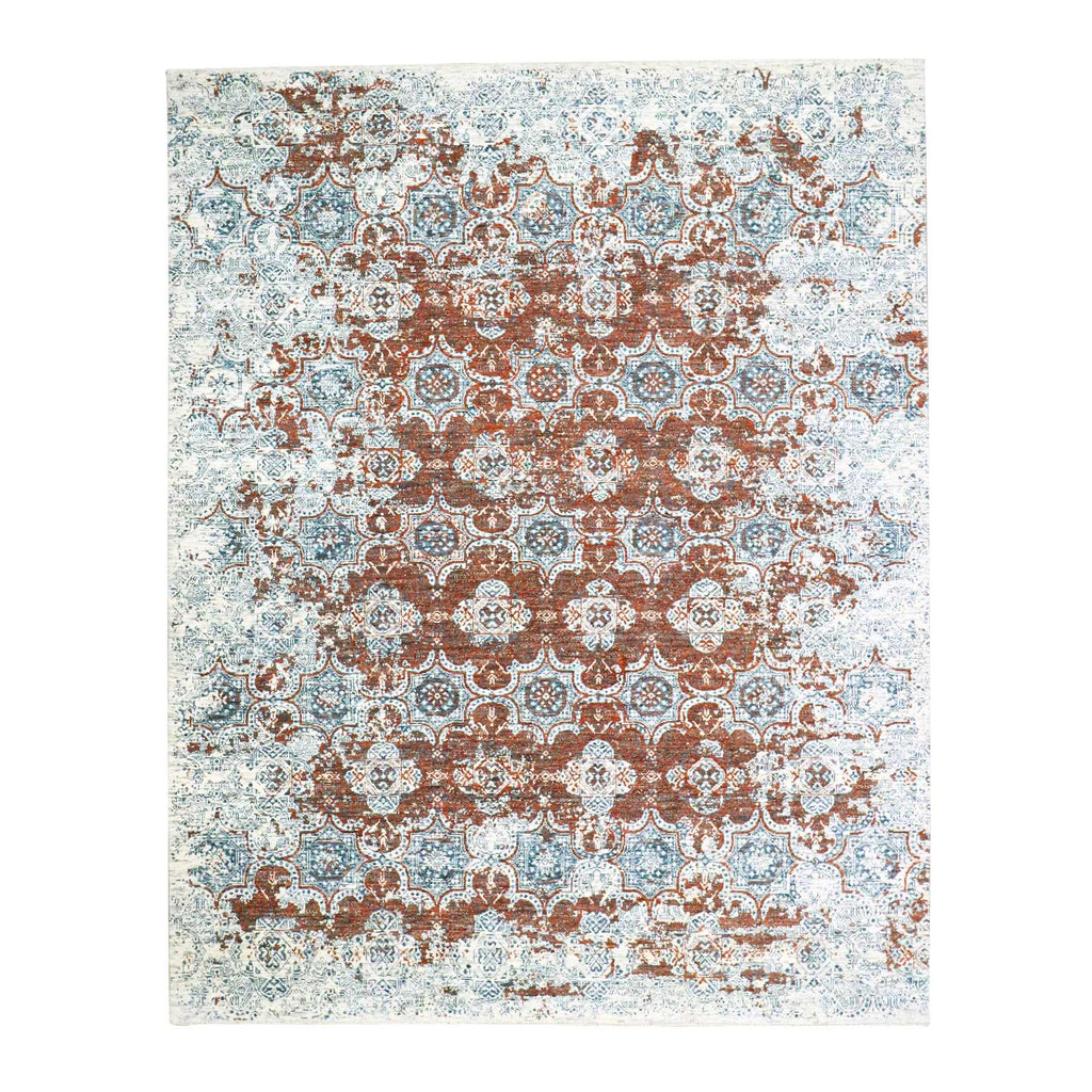 8'x10' Rust Red, Erased Rosettes Design, Tone On Tone, Hand Knotted, 100% Wool, Dense Weave, Oriental Rug FWR459384