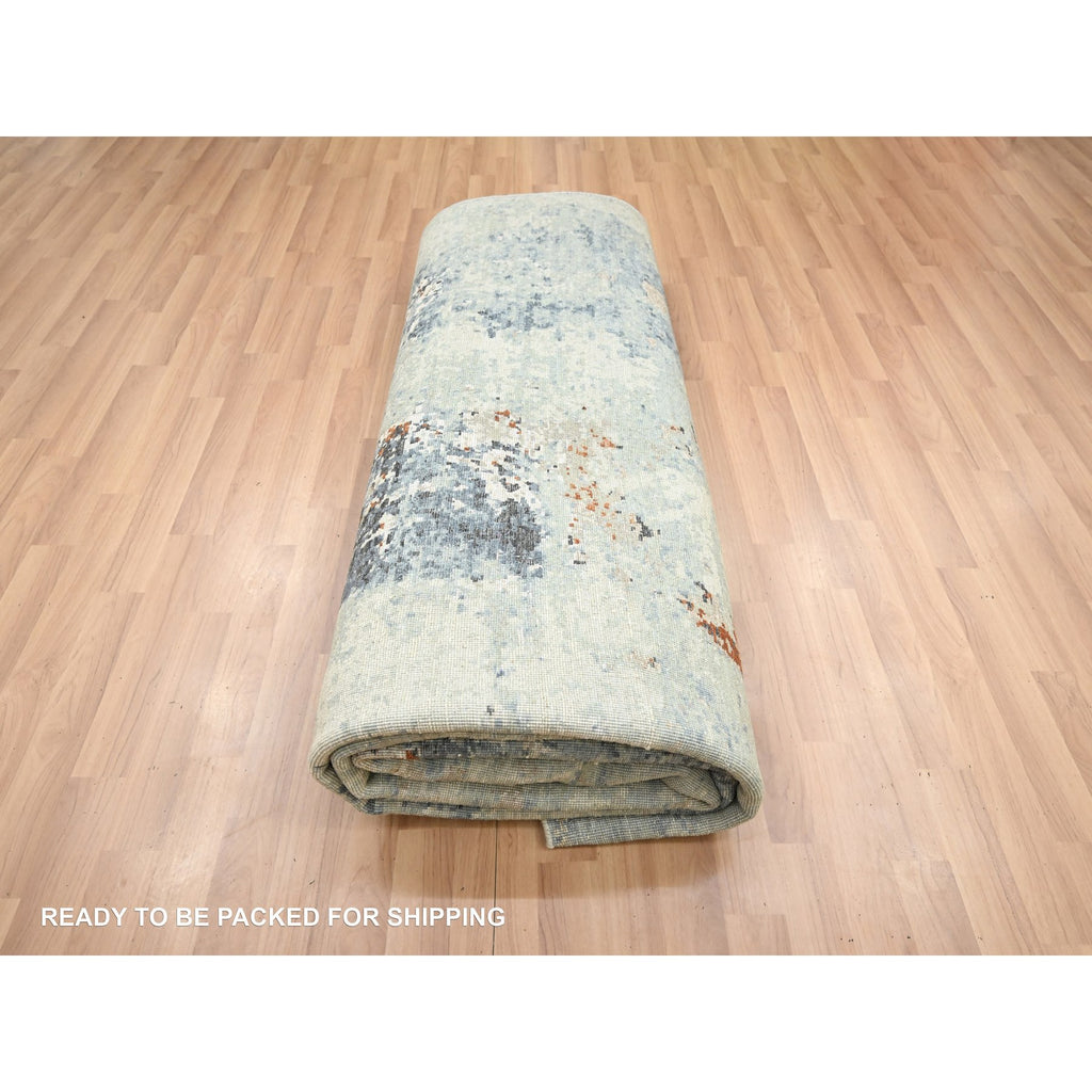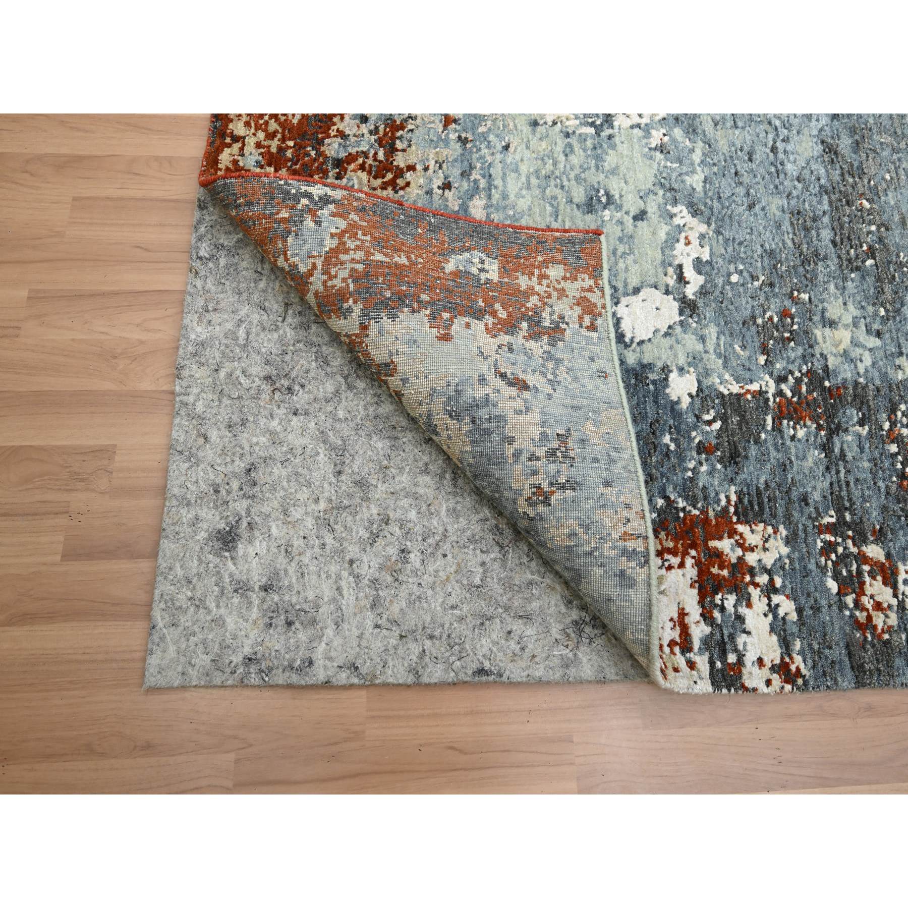 8'x10' Rust Red With Gray, Abstract With Galaxy Design, Persian Knot, Pure Wool, Hand Knotted, Densely Woven, Oriental Rug FWR498828