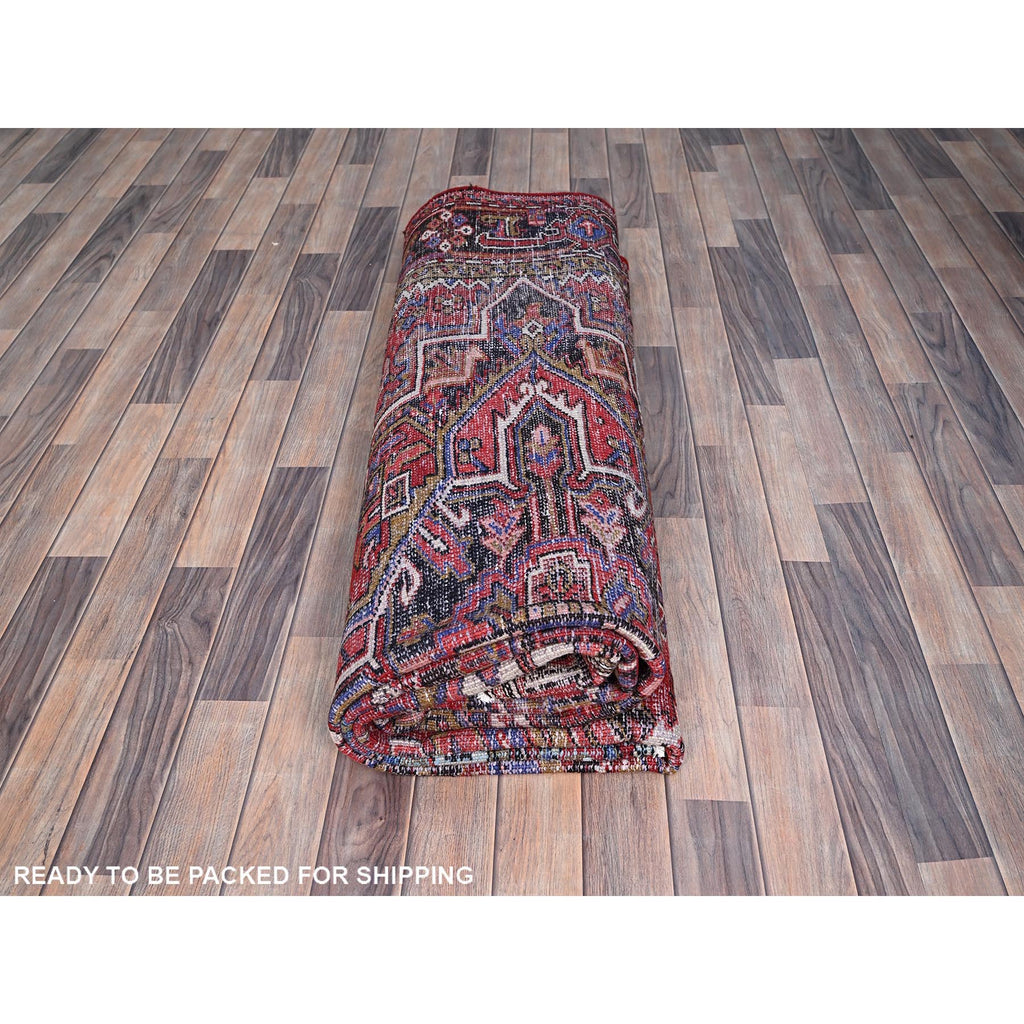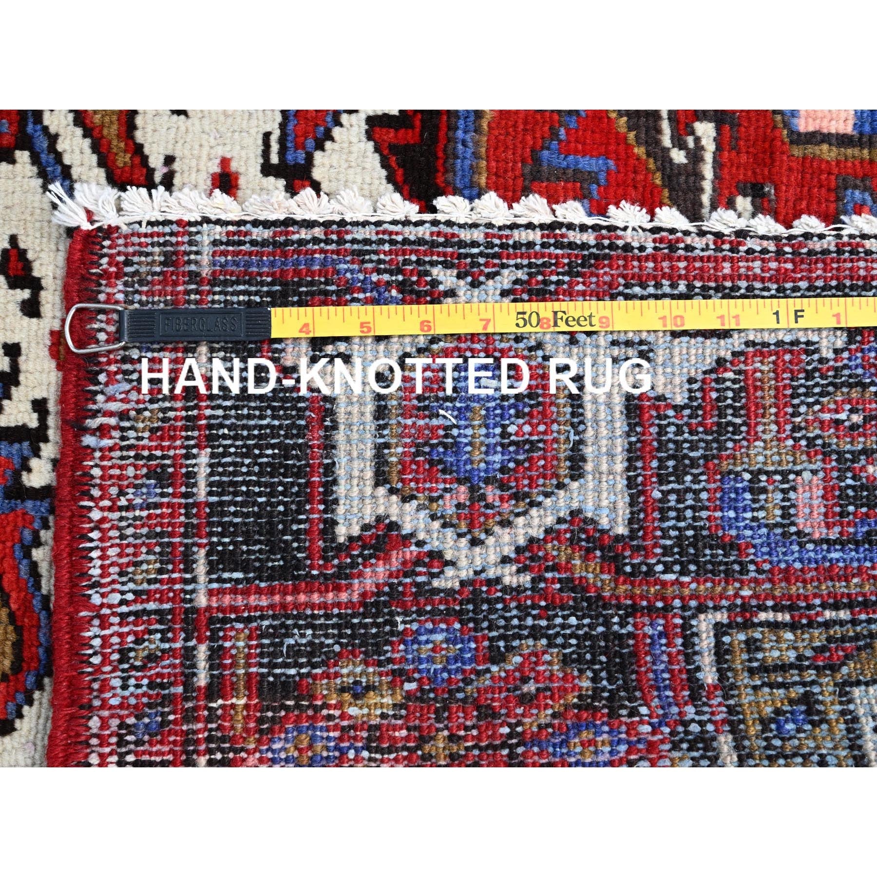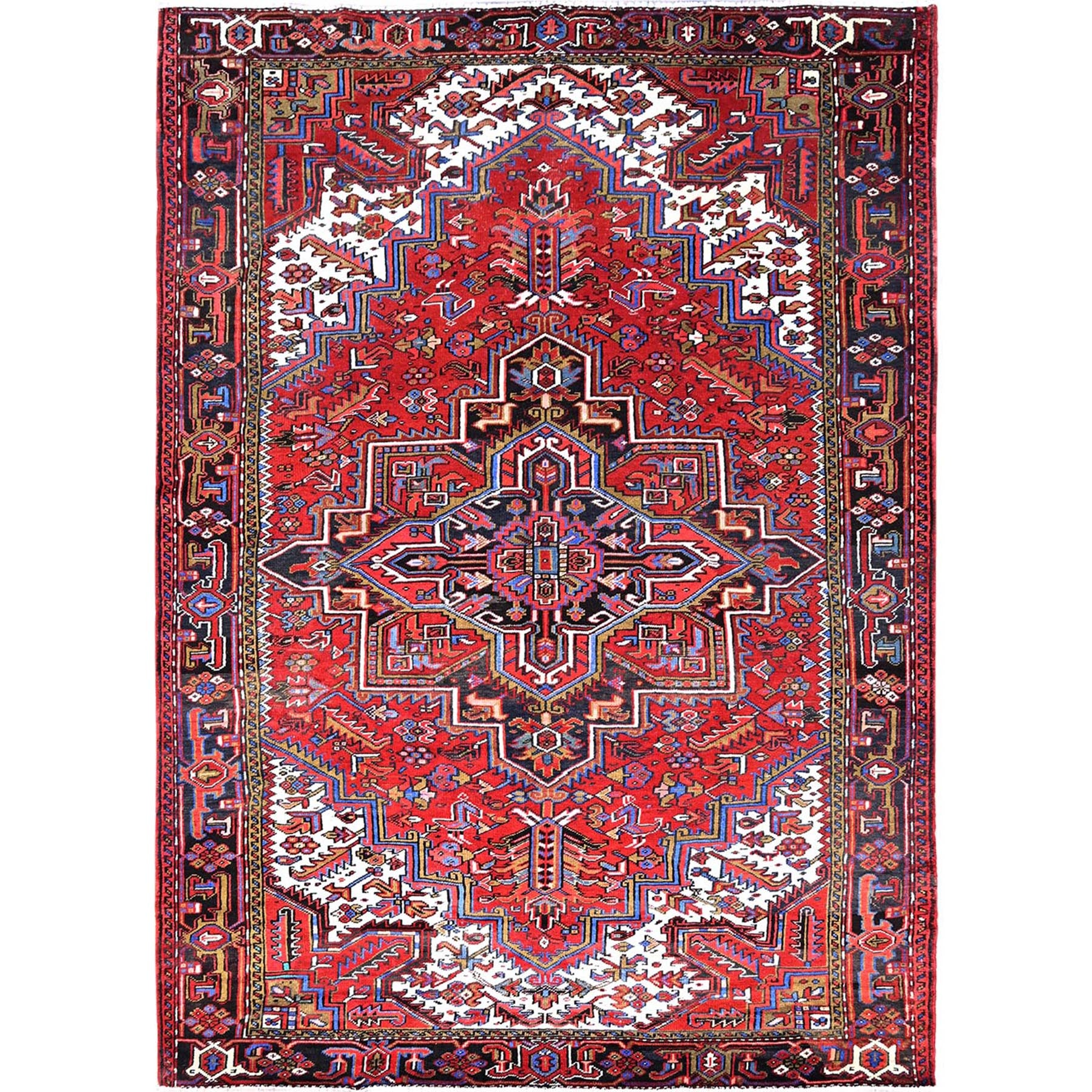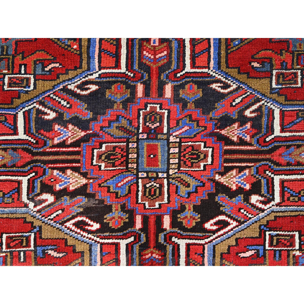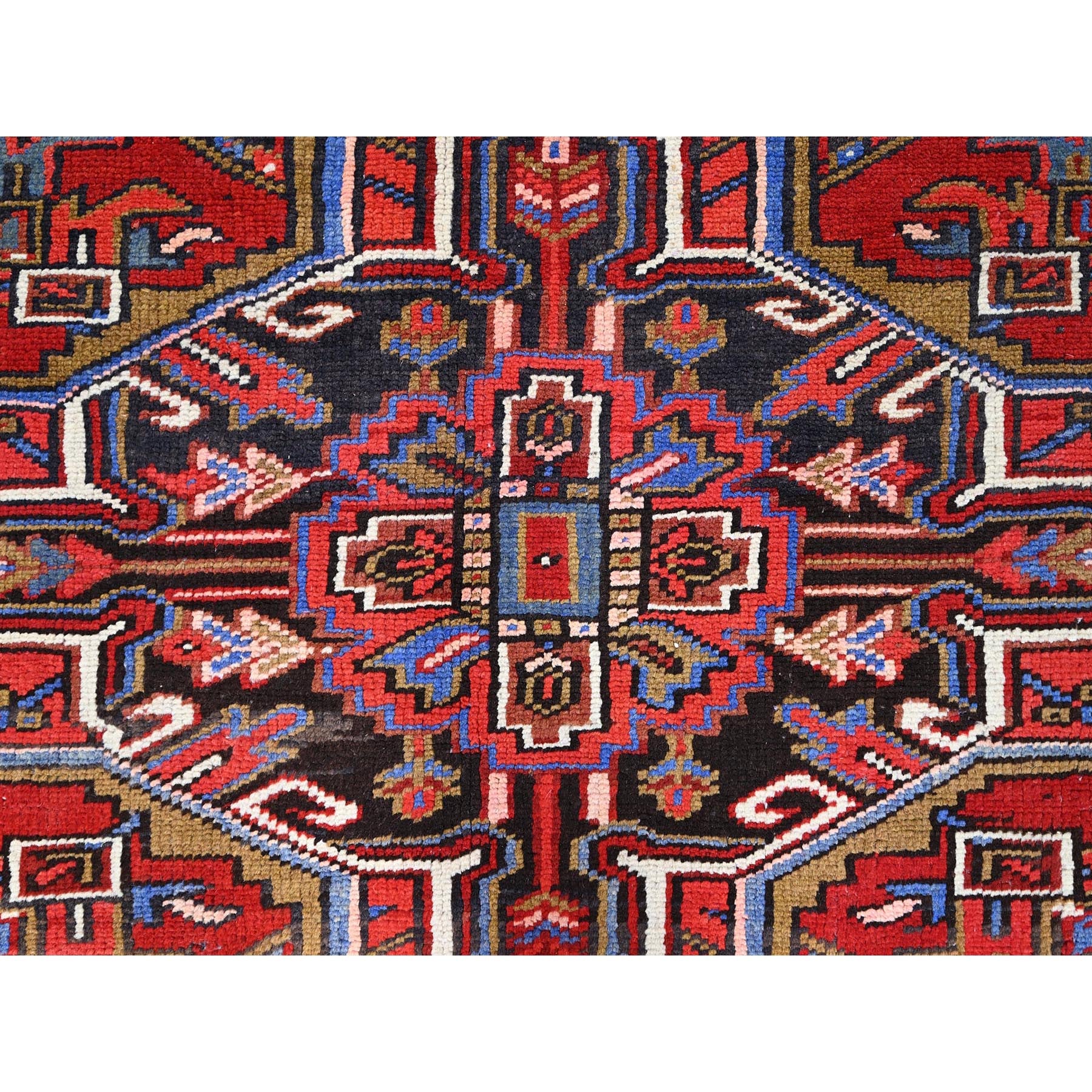 8'x11' Sox Red, Vintage And Semi Antique Persian Heriz With Geometric Pattern, Good Condition, Even Wear, Organic Wool, Hand Knotted, Sides And Ends Professionally Secured, Cleaned, Oriental Rug FWR515568