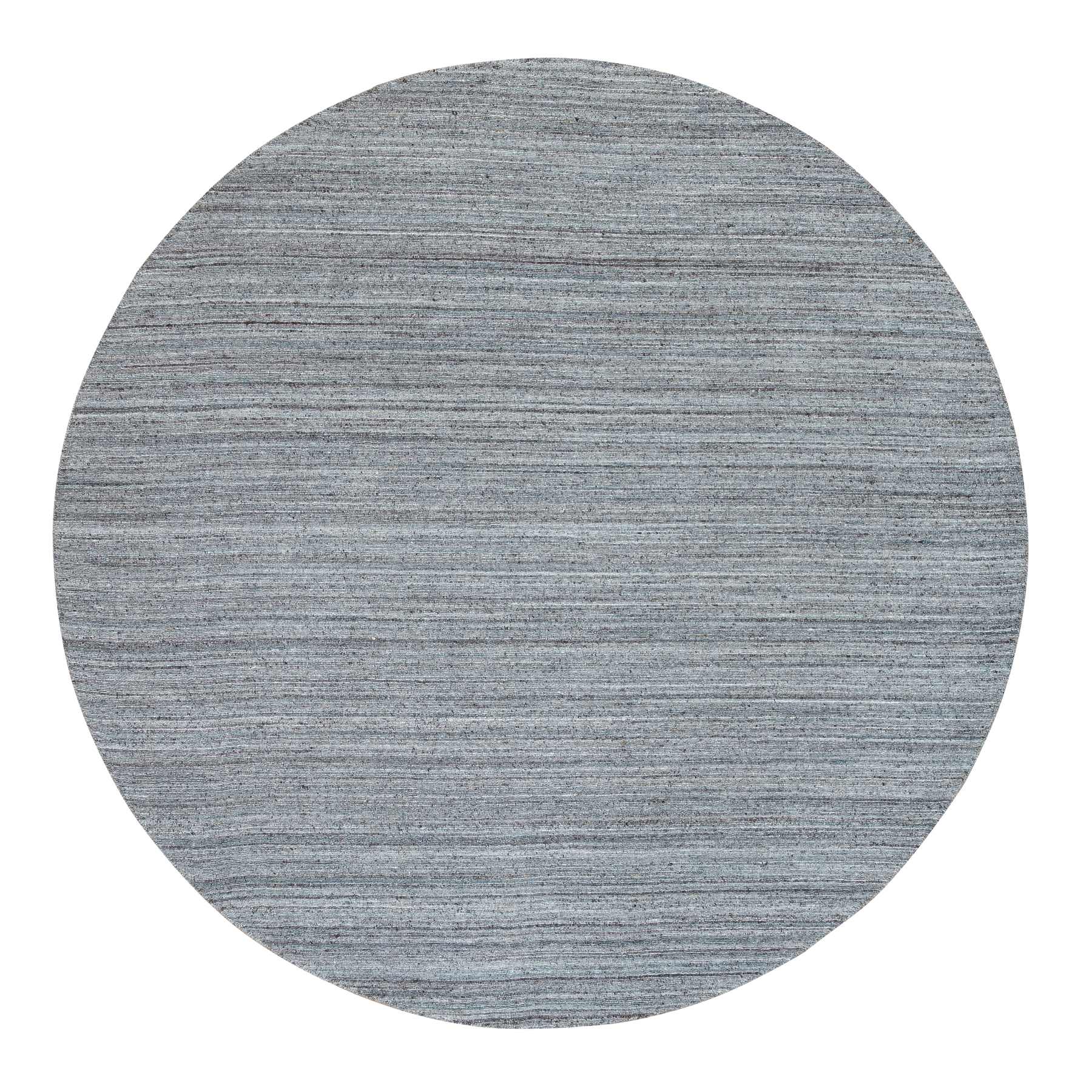 8'x8' Arsenic Gray, Modern Striae Design, All Wool Hand Loomed, Soft Pile, Round Oriental Rug FWR393312