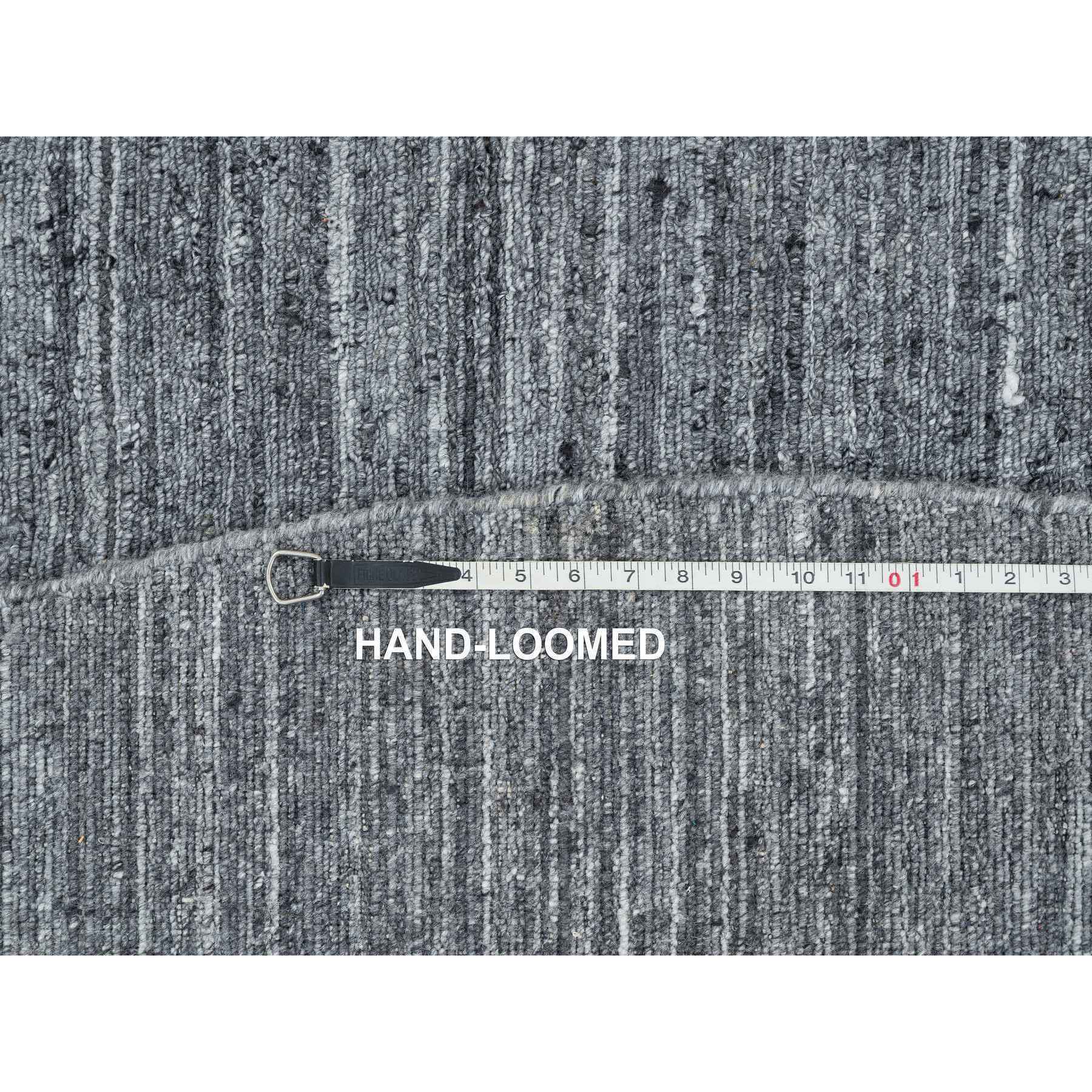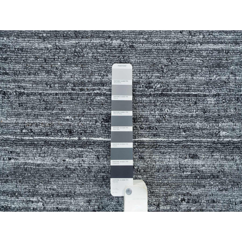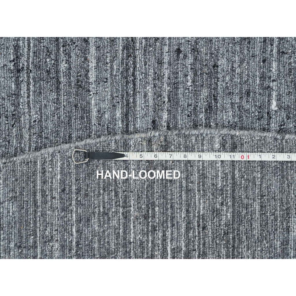 8'x8' Arsenic Gray, Modern Striae Design Soft Pile, All Wool Hand Loomed, Round Oriental Rug FWR392520