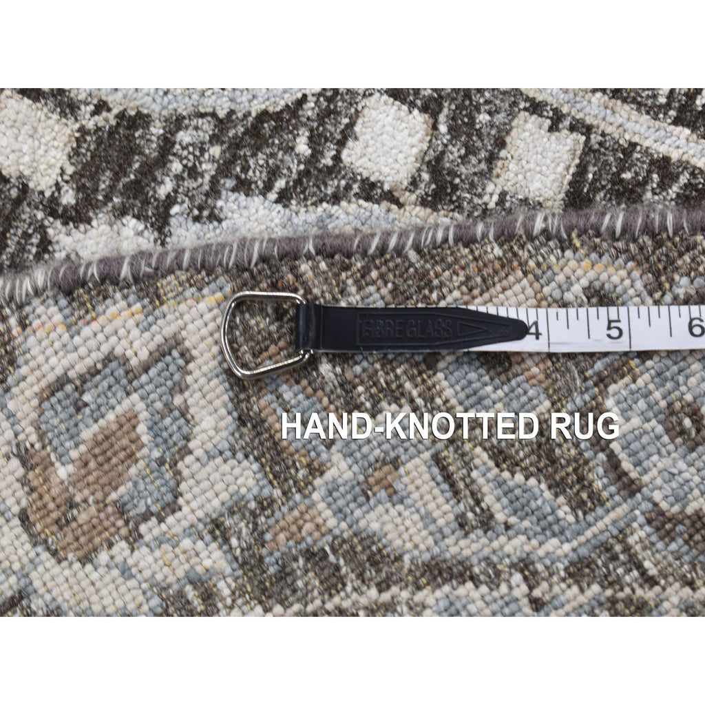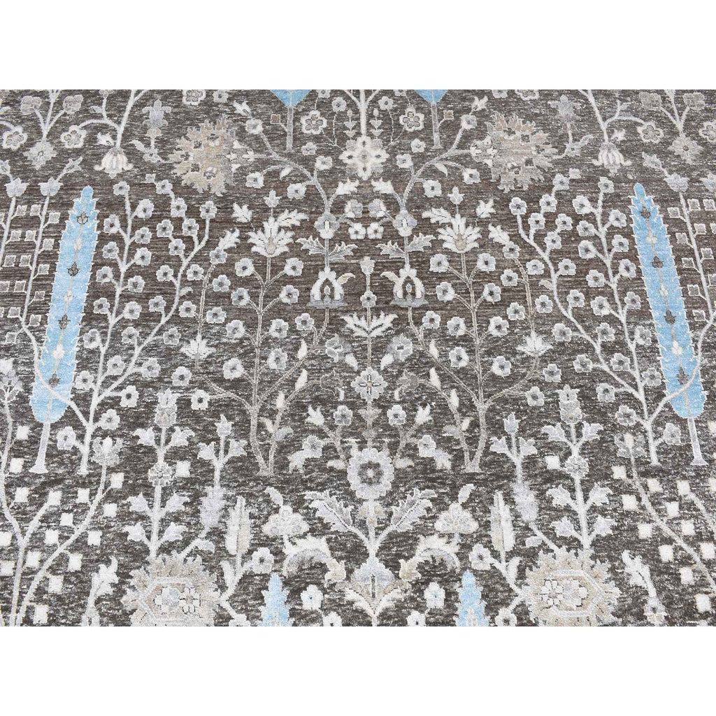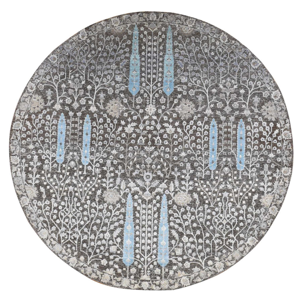 8'x8' Bistre Brown, Hand Knotted, Cypress Tree Design, Silk With Textured Wool, Round Oriental Rug FWR526464