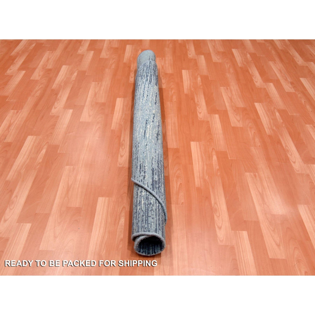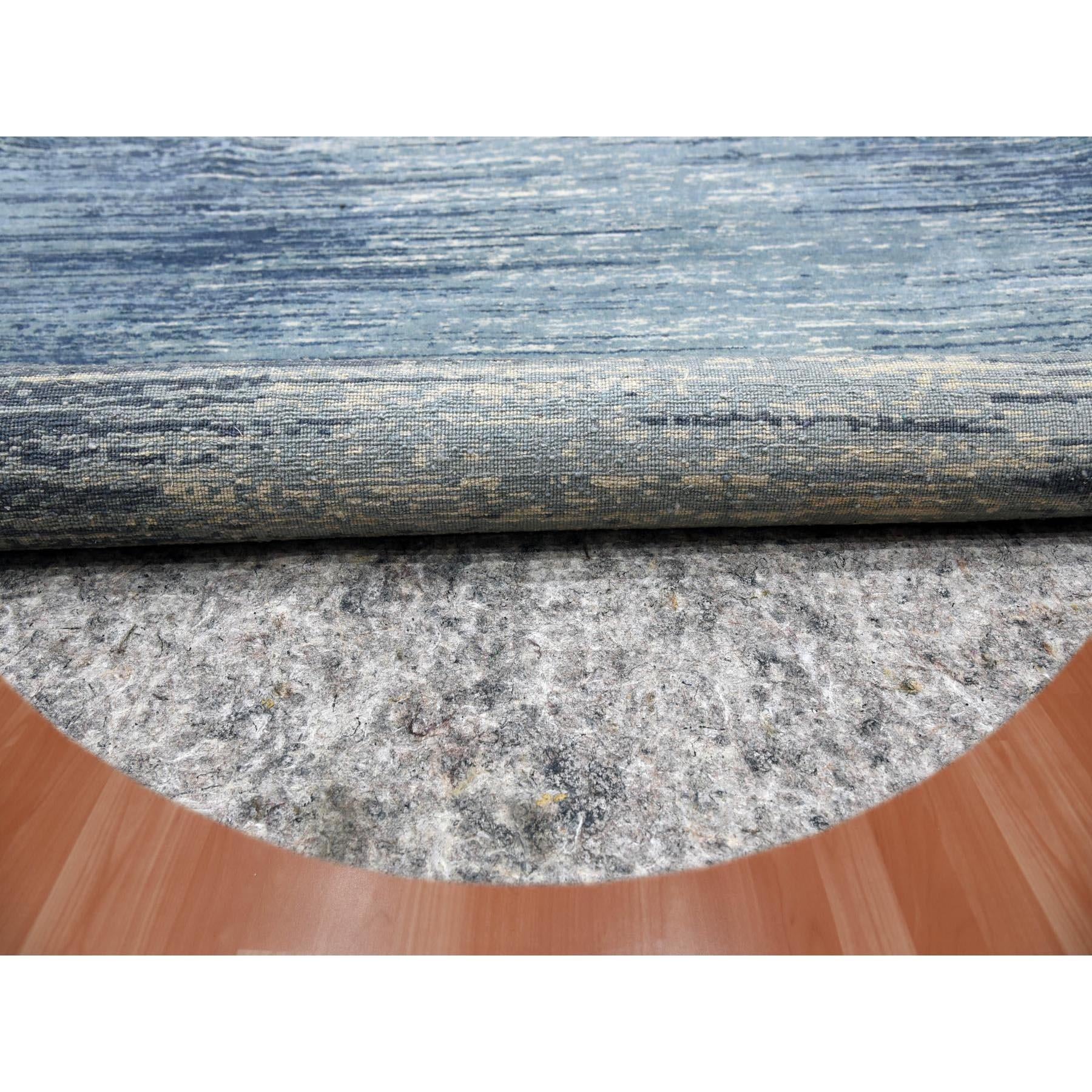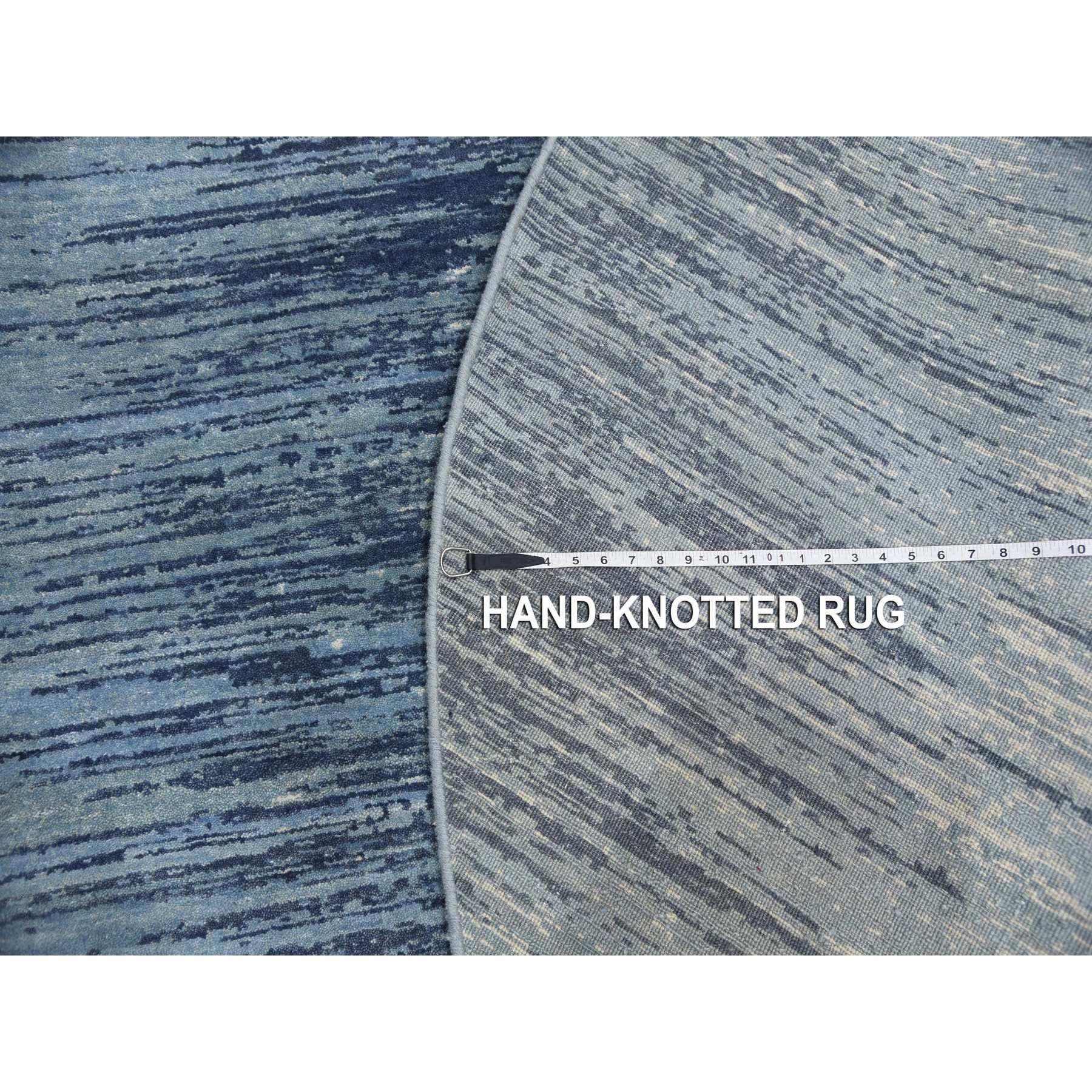 8'x8' Blue With Touches Of Ivory Hand Knotted Horizontal Ombre Design Pure Wool Round Oriental Rug FWR355386