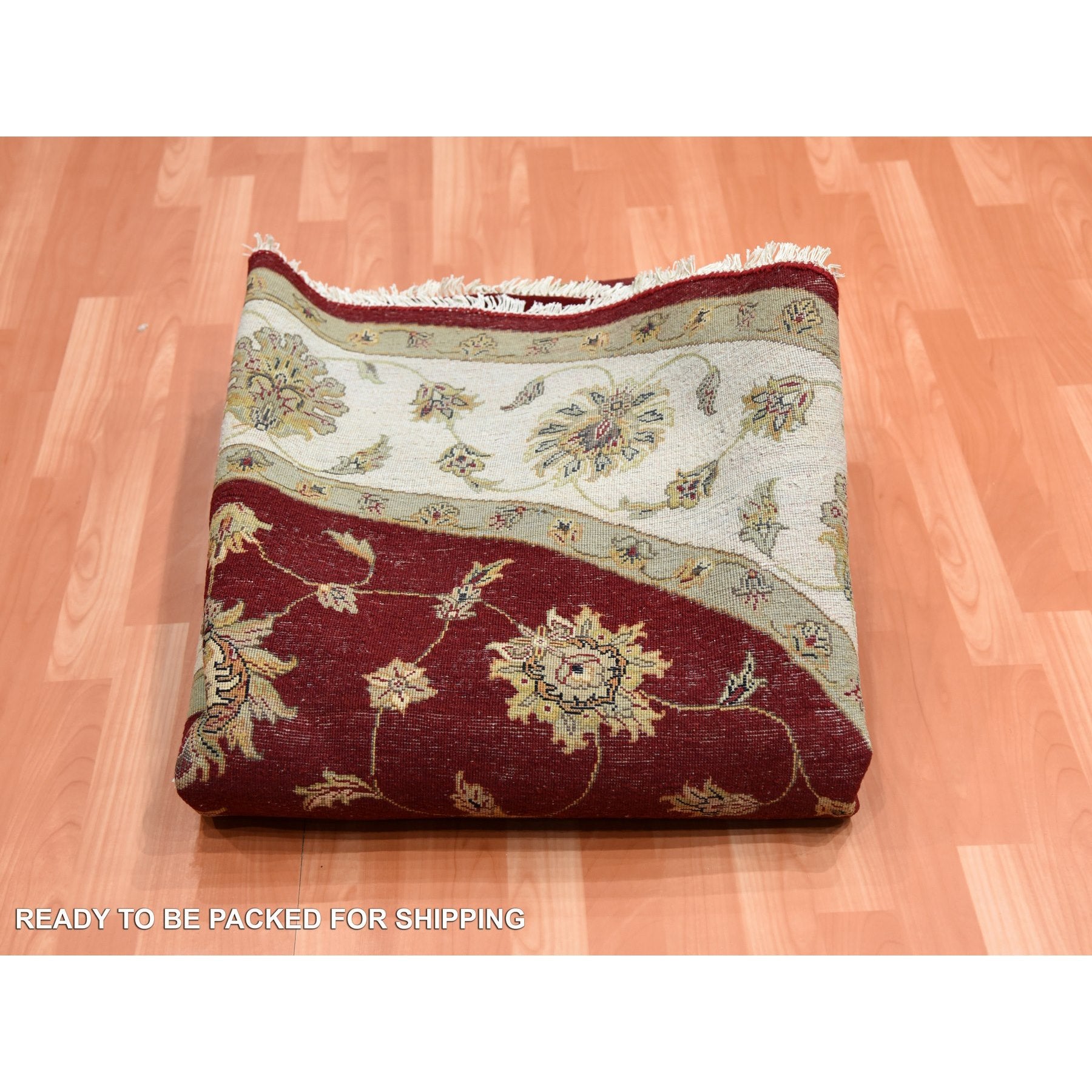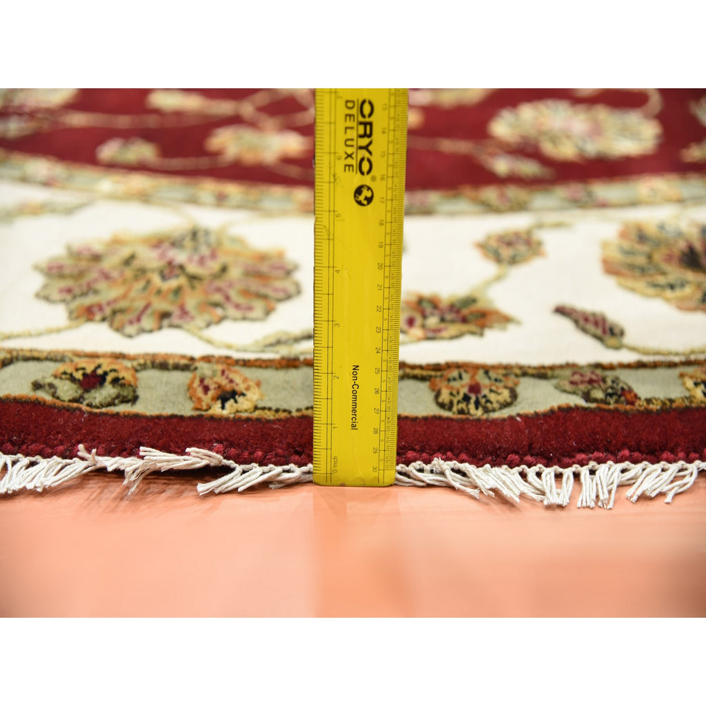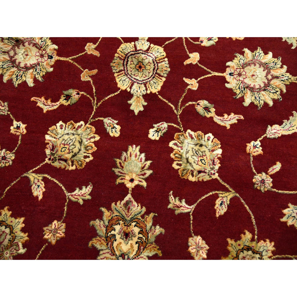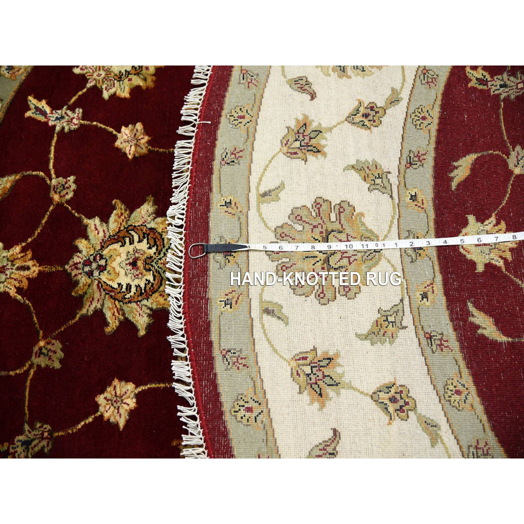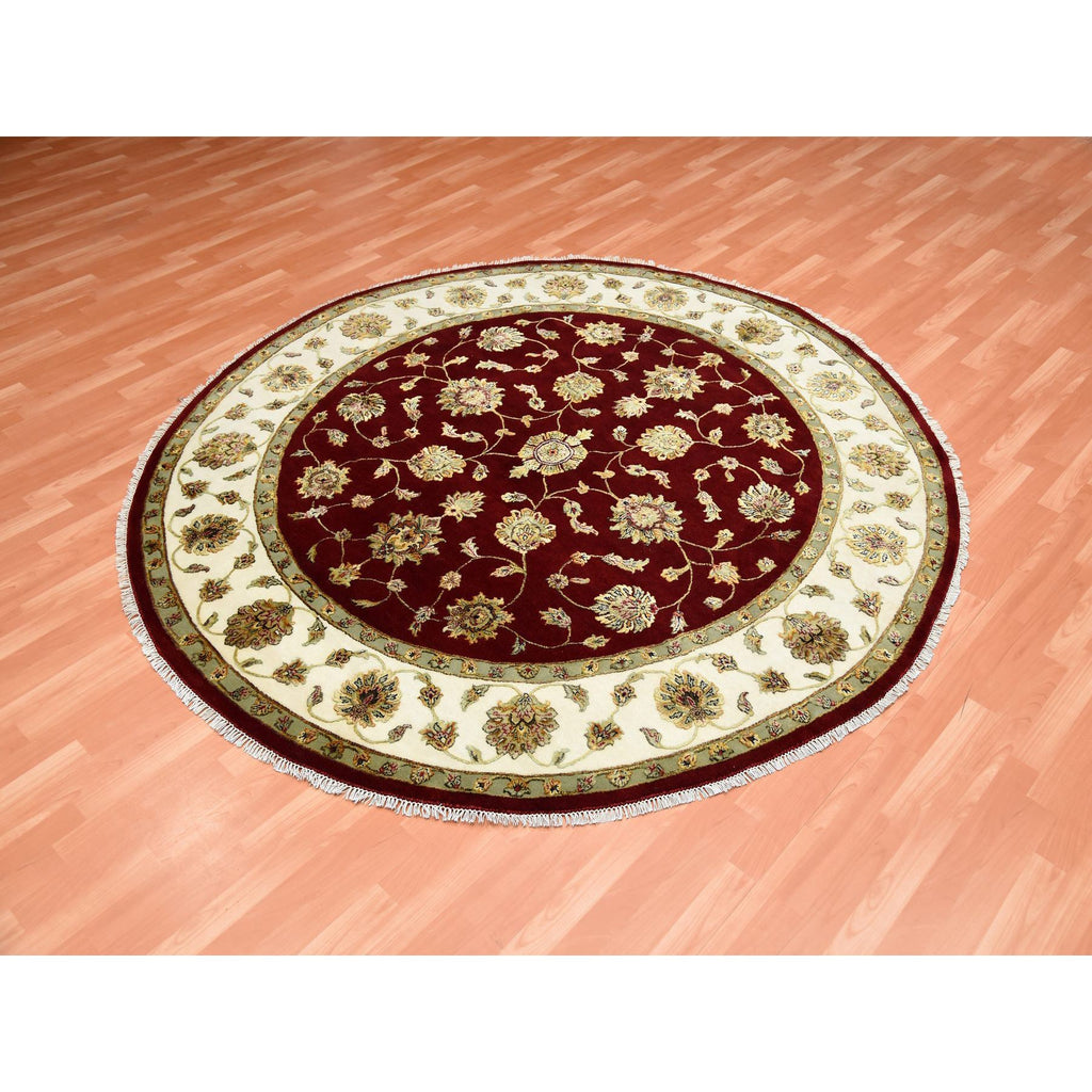 8'x8' Burgundy Red, Wool And Silk Hand Knotted, Rajasthan All Over Leaf Design Thick And Plush, Round Oriental Rug FWR451638