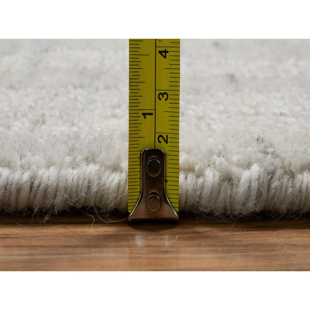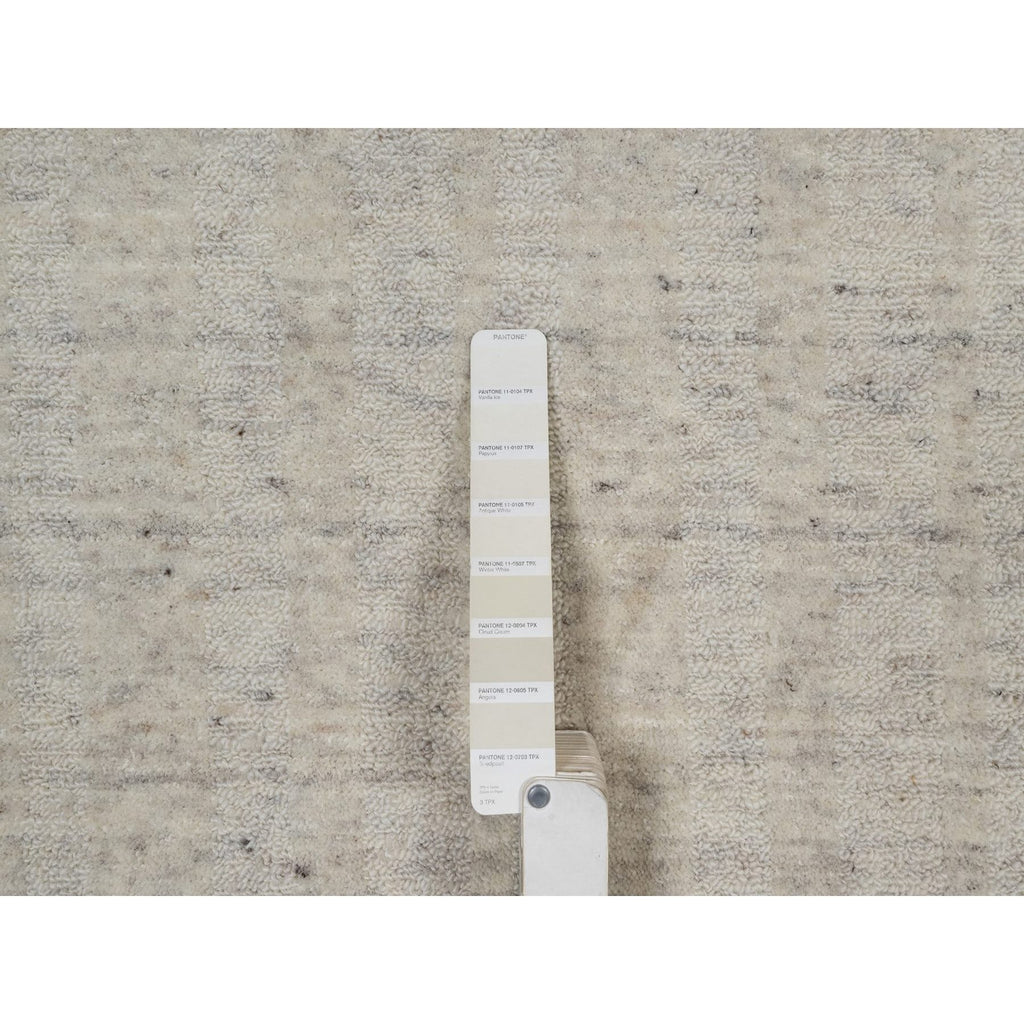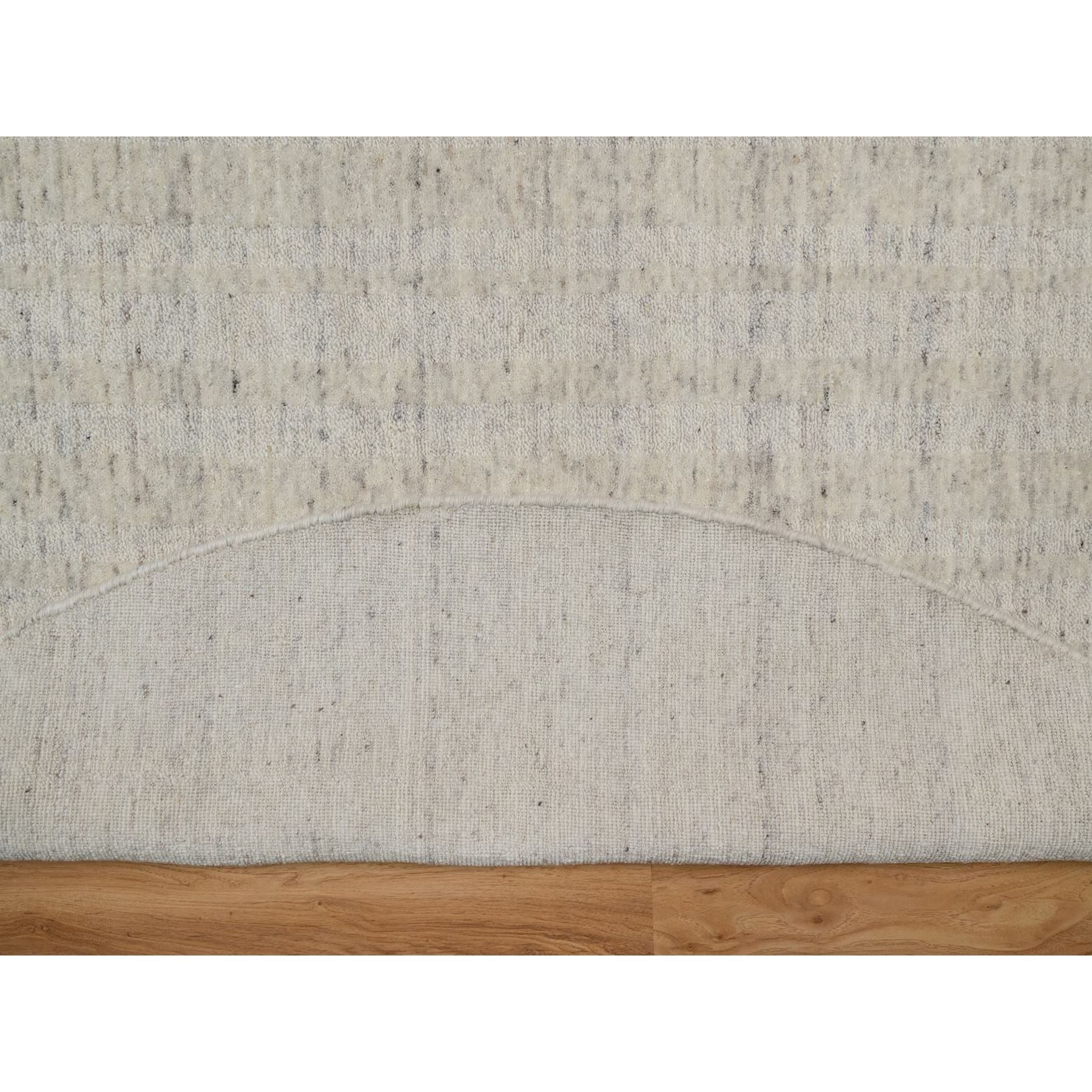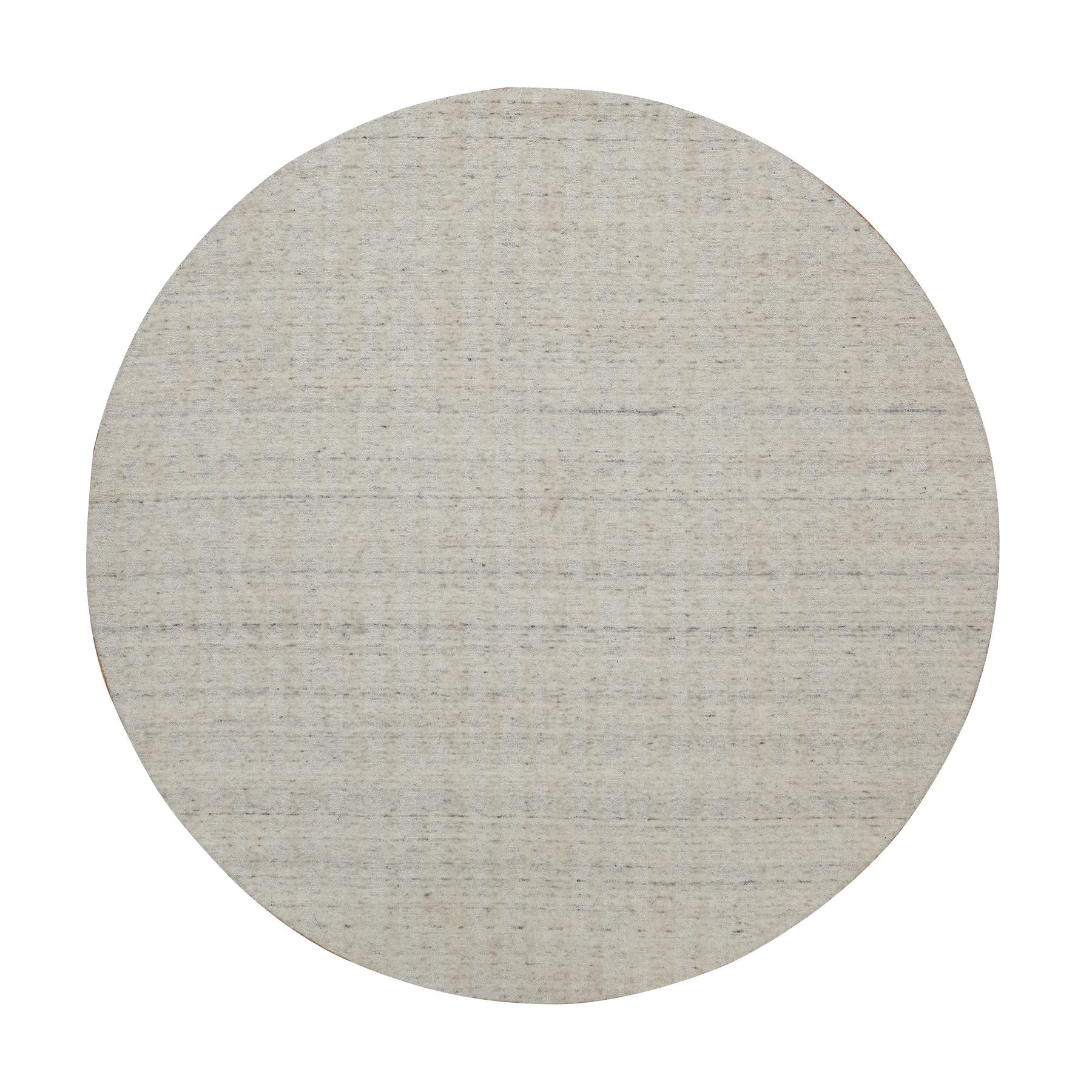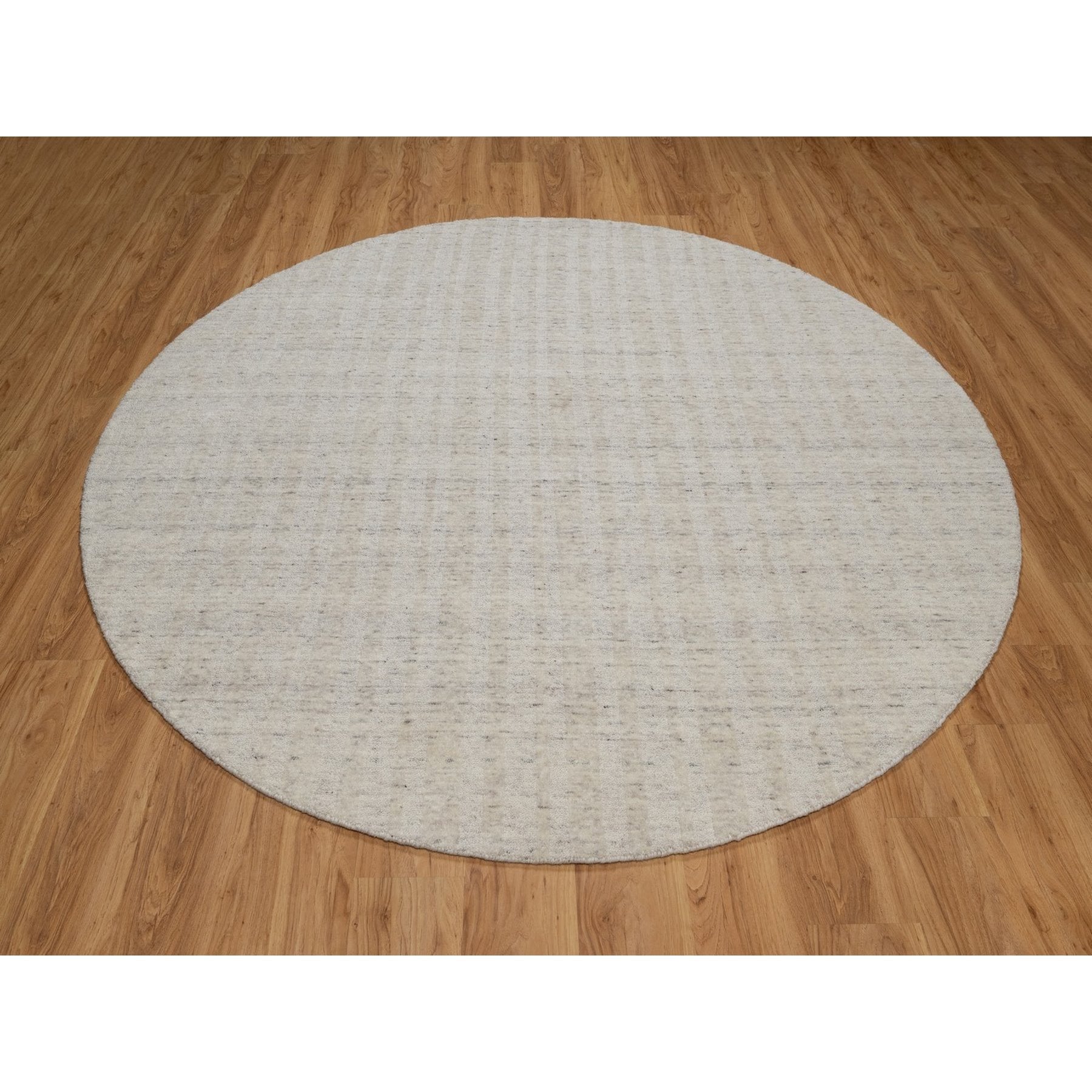 8'x8' Chiffon White, Undyed Natural Wool, Vertical Stripes Design With Salt And Pepper Effect, Hand Loomed, Round, Oriental Rug FWR550080