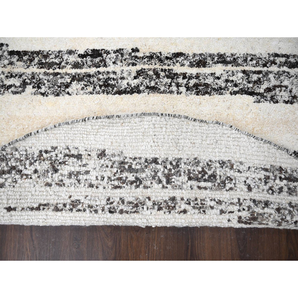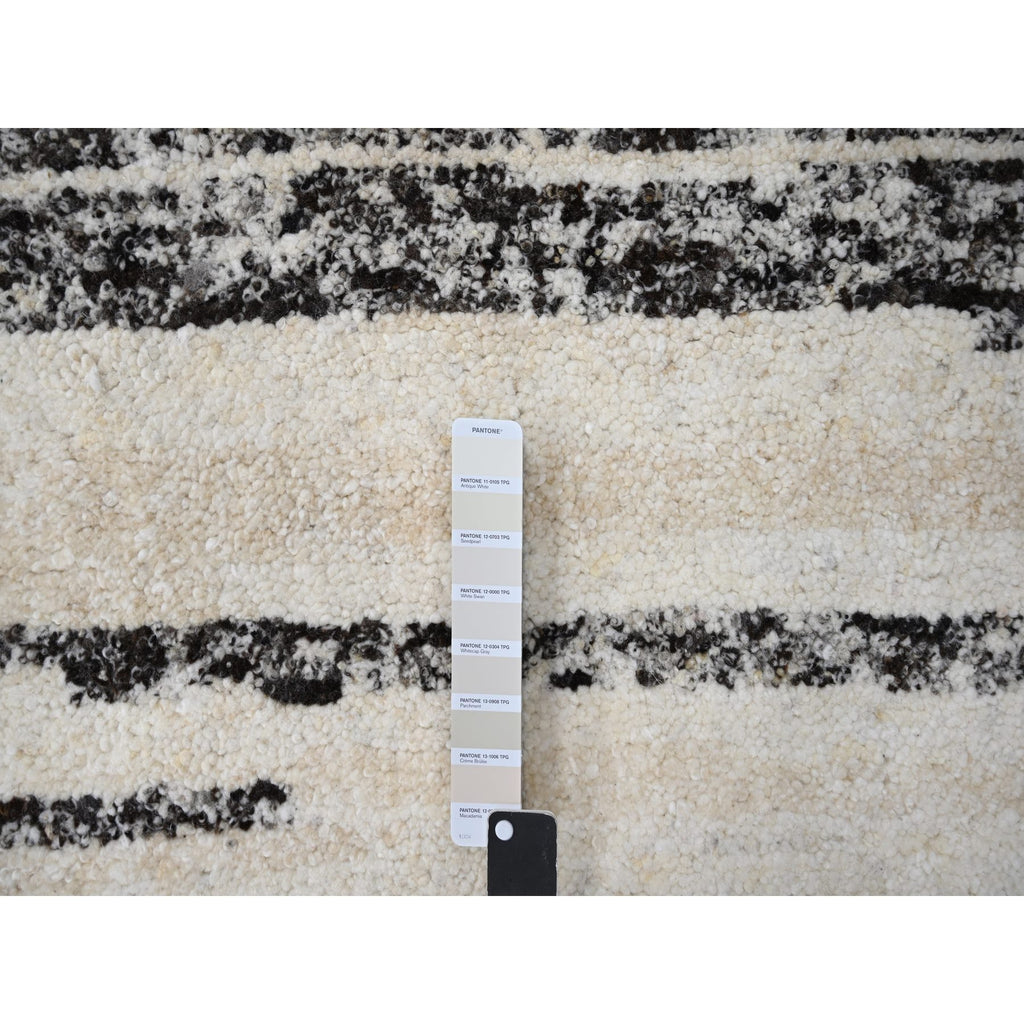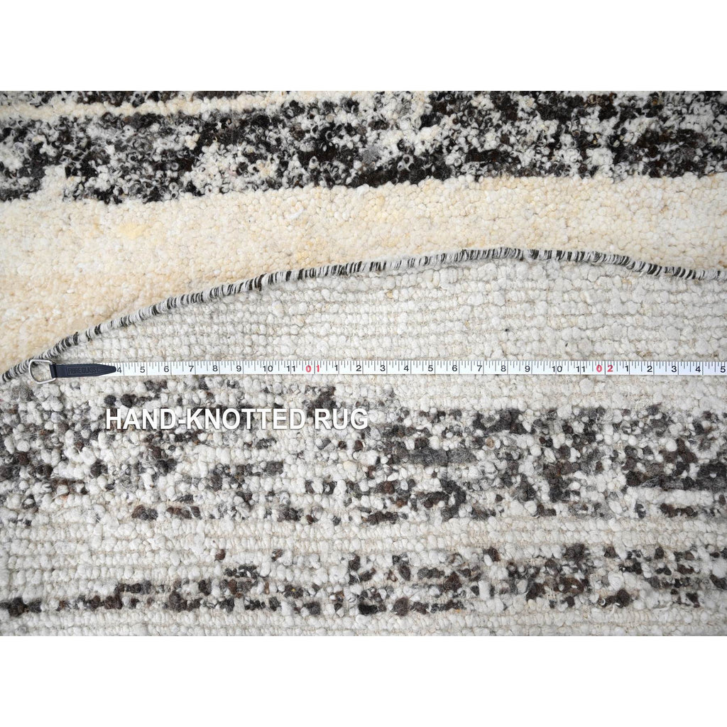 8'x8' Dark Brown And Ivory, Striae Design, Thick And Plush, Organic Undyed Wool Hand Knotted, Round Oriental Rug FWR505290