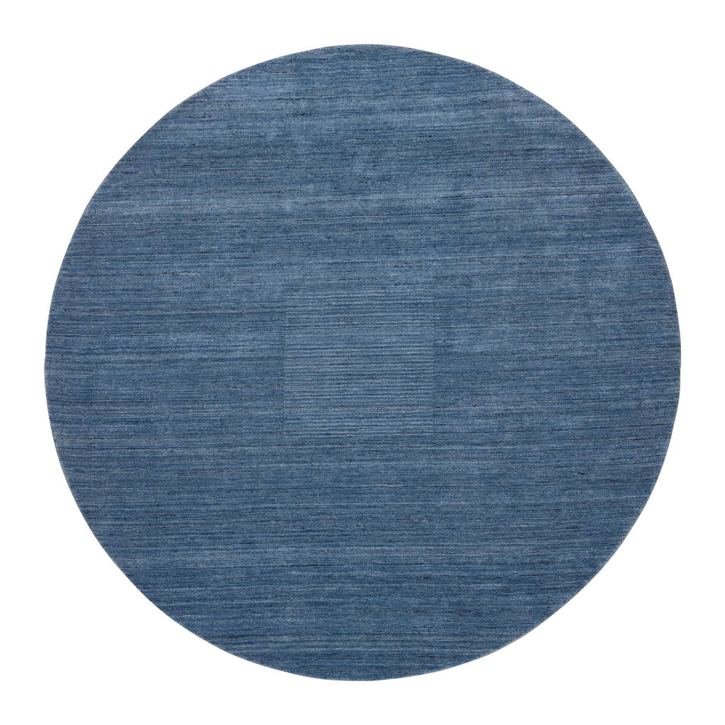 8'x8' Denim Blue, Tone On Tone, Modern Design, Soft And Plush Wool Hand Loomed, Round Oriental Rug FWR387462