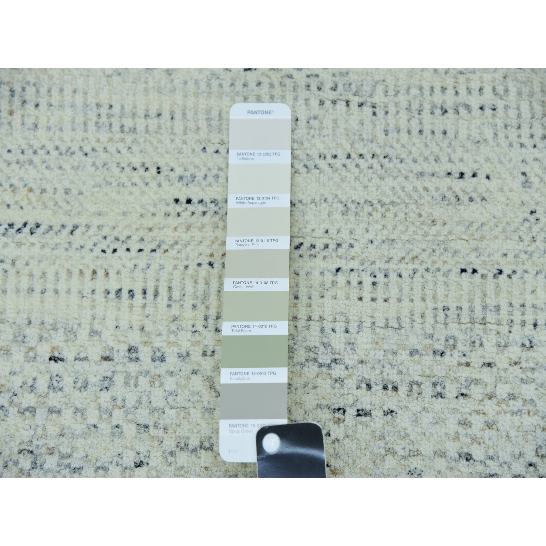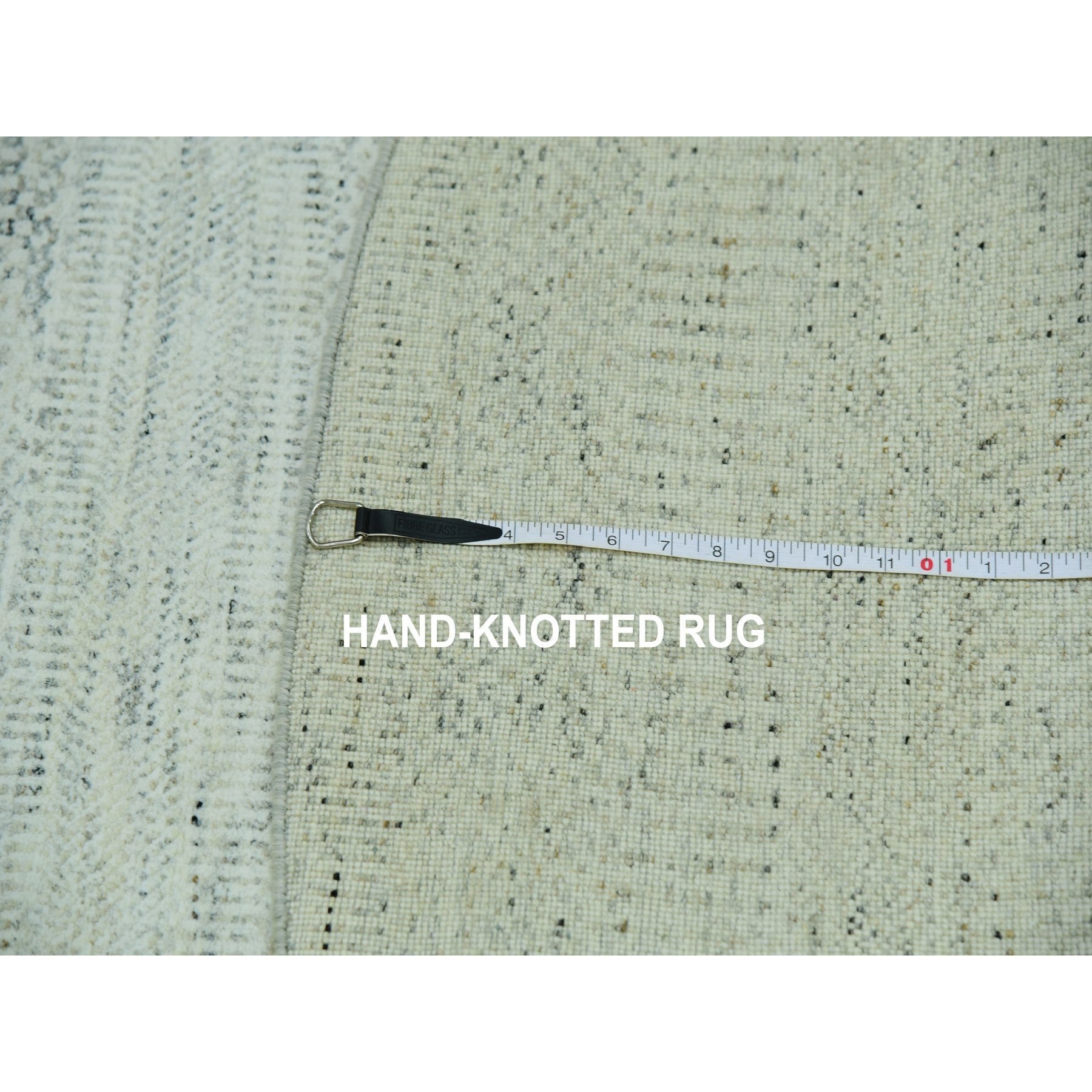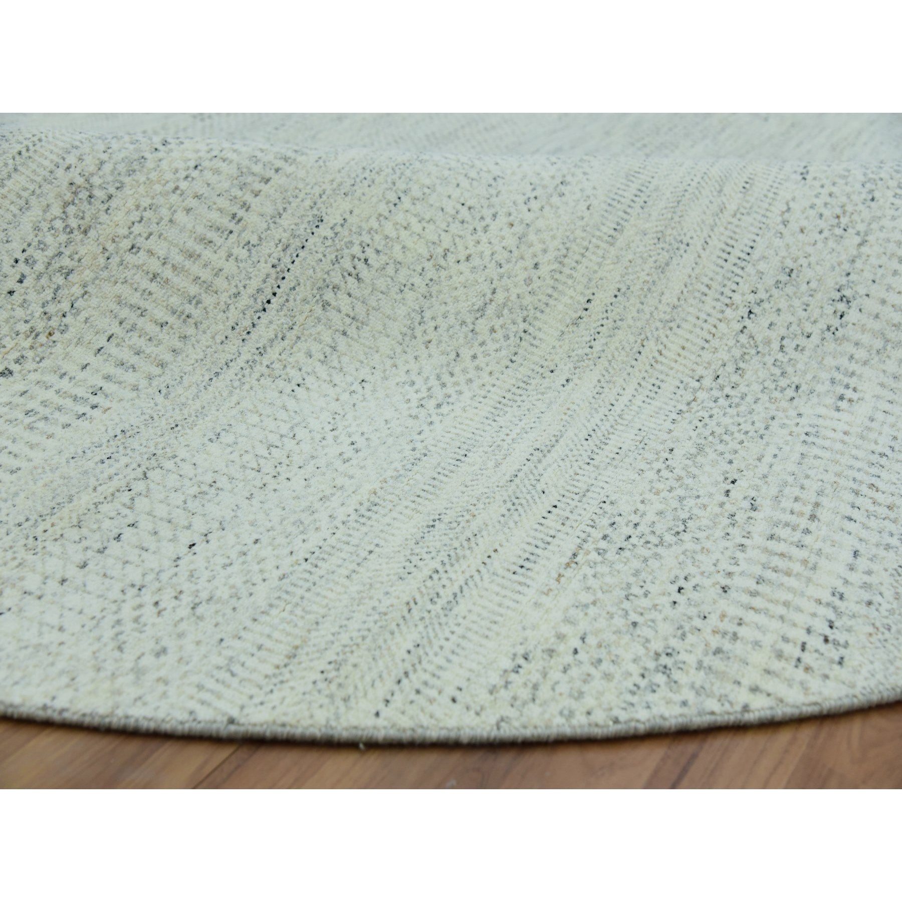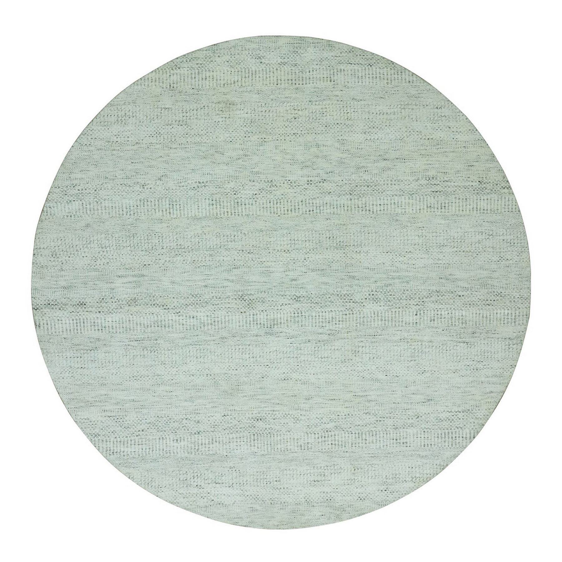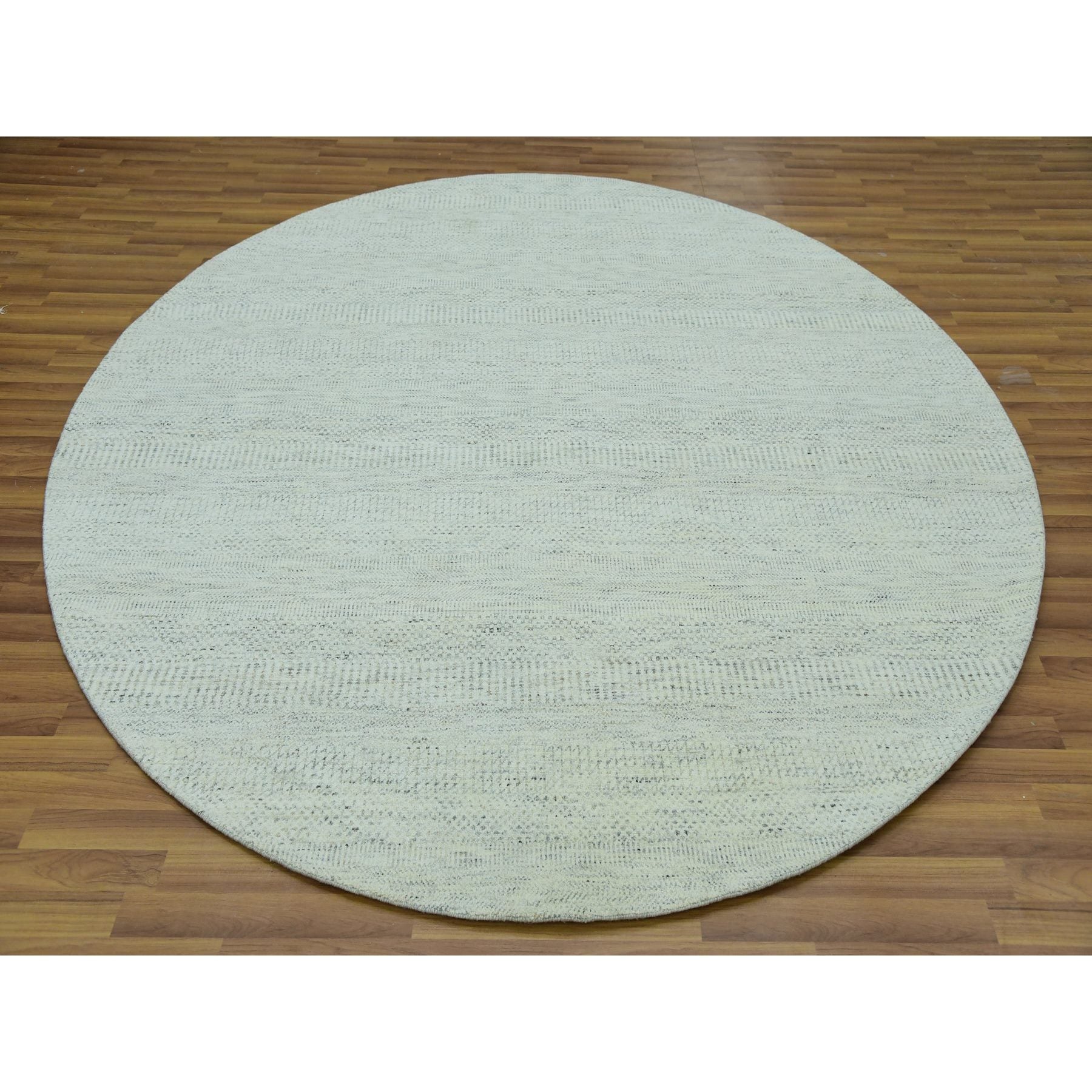 8'x8' Earl Gray, Hand Knotted, Shabby Chic, Modern 100% Undyed Wool With Grass Design, Tone On Tone, Oriental Round Rug FWR477930