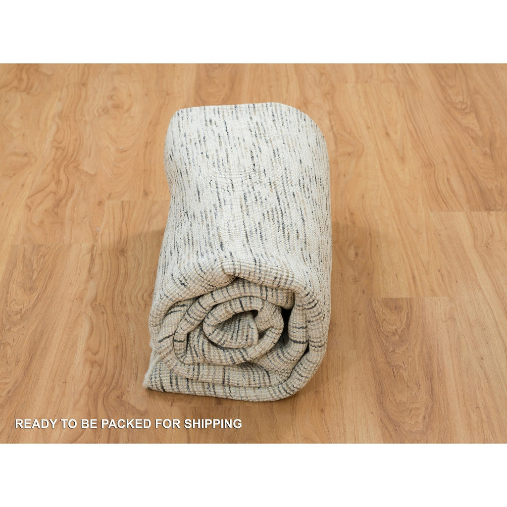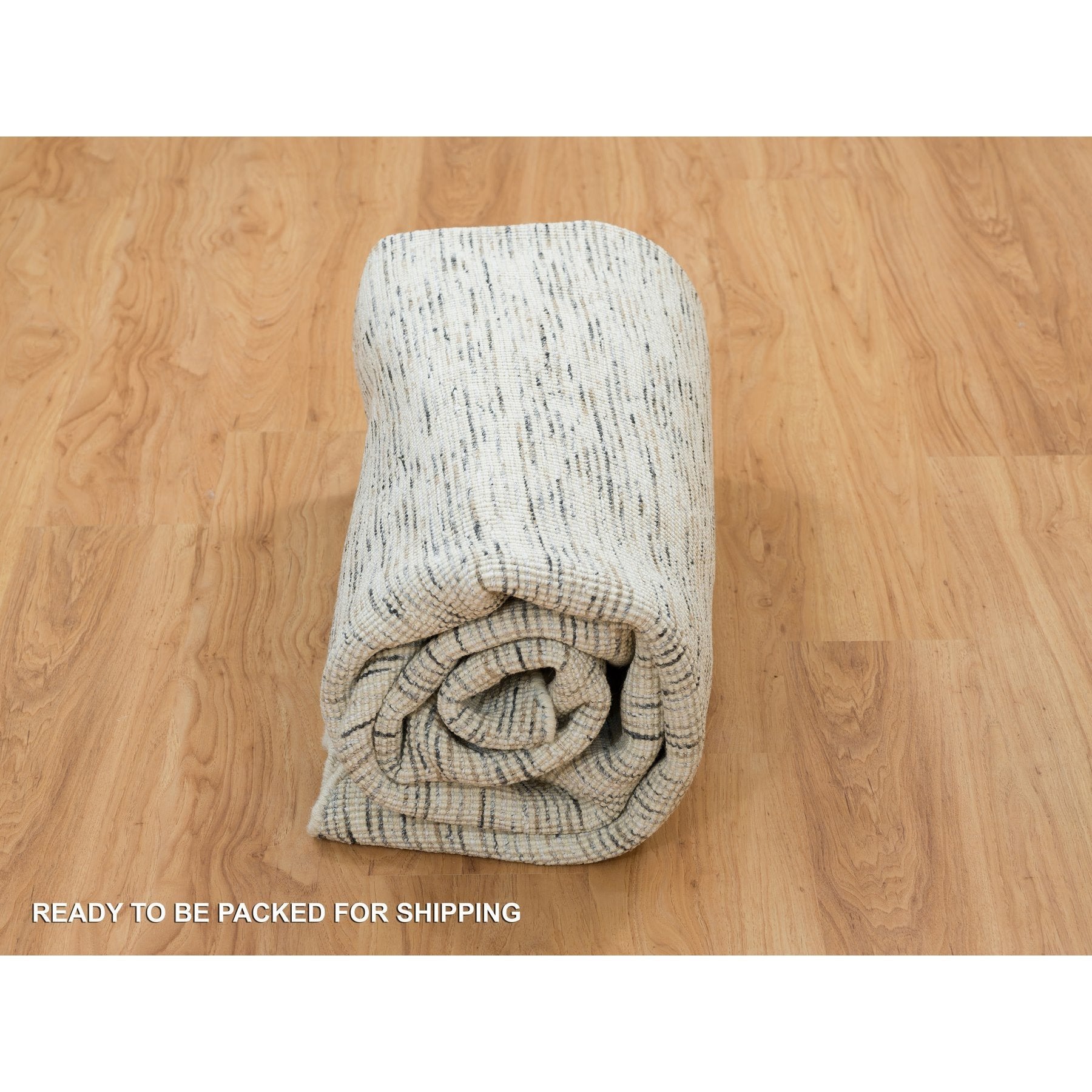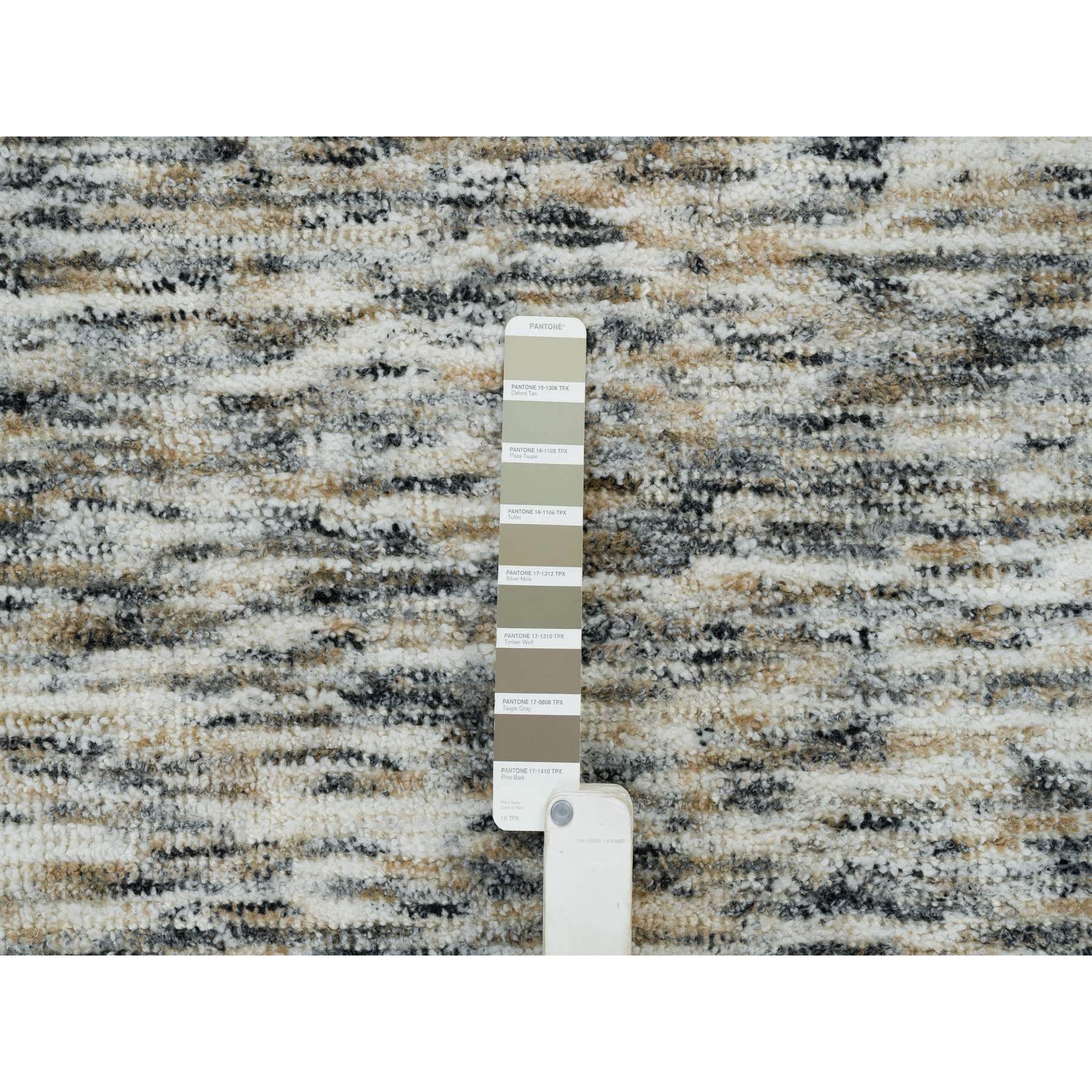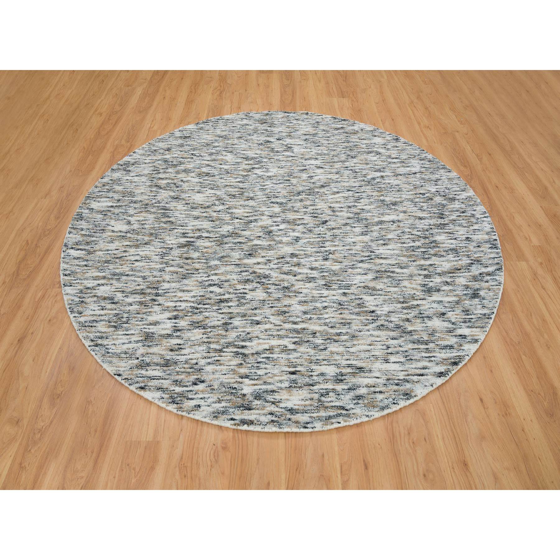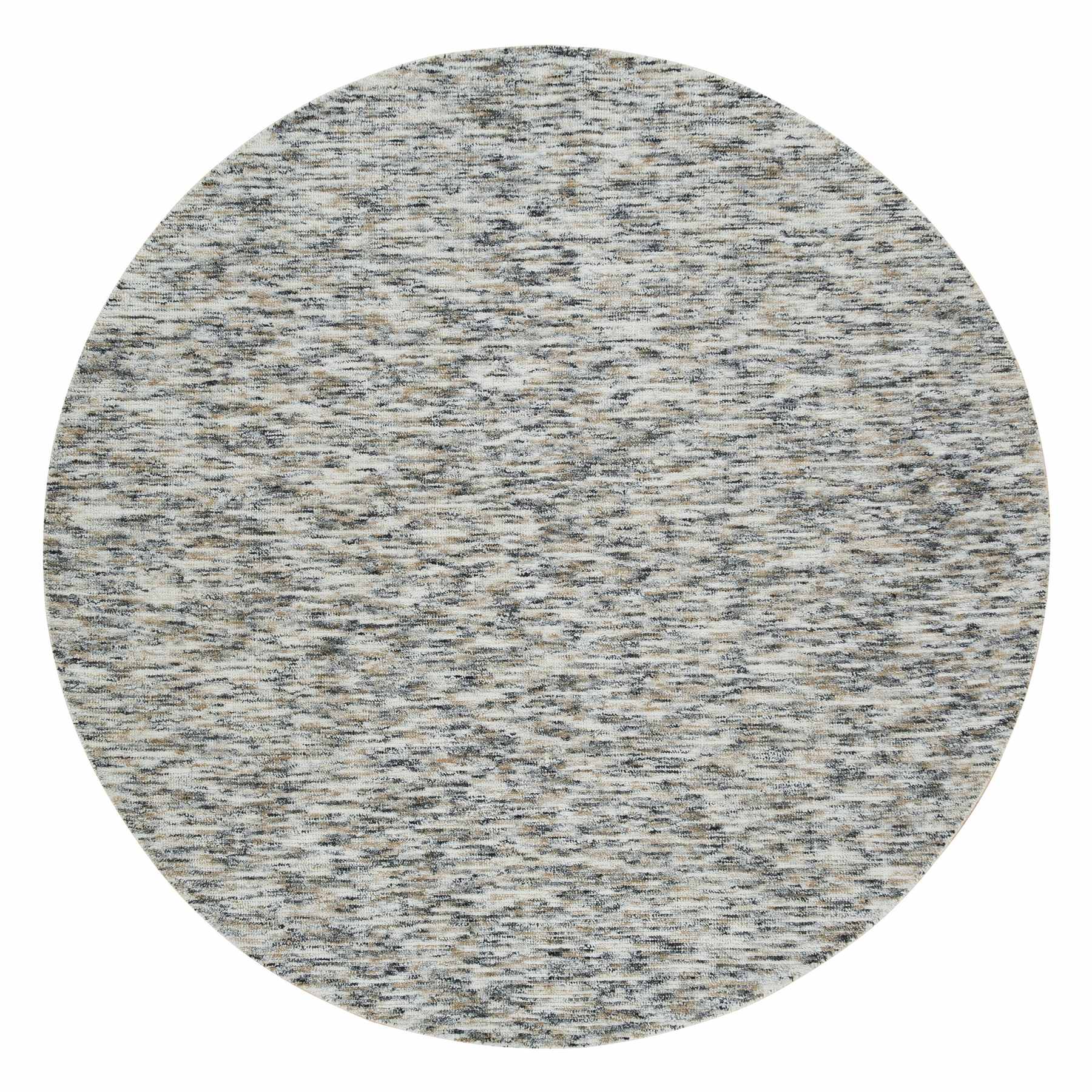 8'x8' Earth Tone Colors, Pure Wool, Hand Loomed, Modern Striae Design, Soft To The Touch Round Oriental Rug FWR391356
