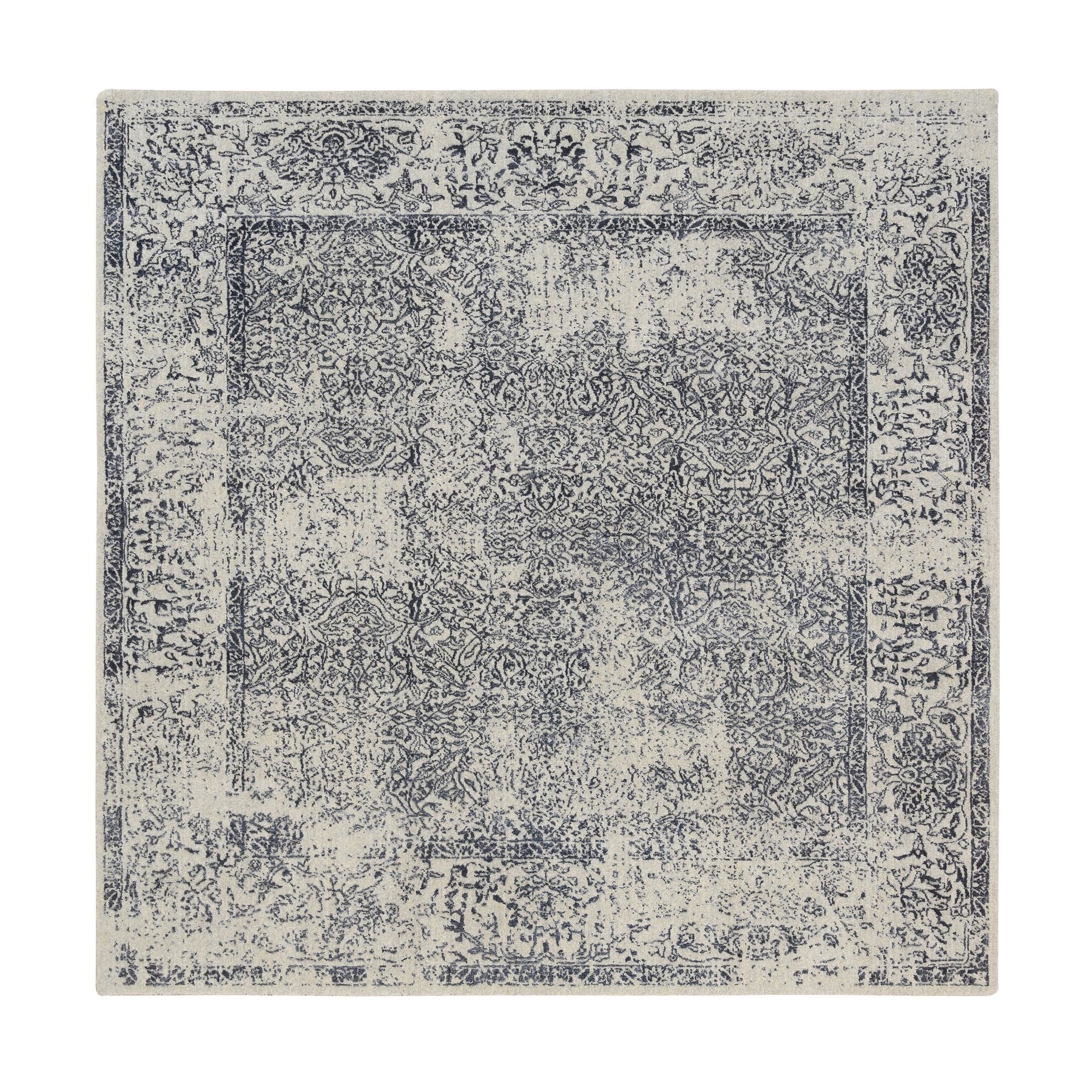 8'x8' Fine Jacquard With Erased Design Wool And Plant Based Silk Hand Loomed Light Gray Oriental Square Rug FWR379542