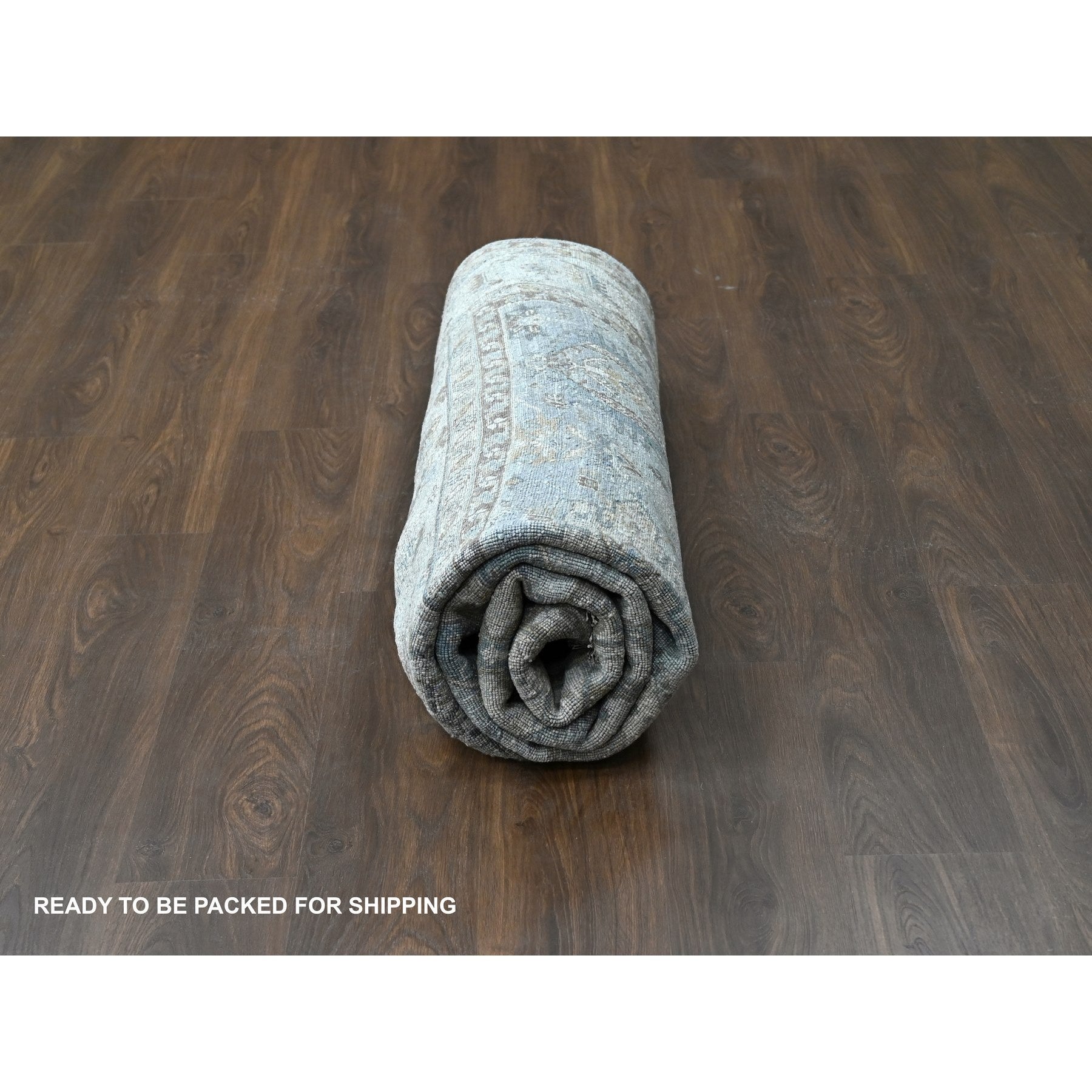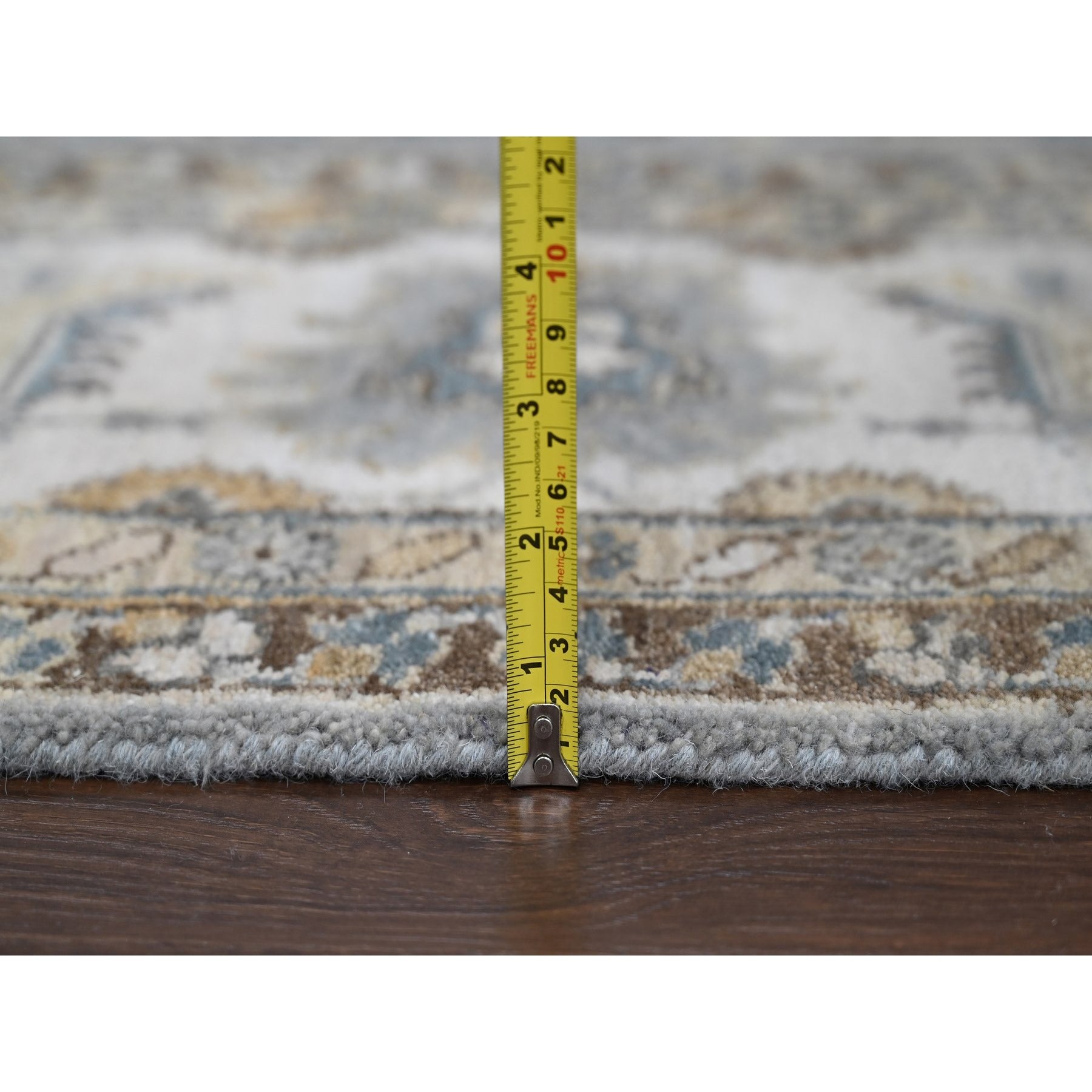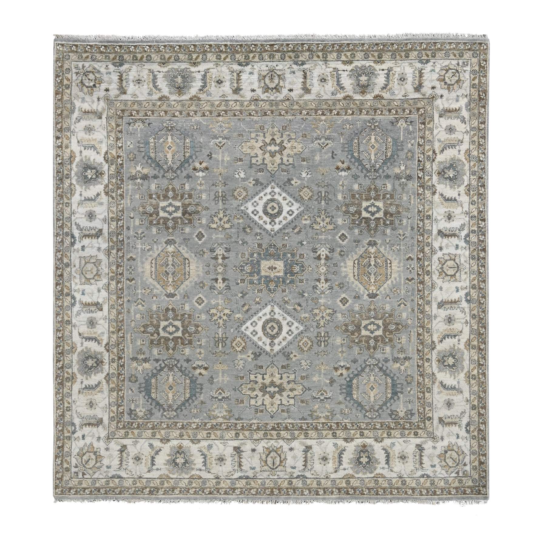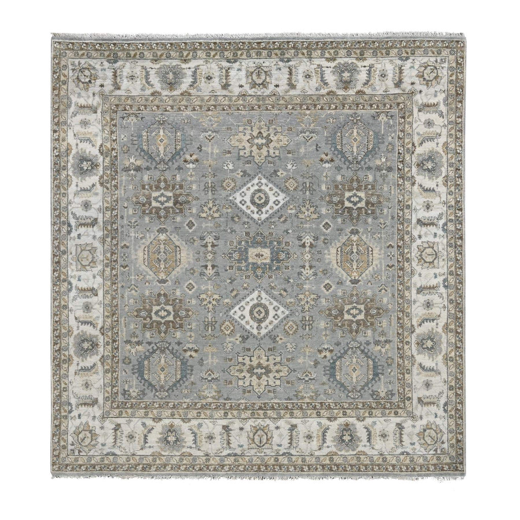 8'x8' Gray And Ivory, Karajeh Design With Geometric Medallion, Natural Wool, Square Oriental Rug FWR505230