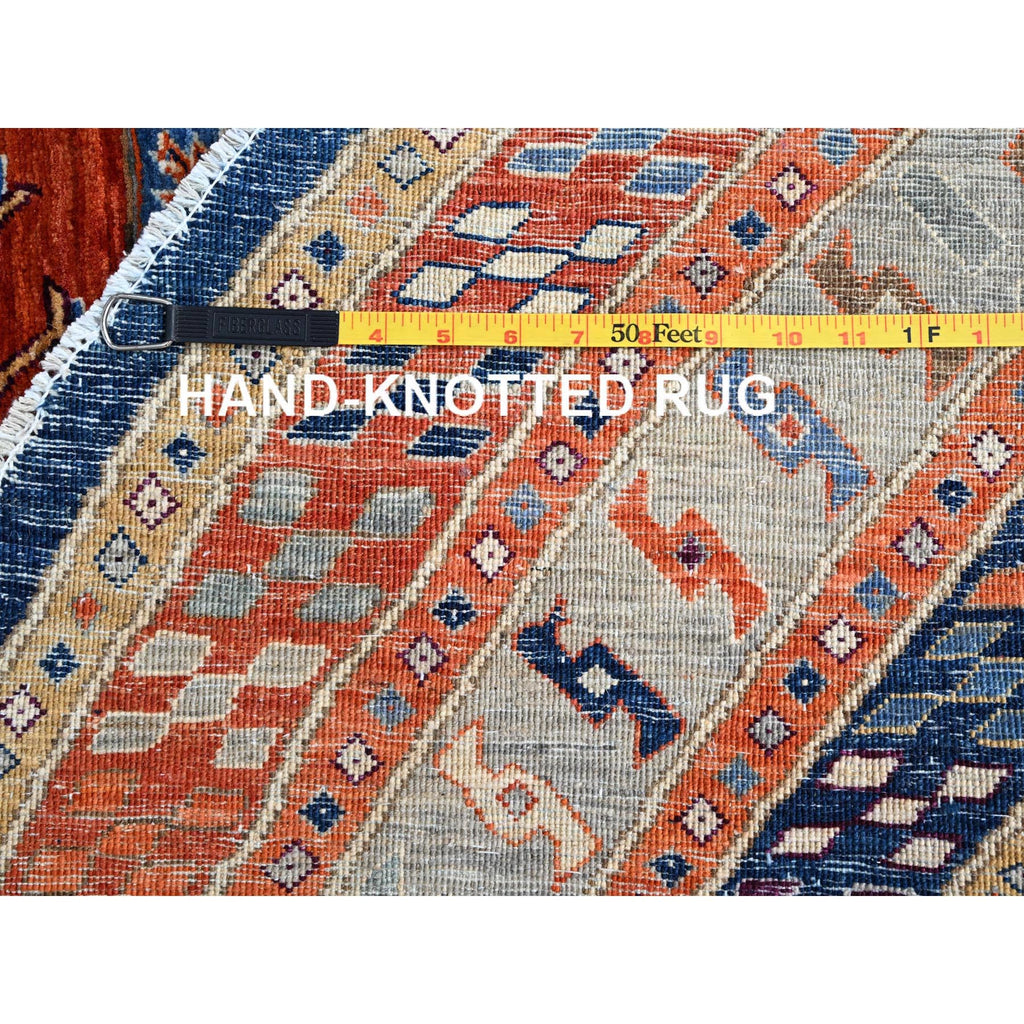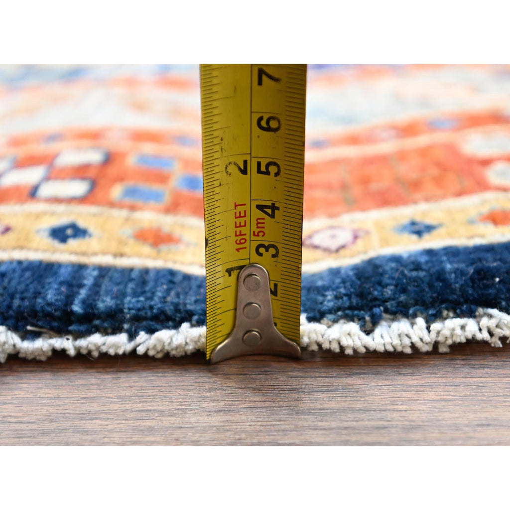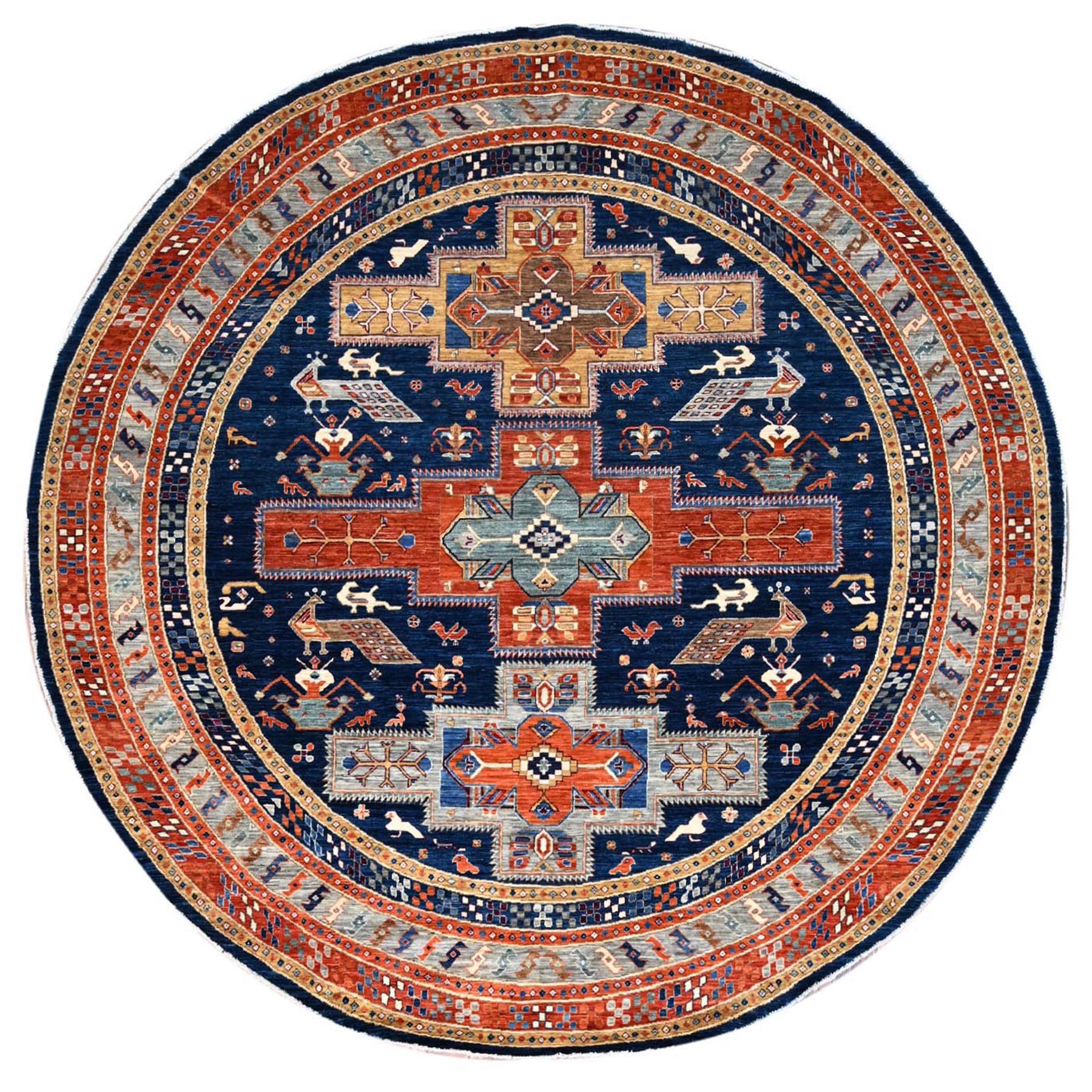 8'x8' Indigo Batik Blue, Soft And Velvety Wool, Natural Dyes, Armenian Inspired Caucasian Design, 200 Kpsi, Hand Knotted Round Oriental Rug FWR518466