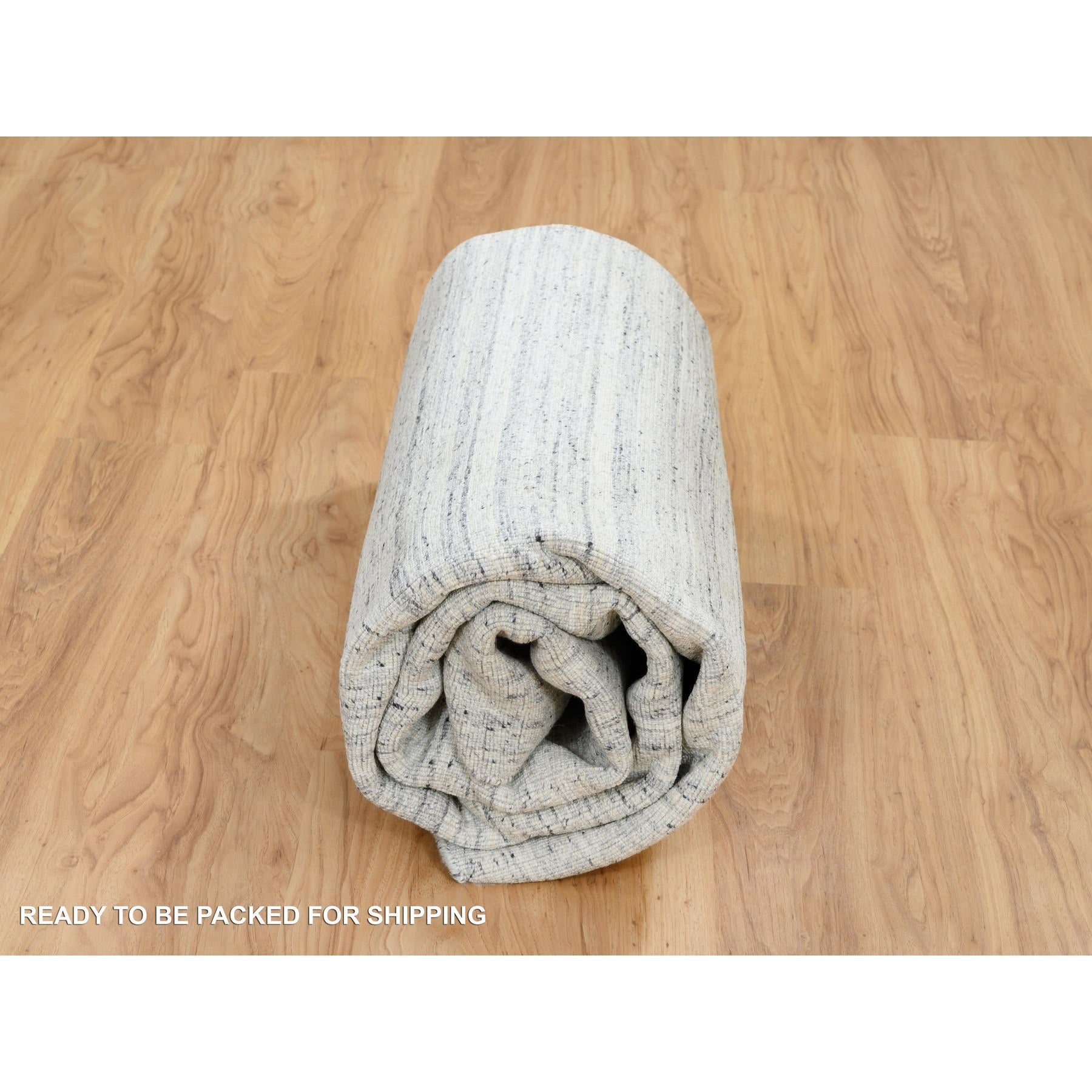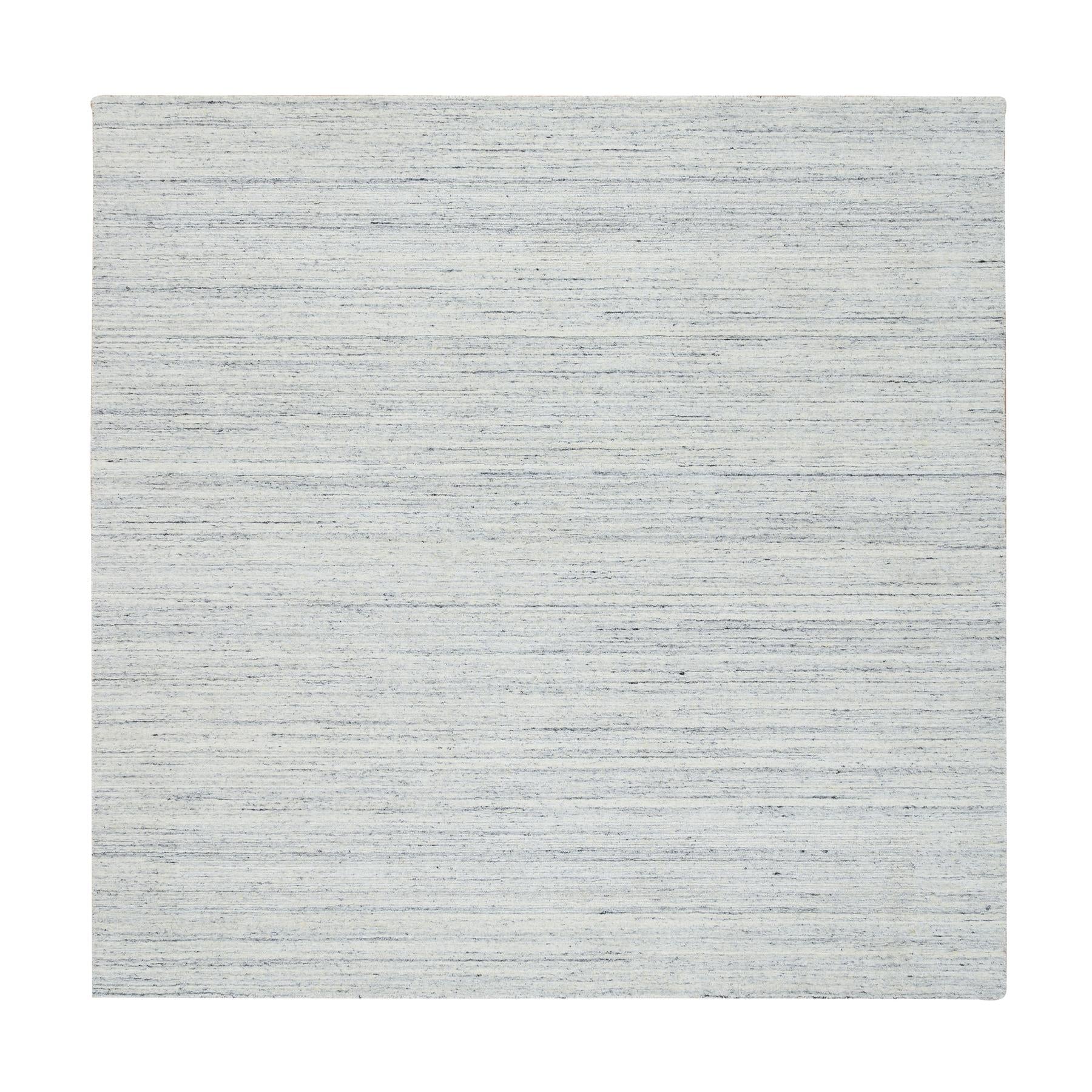 8'x8' Ivory, Hand Loomed Plain Modern Striae Design, Soft Pile Natural Wool, Square Oriental Rug FWR388626