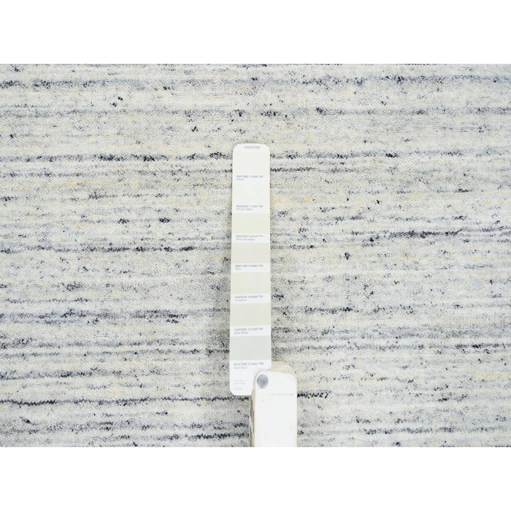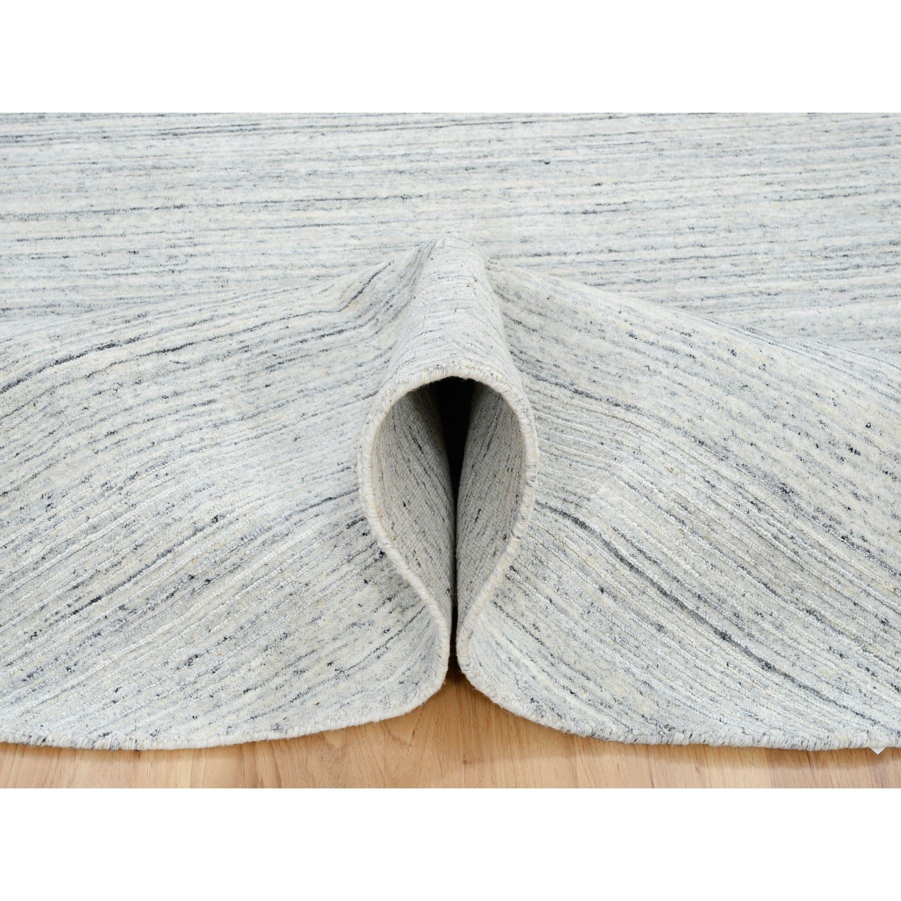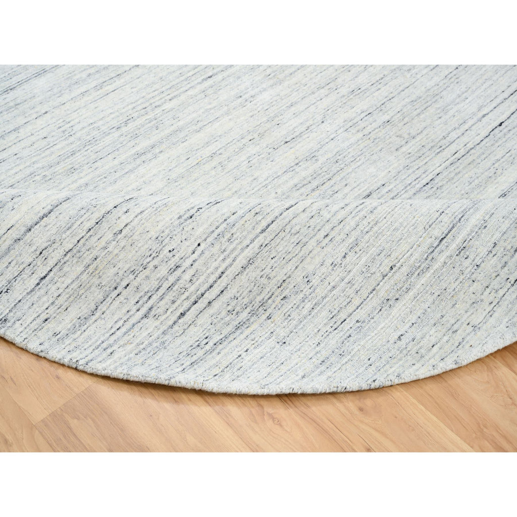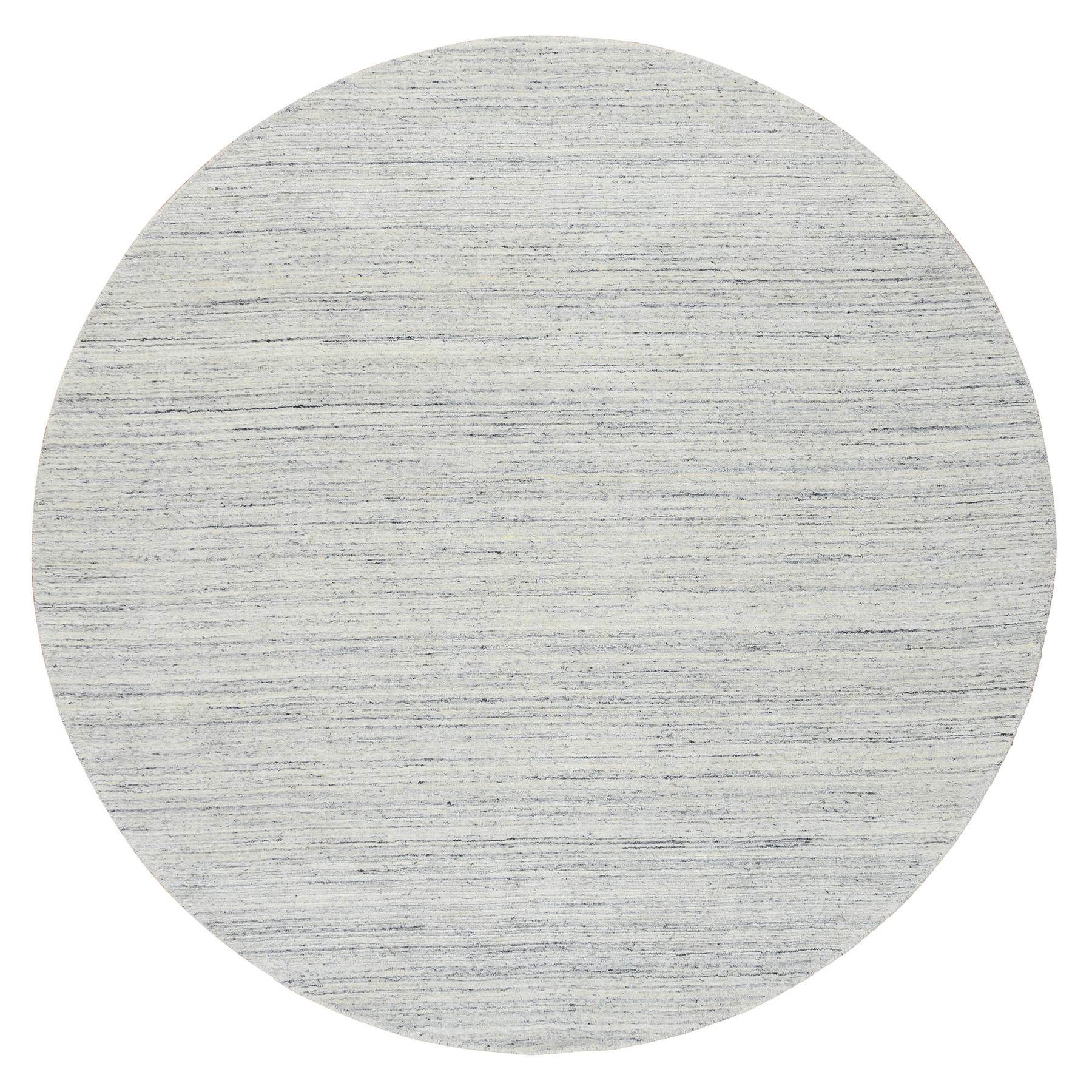 8'x8' Ivory, Plain Modern Striae Design Soft Pile, Extra Soft Wool Hand Loomed, Round Oriental Rug FWR388764