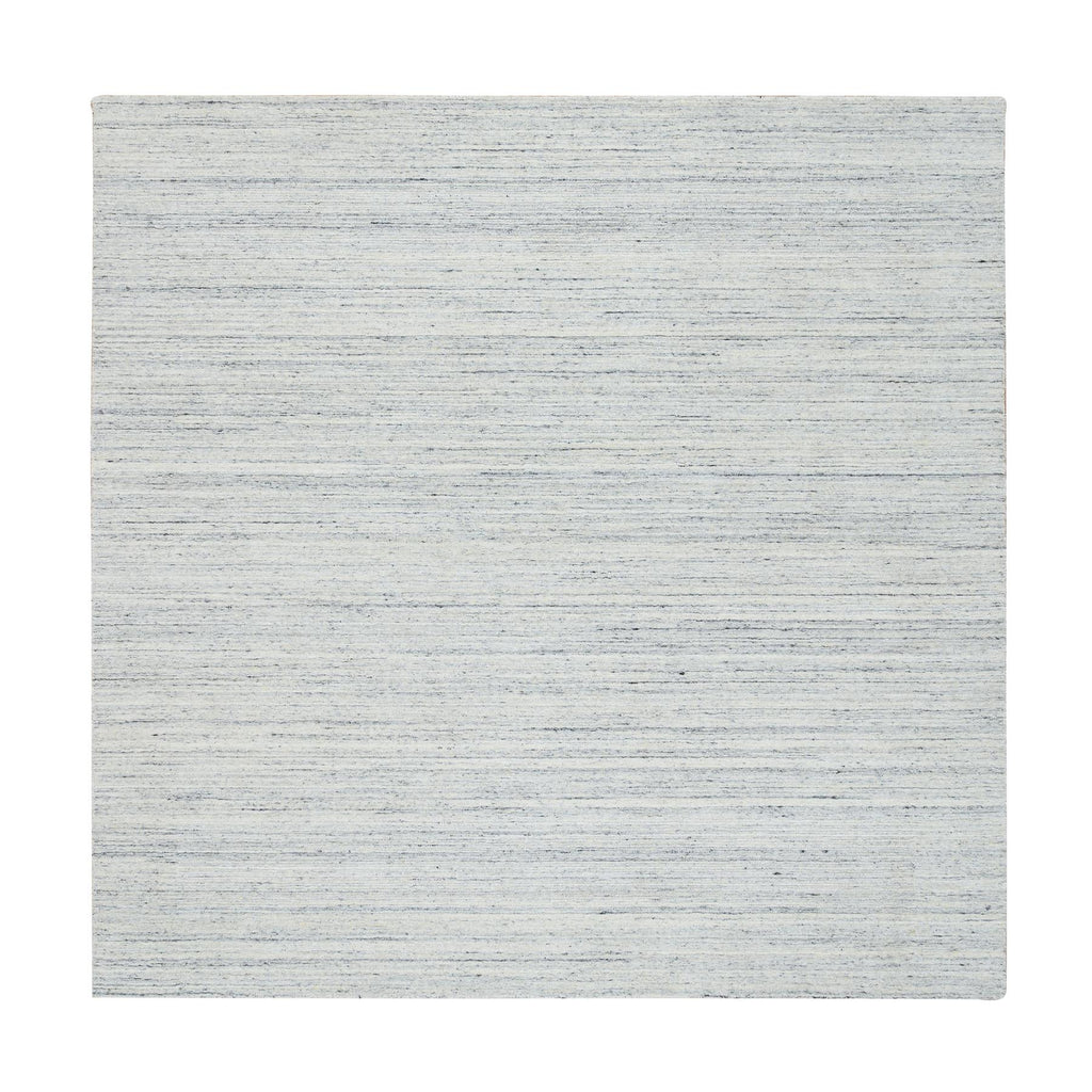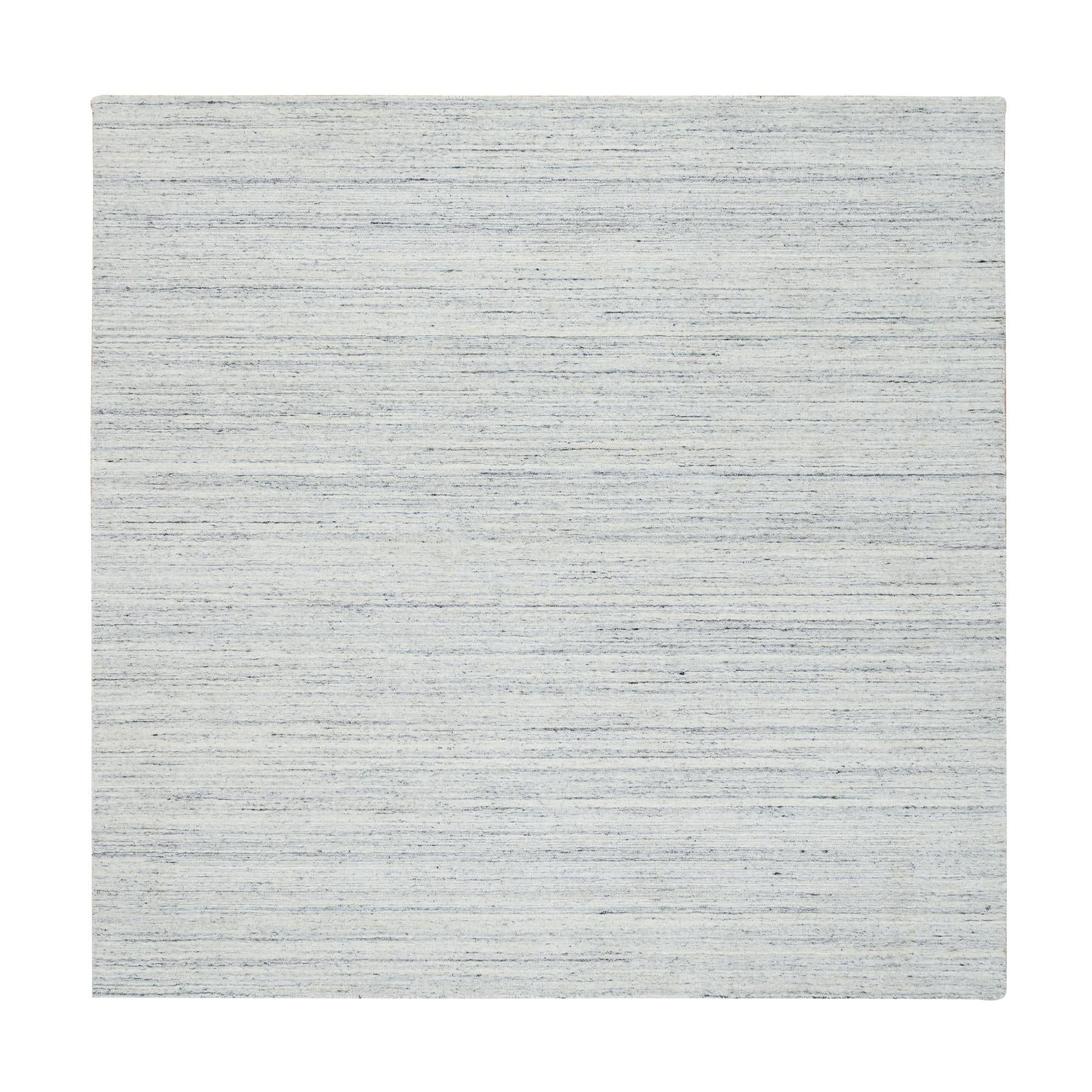8'x8' Ivory, Plain Modern Striae Design Soft Pile, Soft Wool Hand Loomed, Square Oriental Rug FWR388728